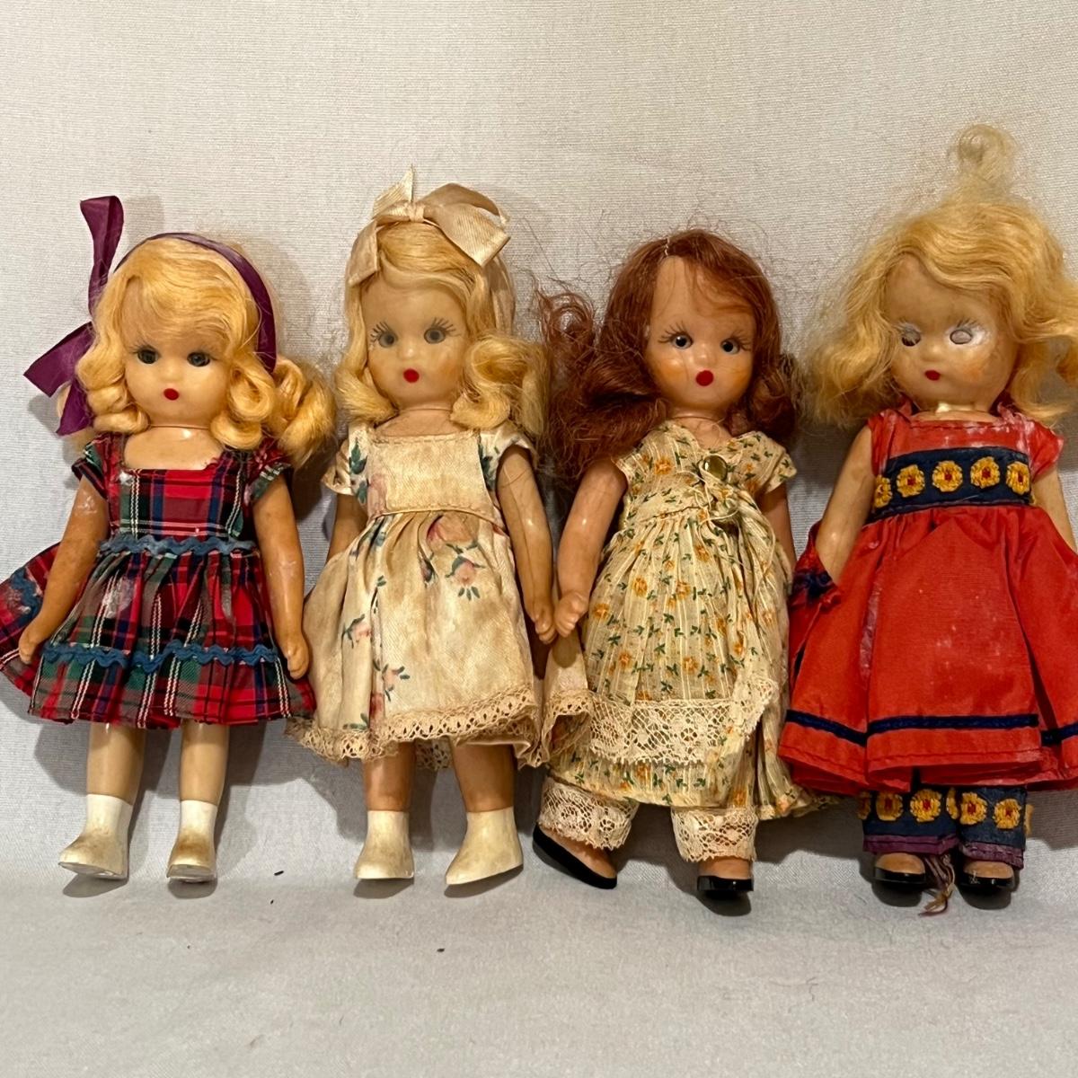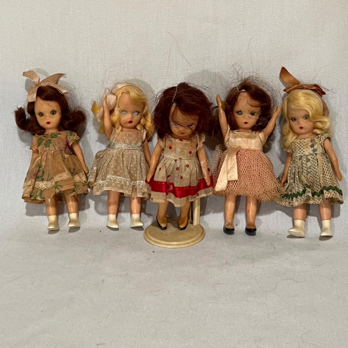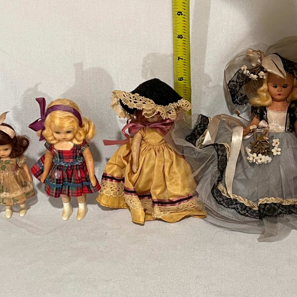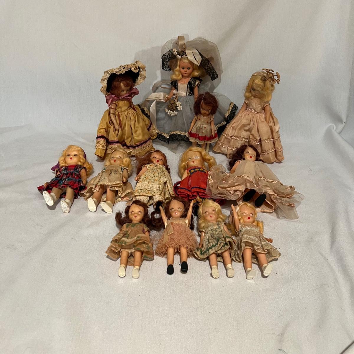 These 13 dolls are all Storybook dolls with markings and are in a range of sizes. A few have issues with eyes opening, see images and all have minor age related fading of their clothes.