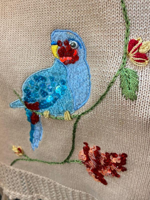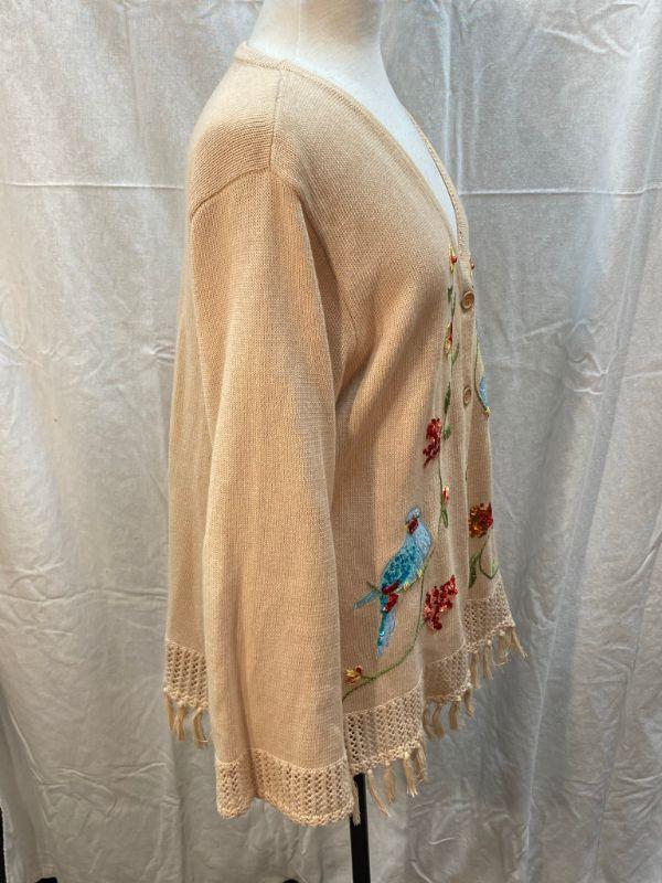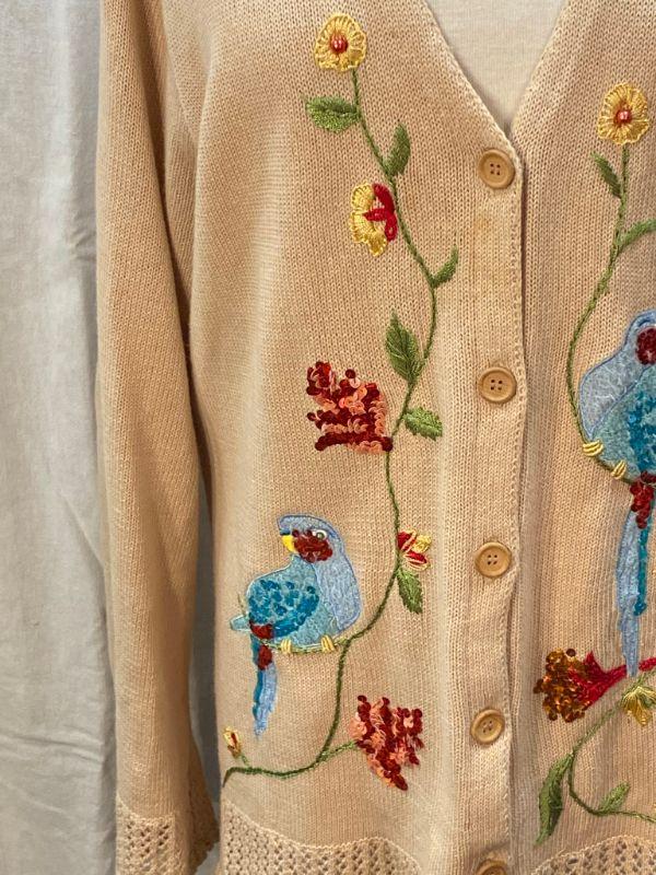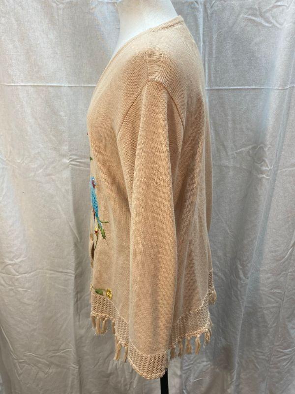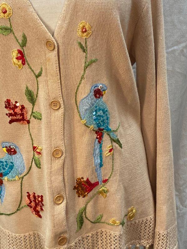 Storybook Knits Beige Parrot Sweater Cardigan Size Large YD#020-1220-02144