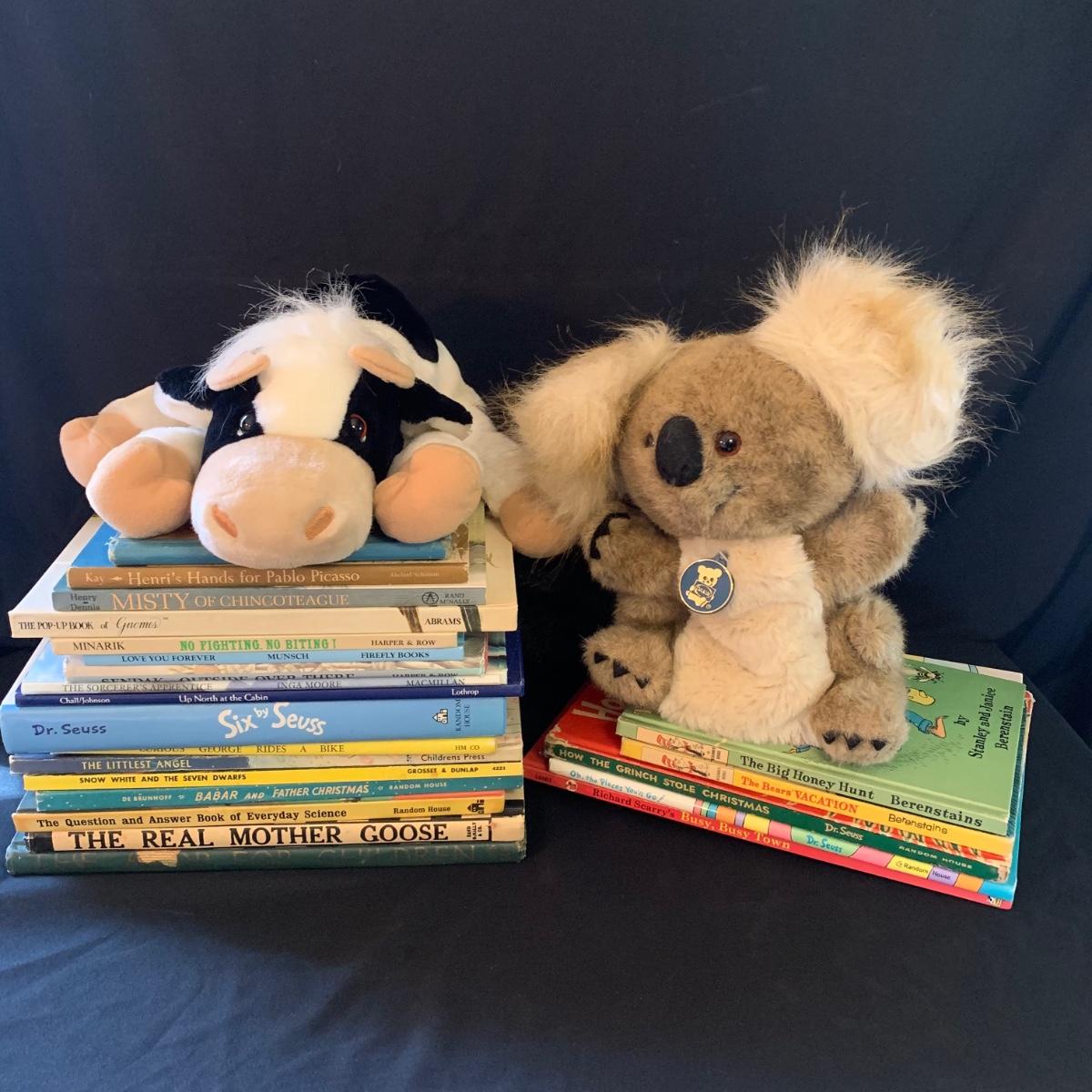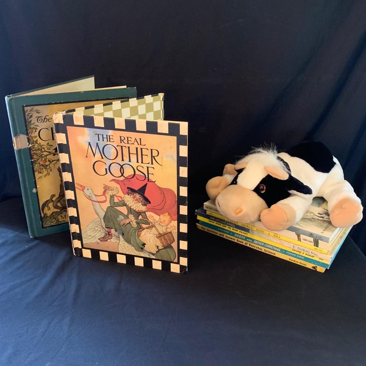 Selection of 22 story-time books. There are newer titles as well as classics. Lot includes Aesops Fables, The Real Mother Goose, Curious George Rides a Bike, the Big Honey Hunt, How the Grinch Stole Christmas, and more! Largest book measures 10” x 12.5". Three animal puppets. are included as well. Please see photos for more details and condition information. Shipping available. Shipping can be costly. We suggest contacting our preferred local shipping provider, Postage Express, with dimensions and getting an estimate before bidding: (828) 670-5501 or postageexpress@yahoo.com.