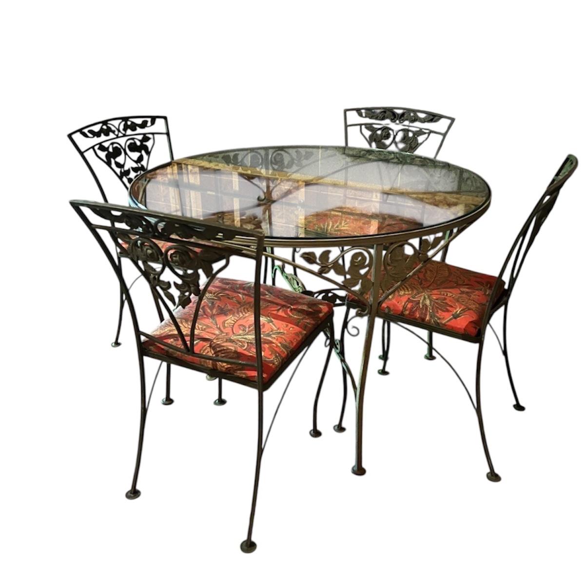 Wrought Iron Glass Top Table With Four Matching Chairs (BW-MG)