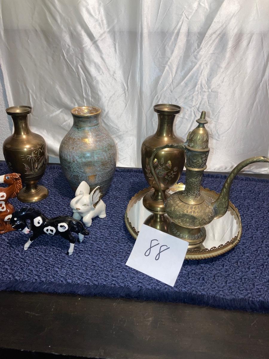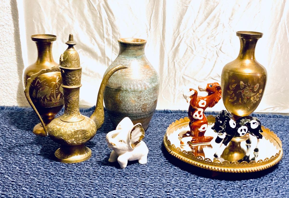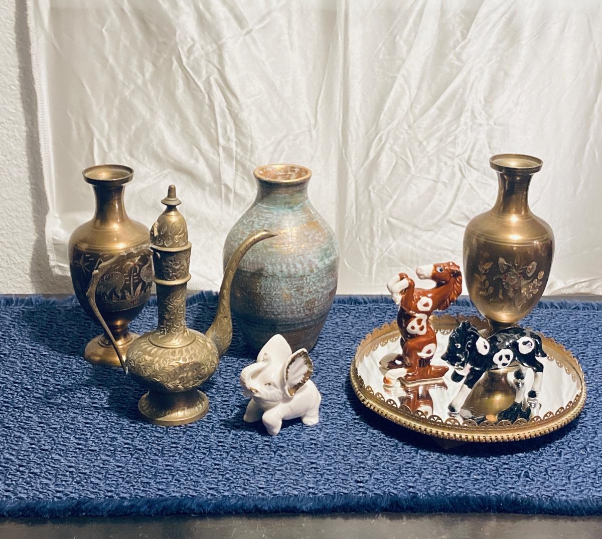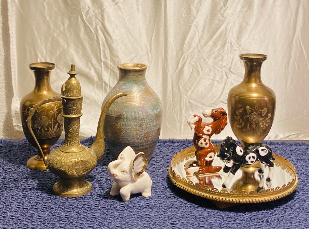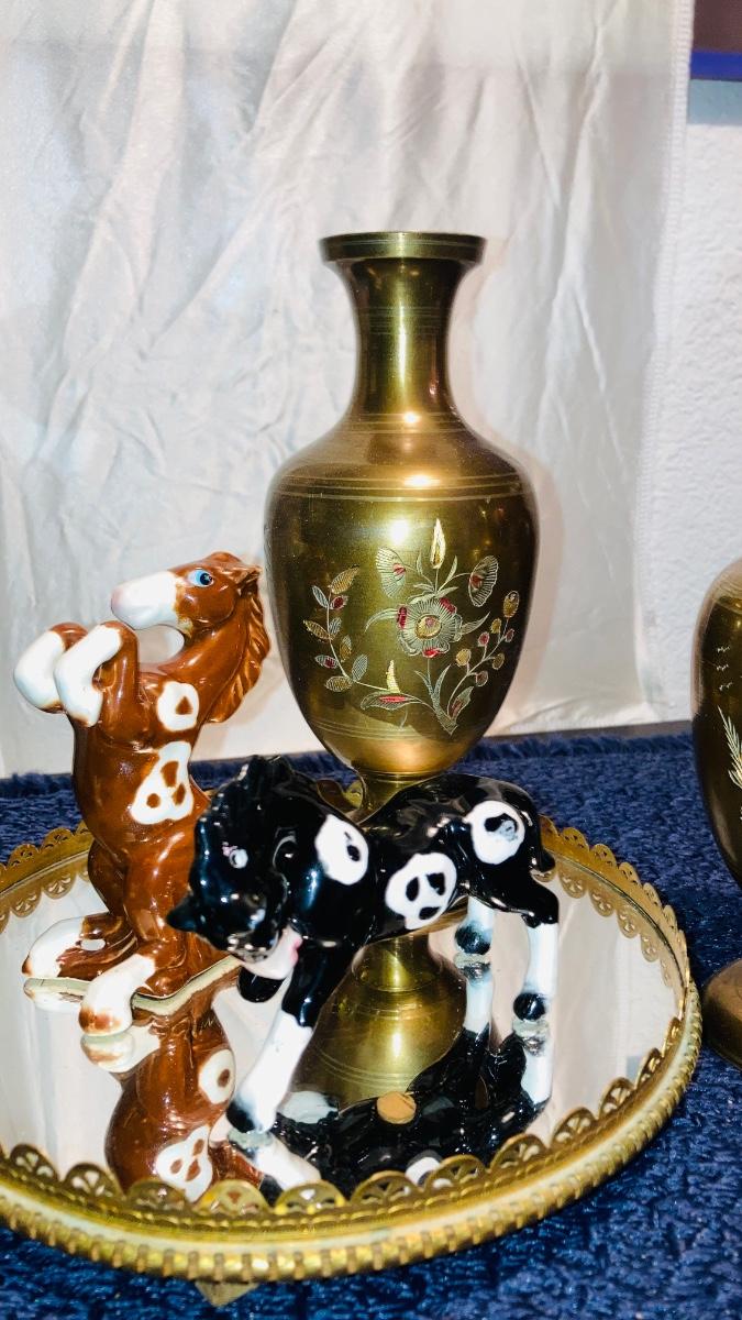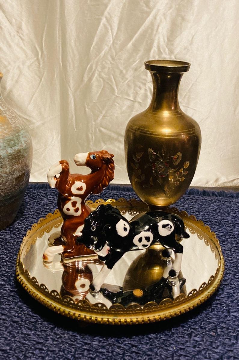 STRAGOL BUD VASE & PERFECT BRASS POLISHABLE’S, VTG PAINTED PONY S&P SHAKERS AND A BIT MORE!
