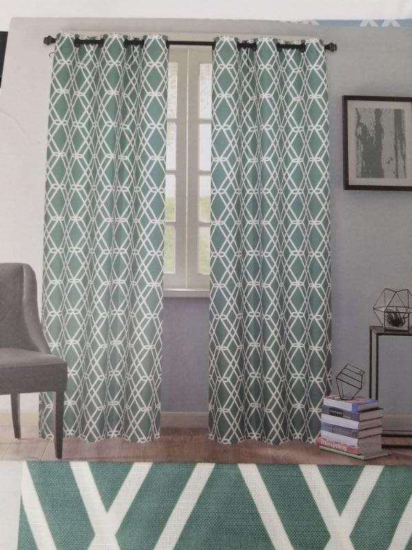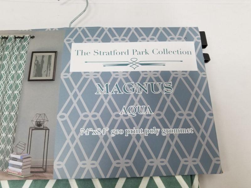 Stratford Park Collection Window Panel Pair - 74"x84", Magnus Aqua - New