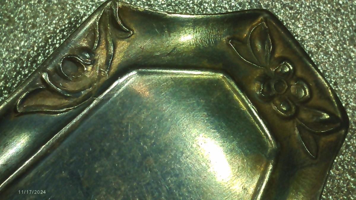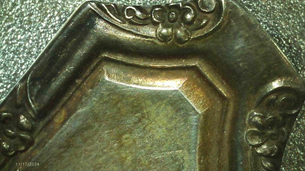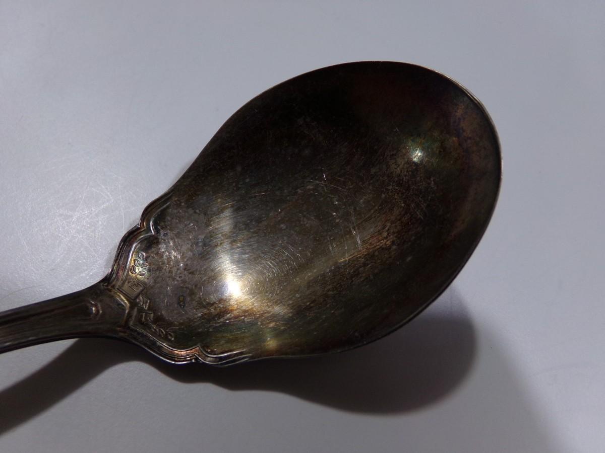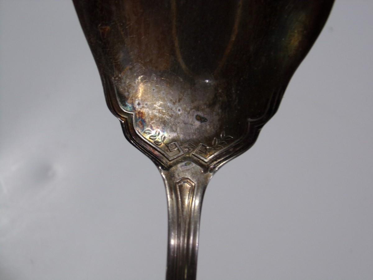 Stratford Silver Co. AXI silver plate. Looks like a sugar server spoon but might be a soup spoon?? Interesting shape and ornamentation.