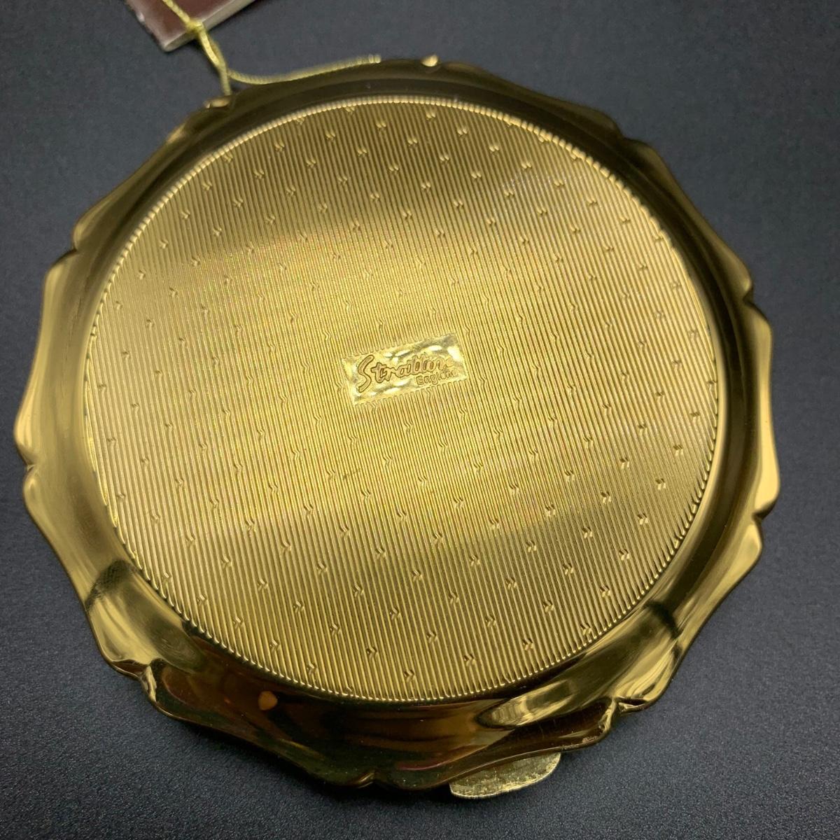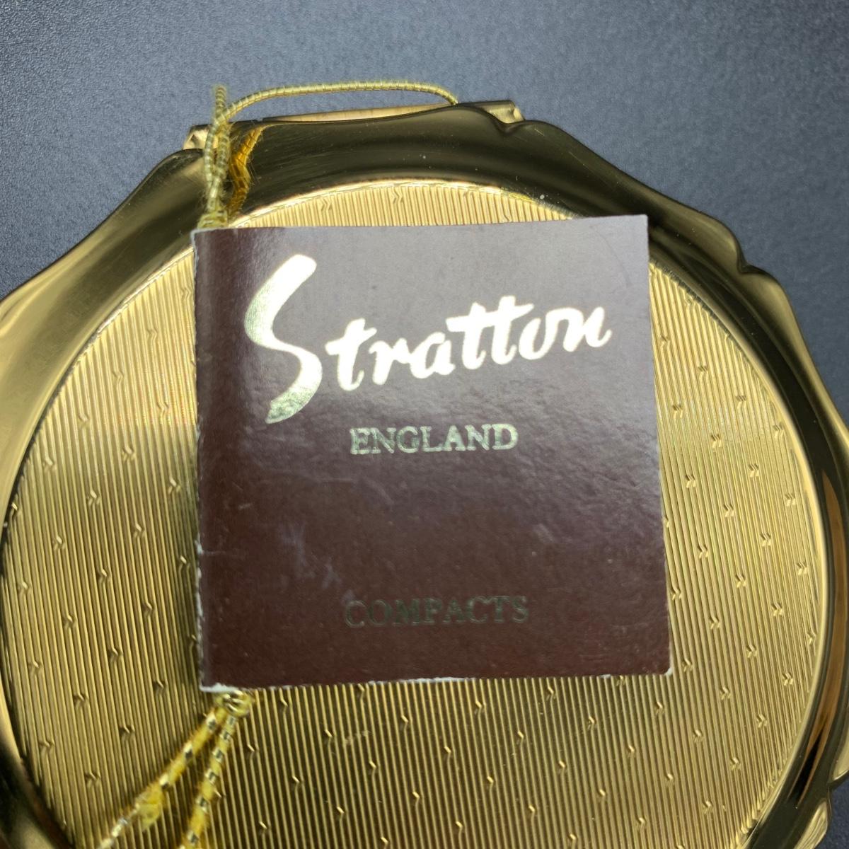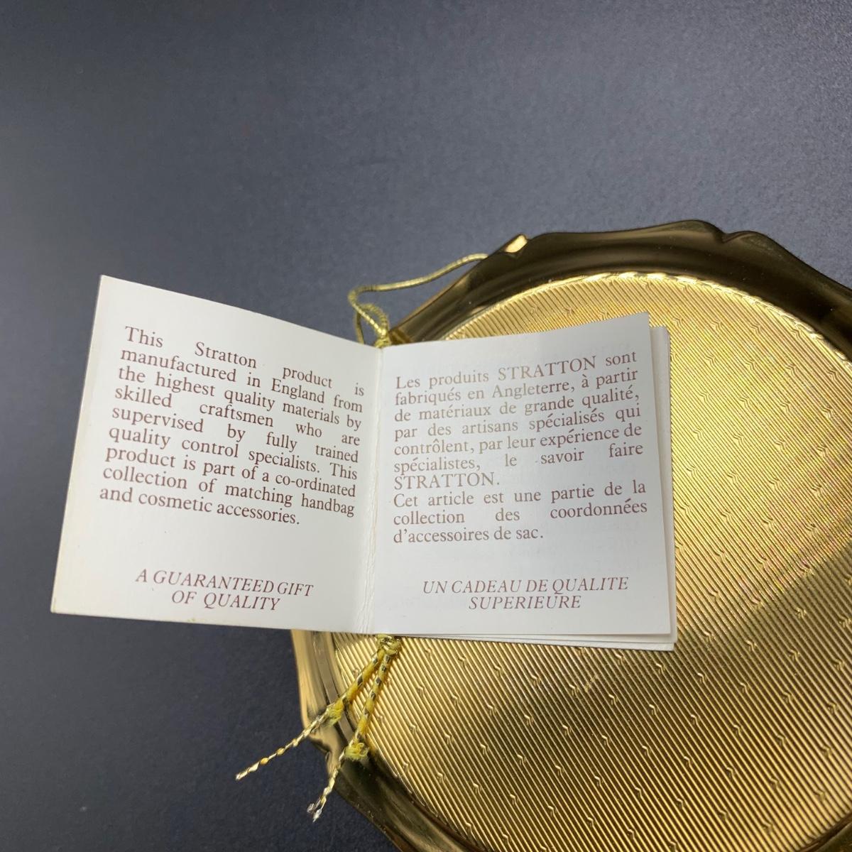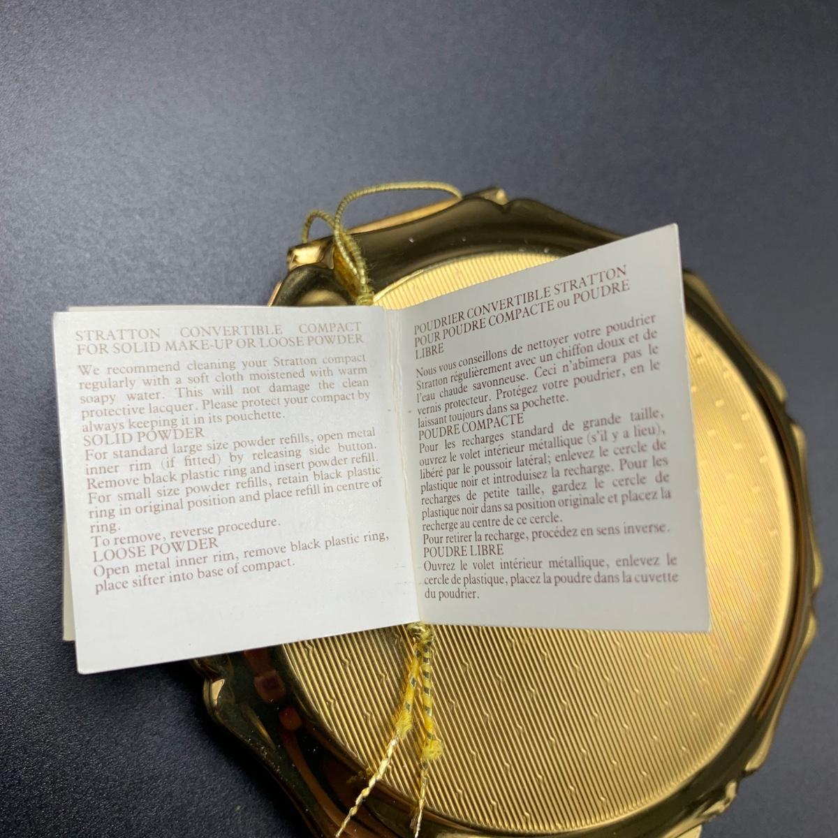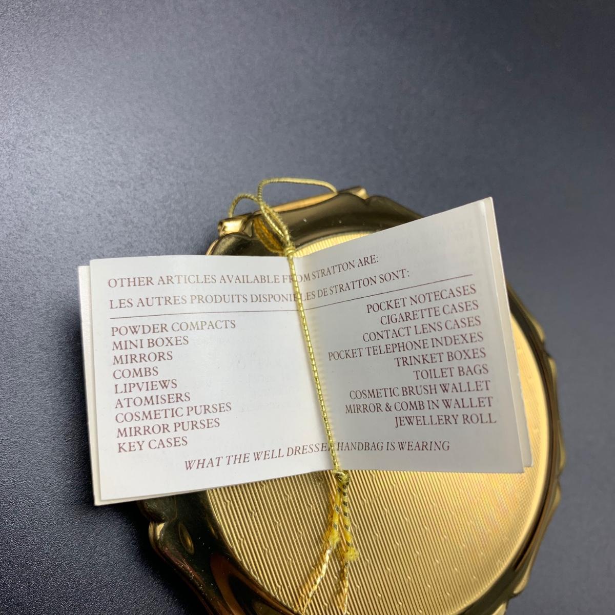 Stratton England compact with its tag still attached. Comes in a soft protective pouchette. The cameo design on the front of the compact is “Cupid” made my Josiah Wedgwood and Sons. The original powder puff is in the compact but has started to deteriorate. Shipping available.