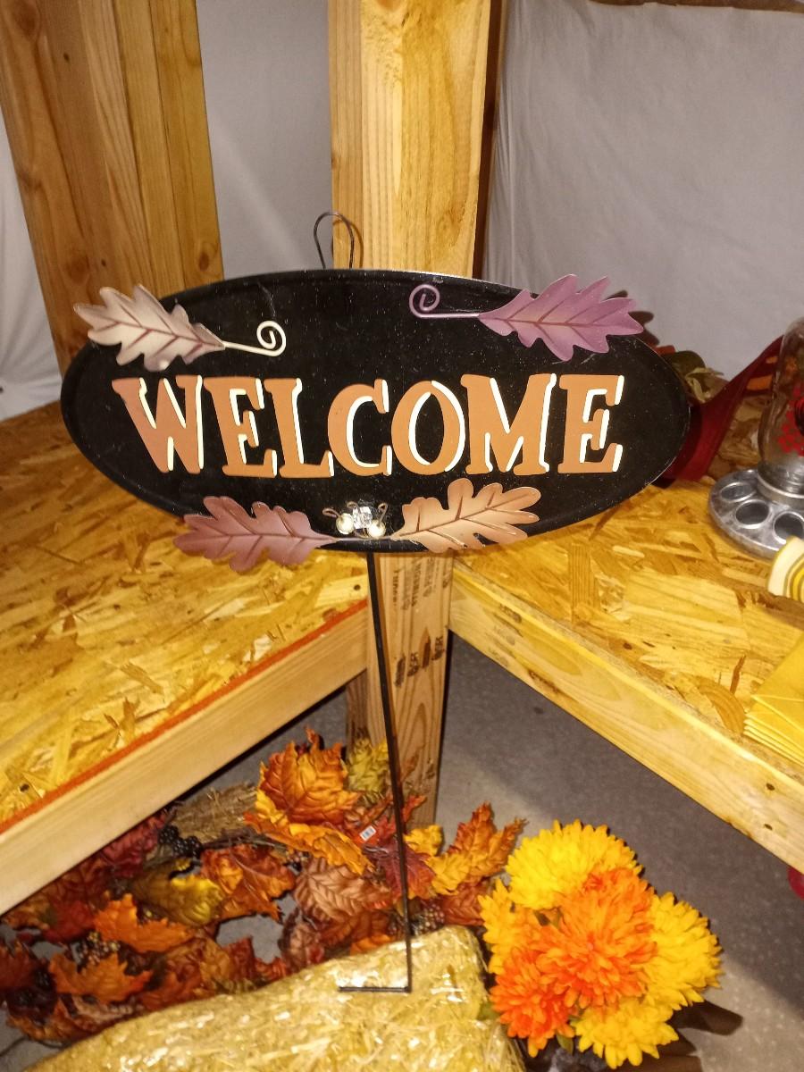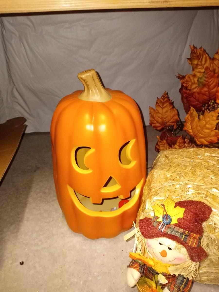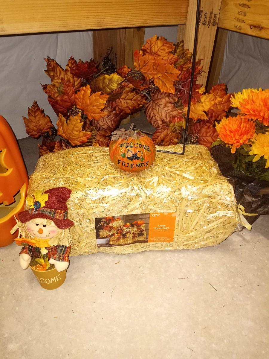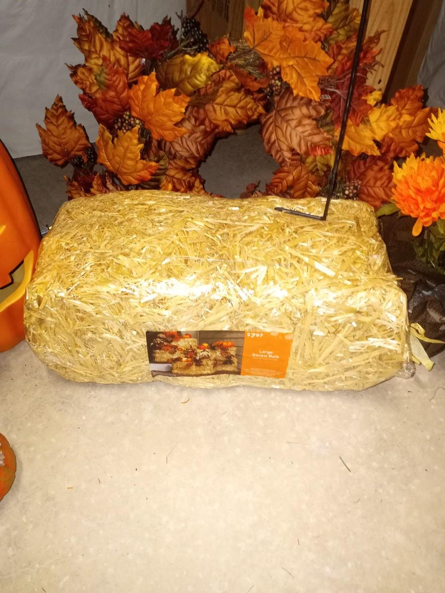 STRAW BALE 19X9-LIGHTED PUMPKIN 17 TALL -FALL WREATH - WELCOME SIGN AND MORE