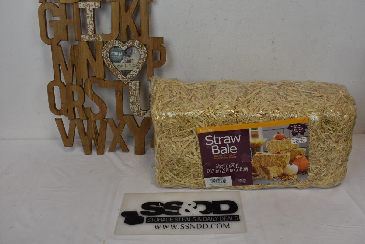 Straw Bale 8 in x 9 in x 20 in and Alphabet Photo Sign - New