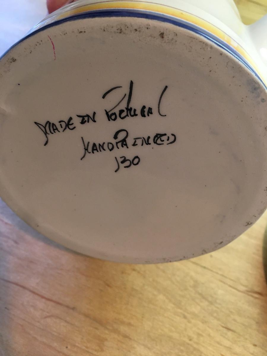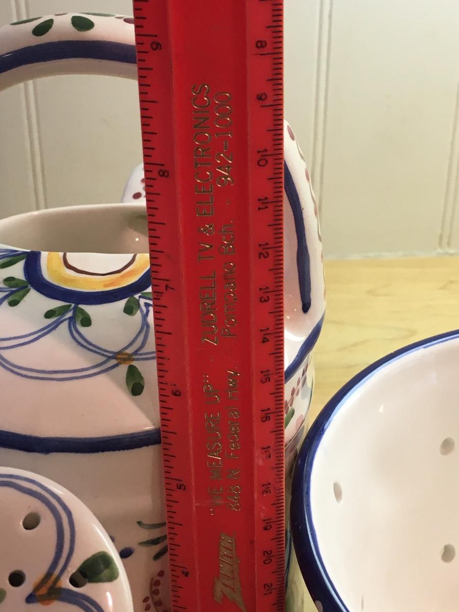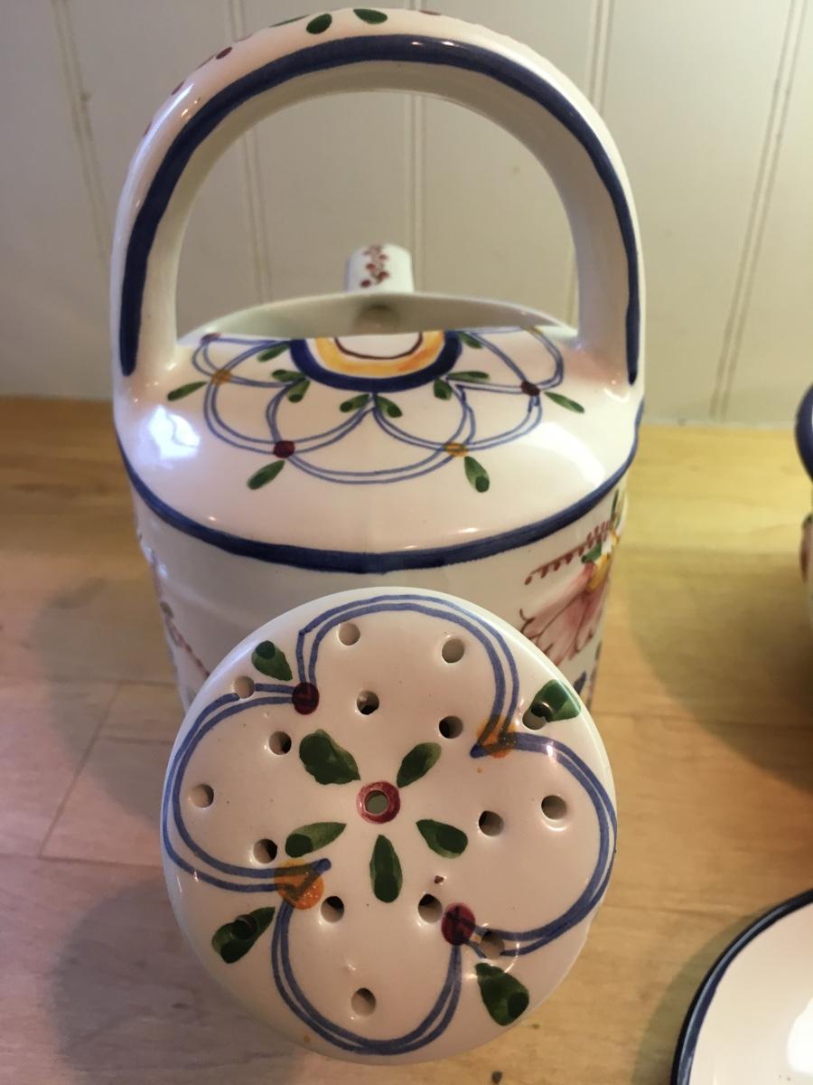 Ceramic strawberry bowl for rinsing berries and ceramic pitcher (made in Portugal) watering plants or use as a vase for flowers!