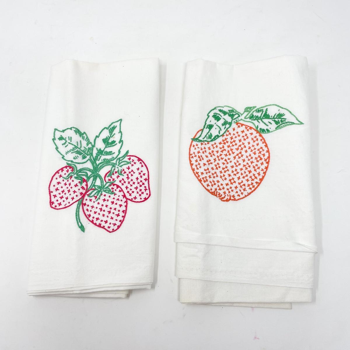 STRAWBERRY & ORANGE EMBROIDERED FLOUR SACK TOWELS