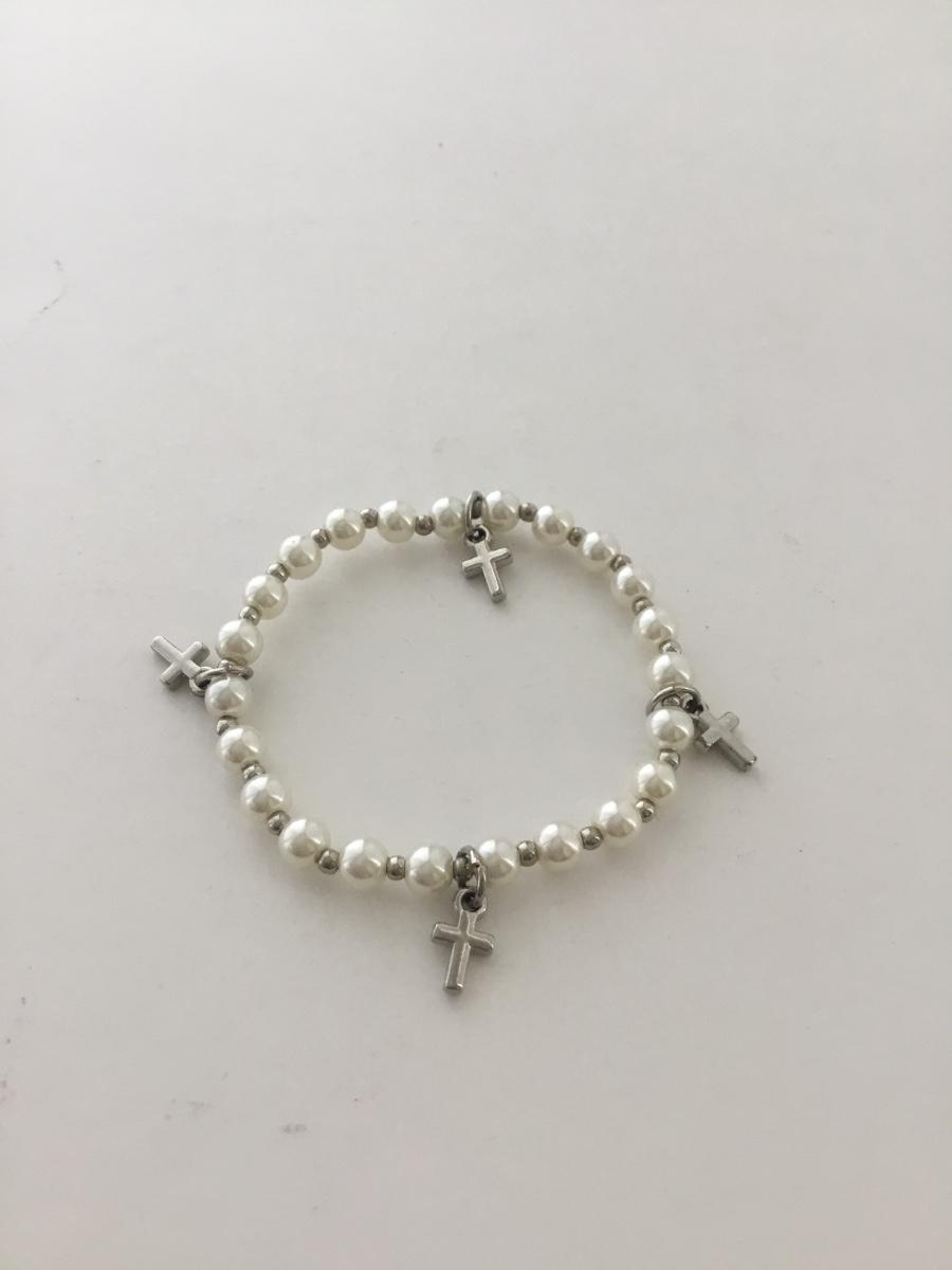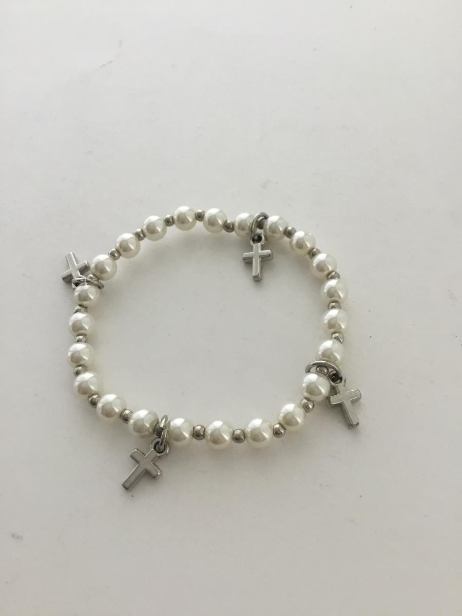 Stretchy cross charm beaded bracelet