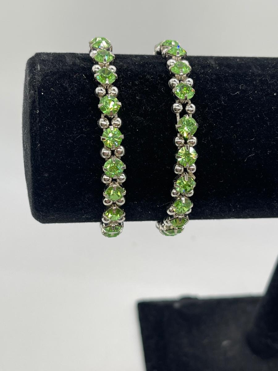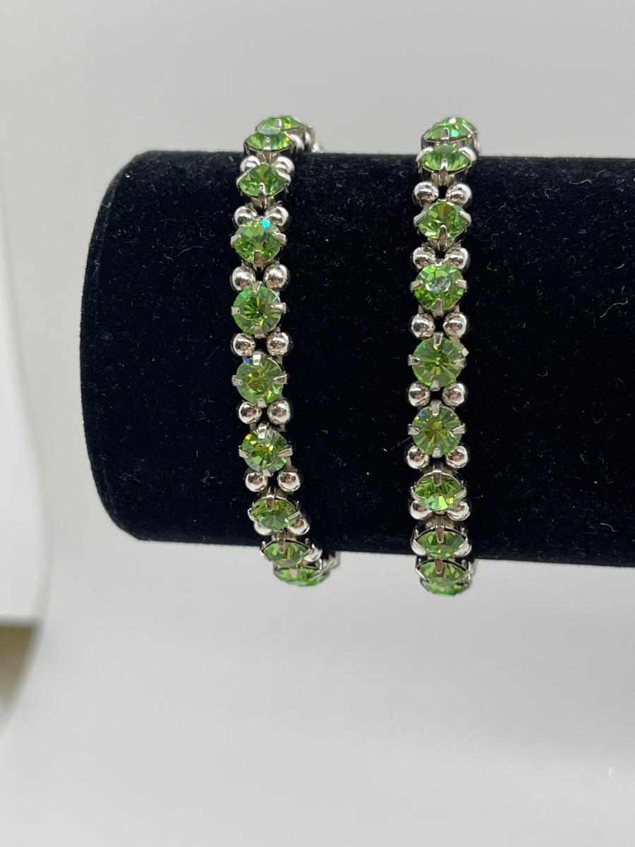 Pair of Stretchy Lime Green Rhinestones with Silver Tone Beads Bracelets