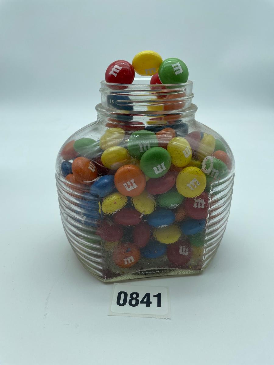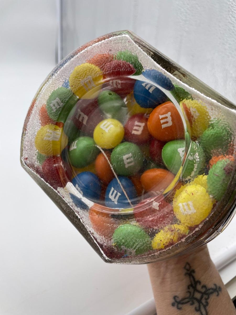 String of M&M’s in a cool jar