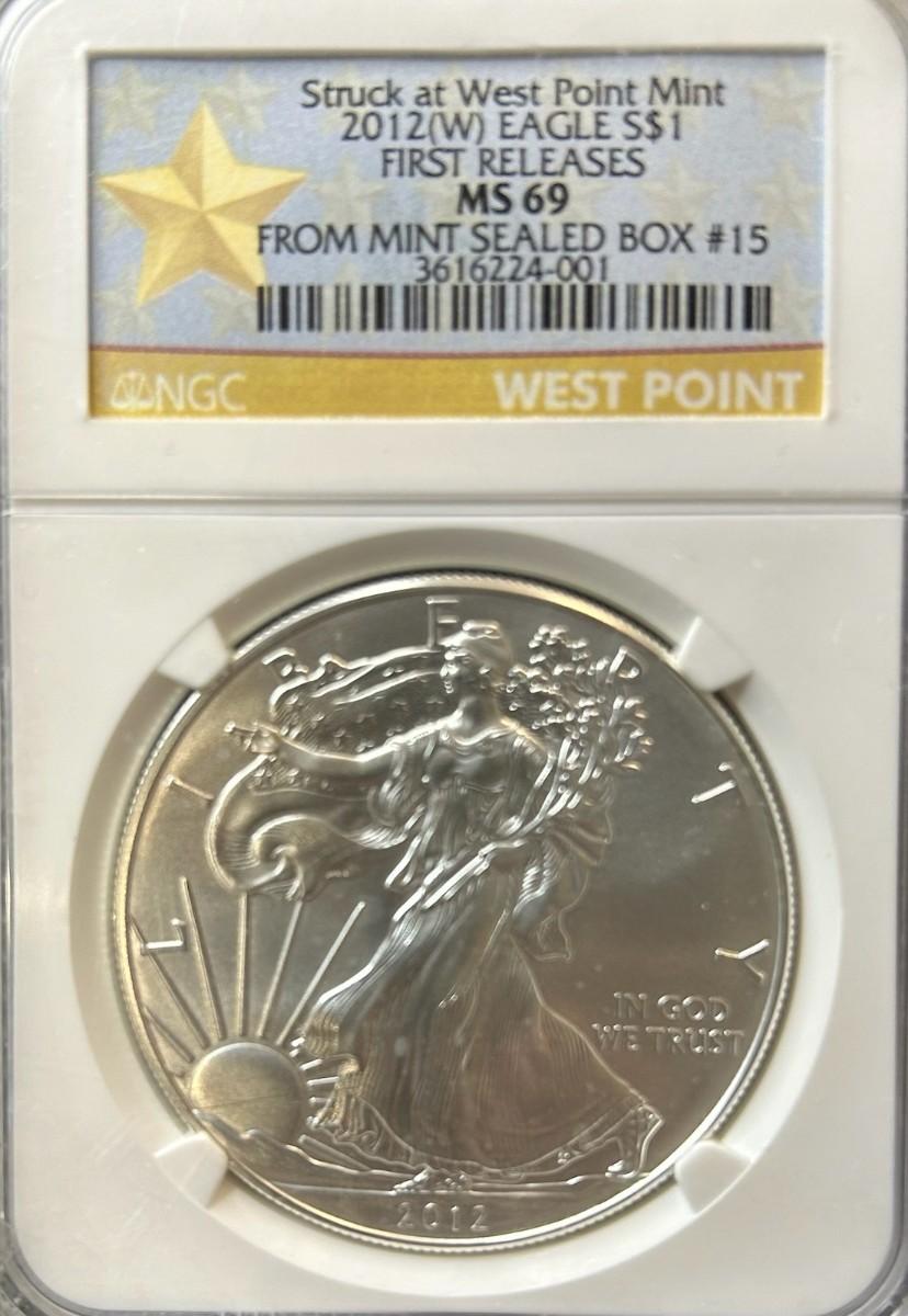 STRUCK AT WEST POINT MINT 2012 W EAGLE 1$ FIRST RELEASES MS 69 from mint sealed box #15