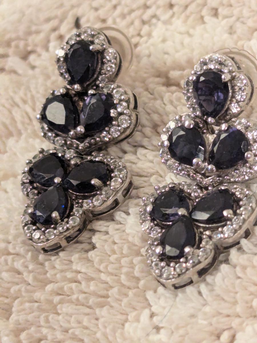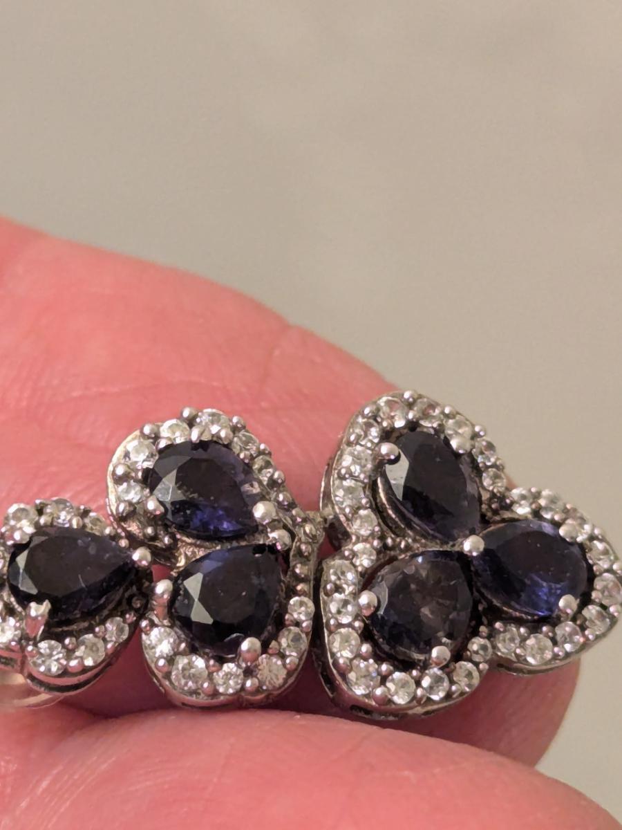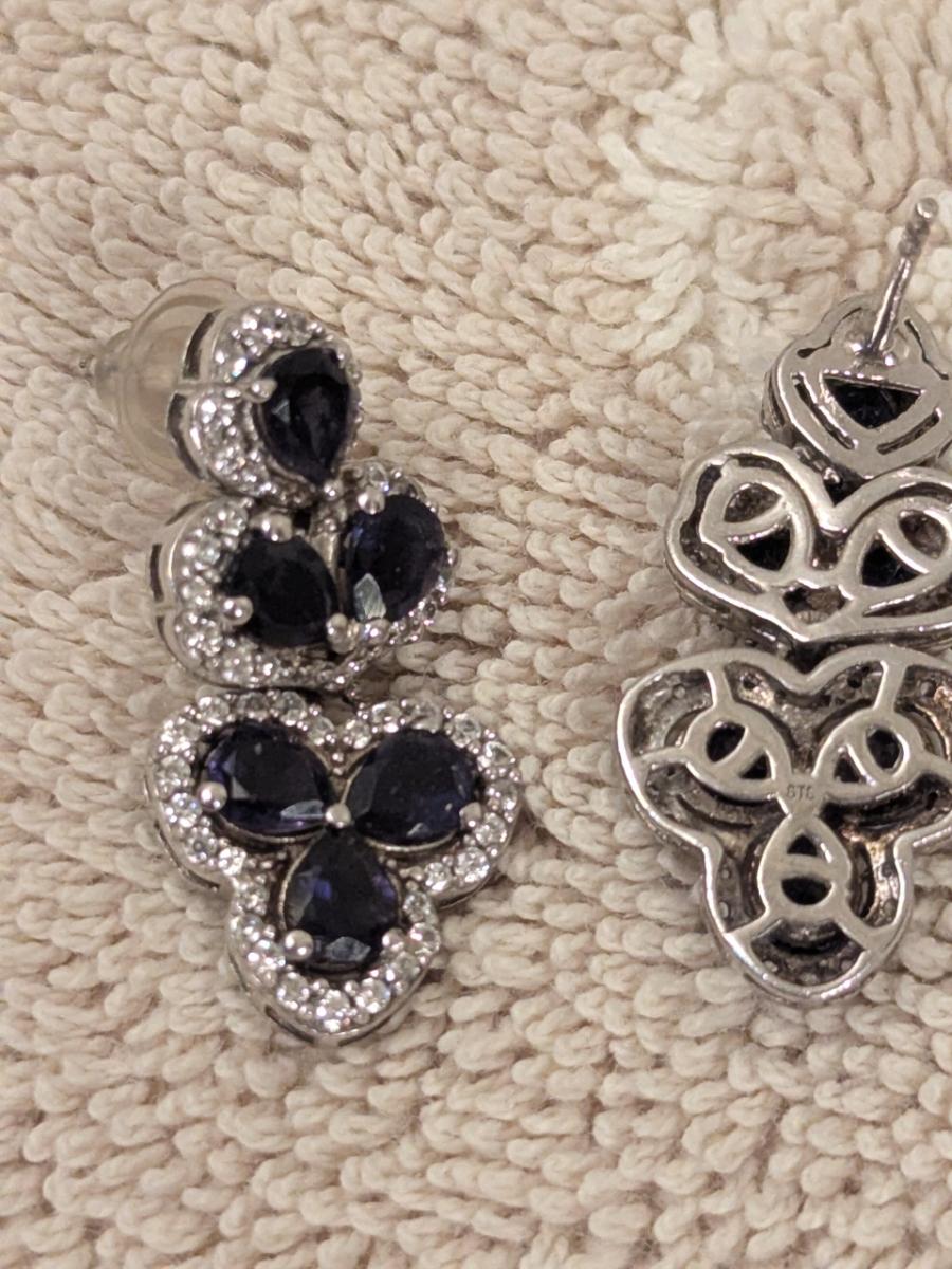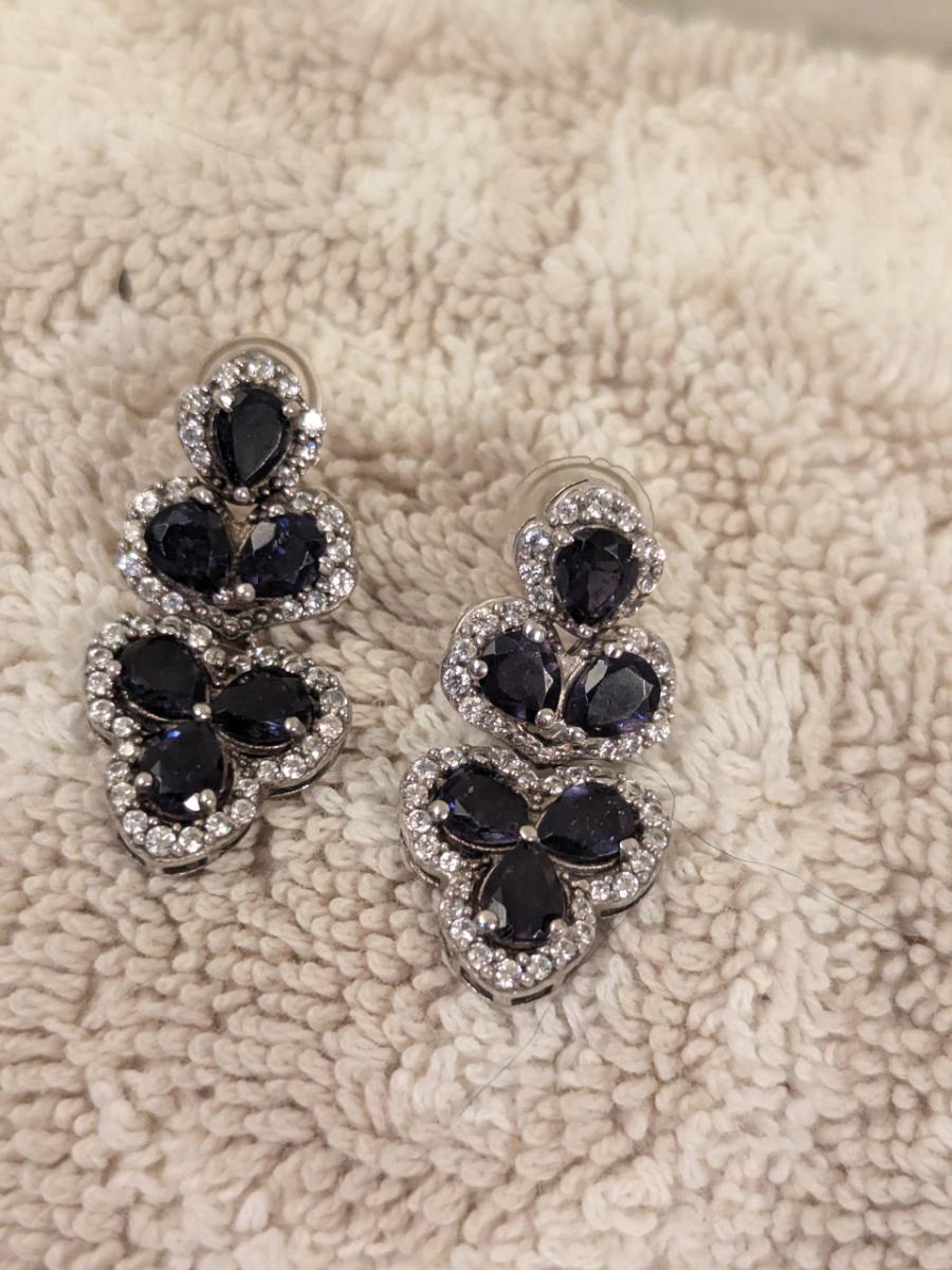 STS 925 Sterling silver Dangle earrings with dark blue stones