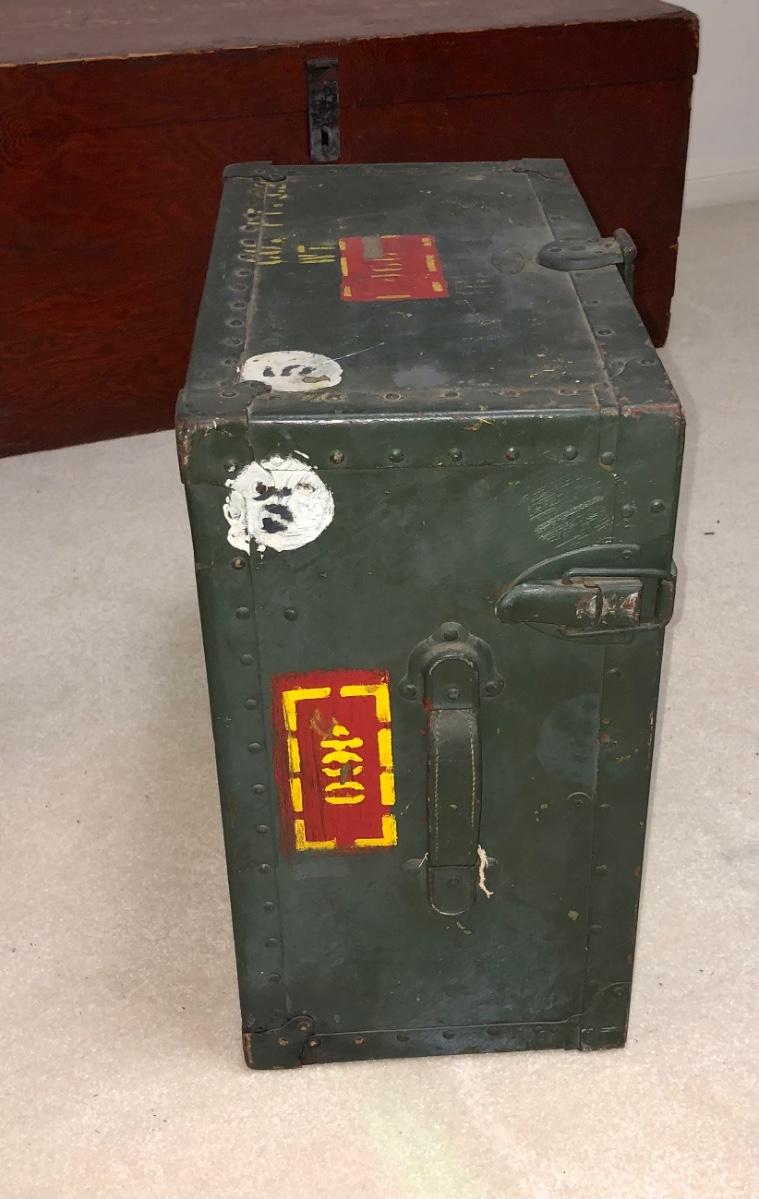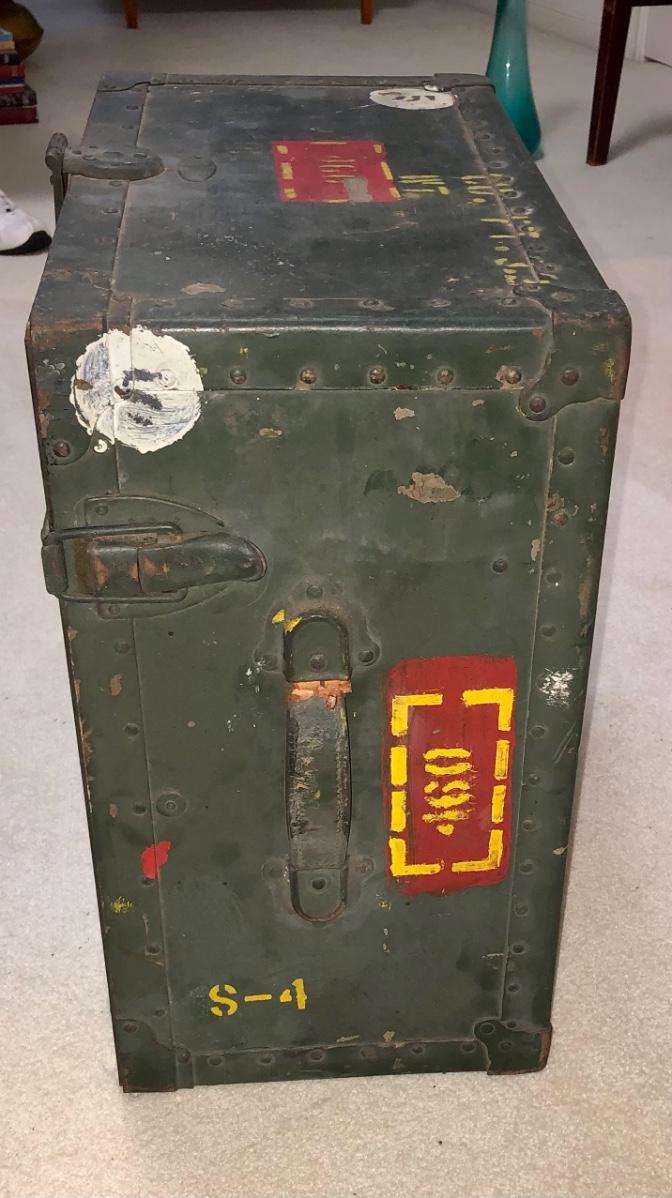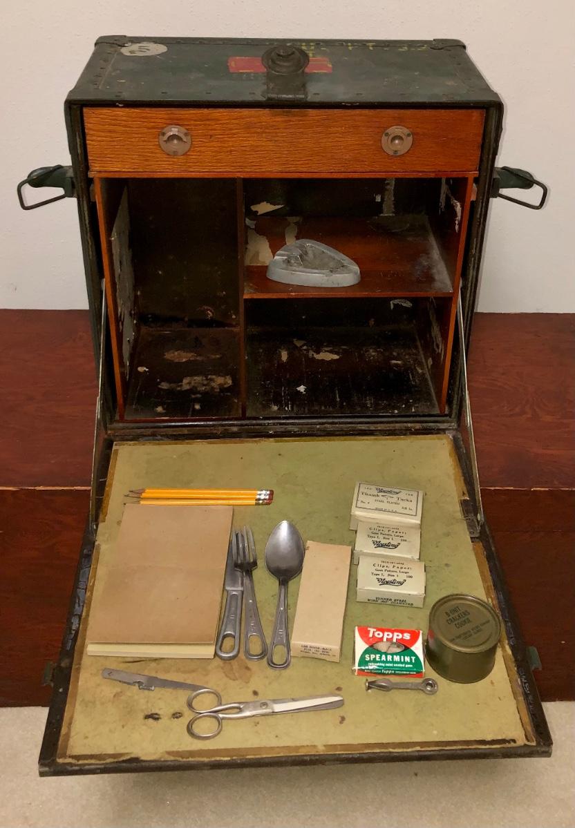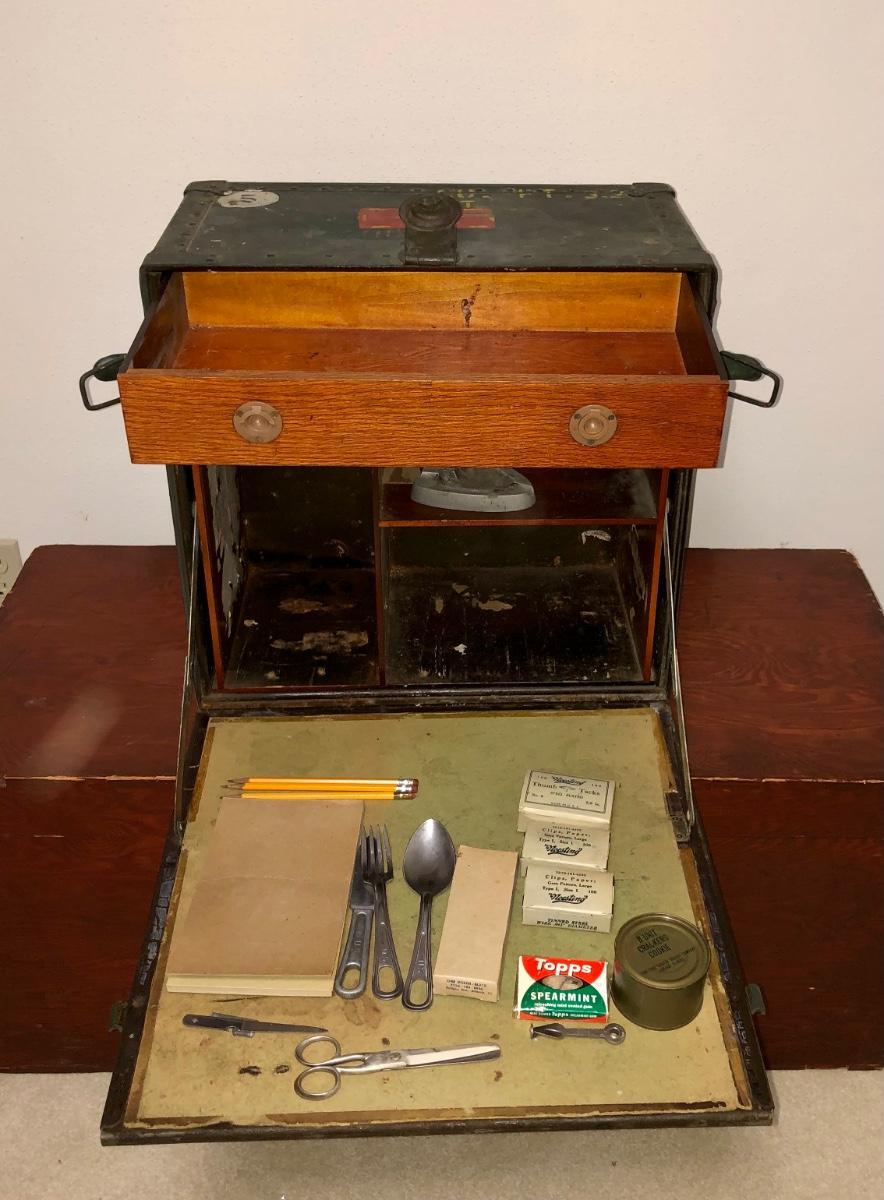 A unique vintage field desk / locker with several period items included inside. Owner was in ww2 Korea and Vietnam so do your research and age the item yourself.