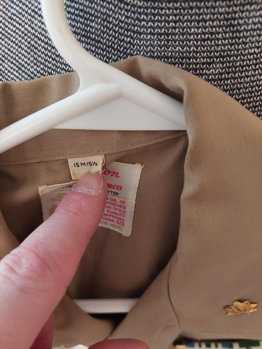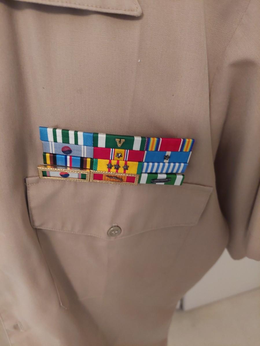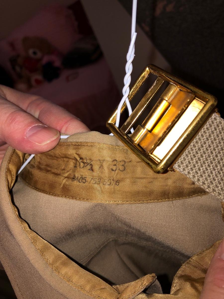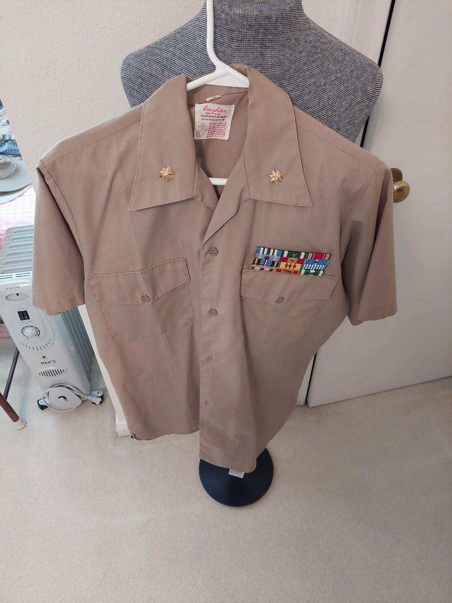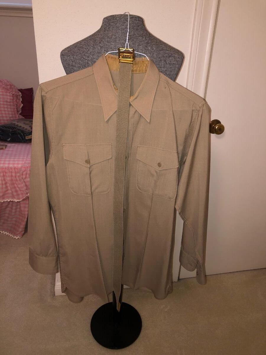 A very nice set of vintage military uniform with medal cluster. You get 2 shirts 2 ties 1 belt 1 pants One tie and shirt have a few moth holes otherwise in perfect condition. Owner was in ww2, Korea and Vietnam so not sure what age they are. So do your research.