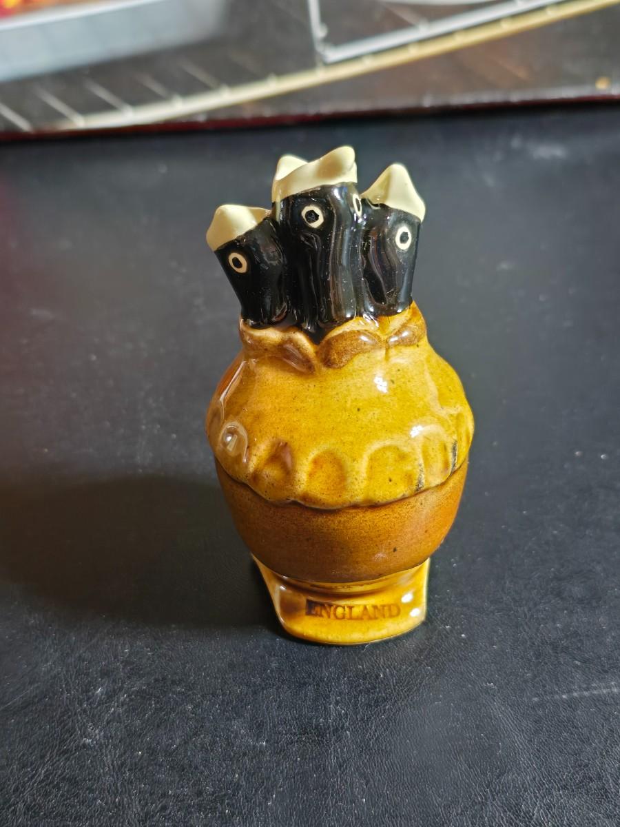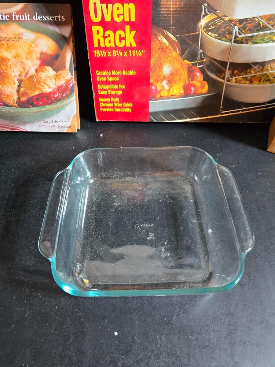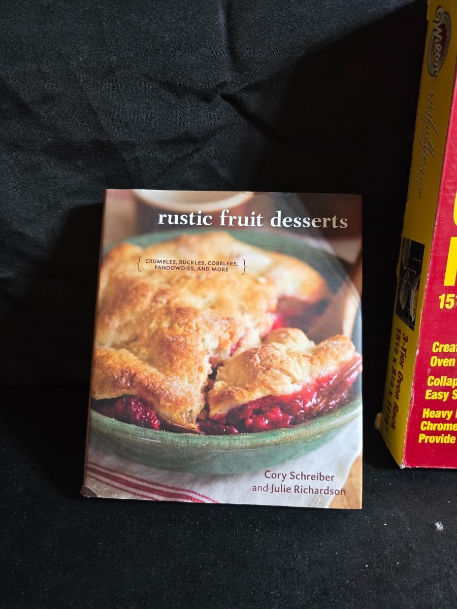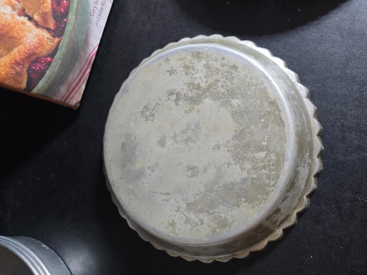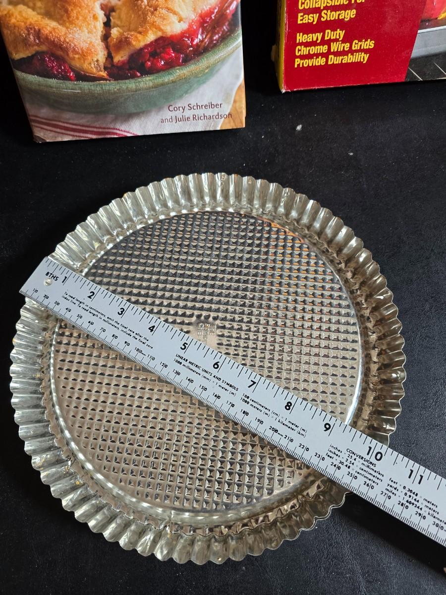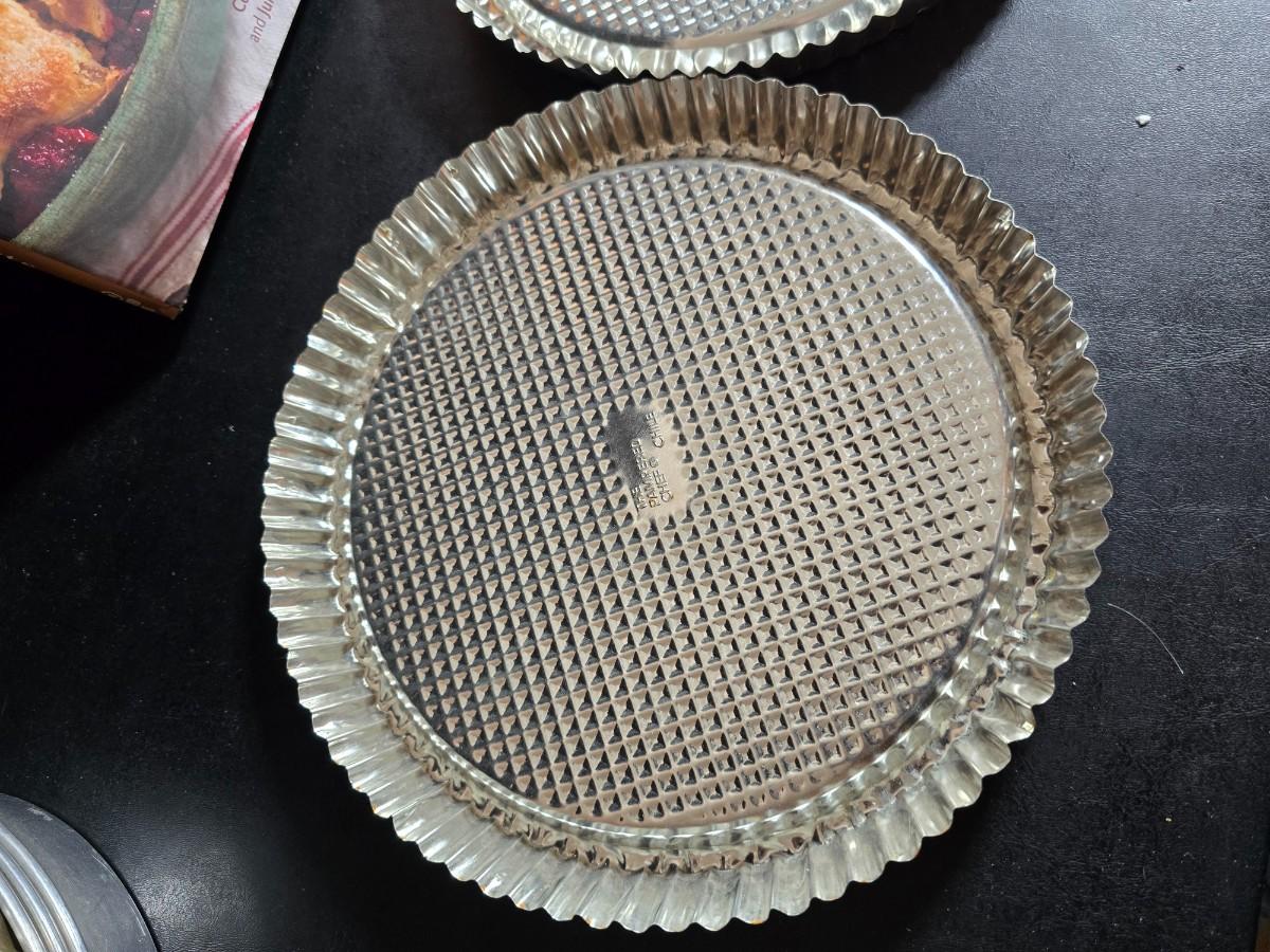 Stuart Bass three-blackbird pie funnel - Wilton 3-tier baking rack - a variety of pie pans and a cookbook