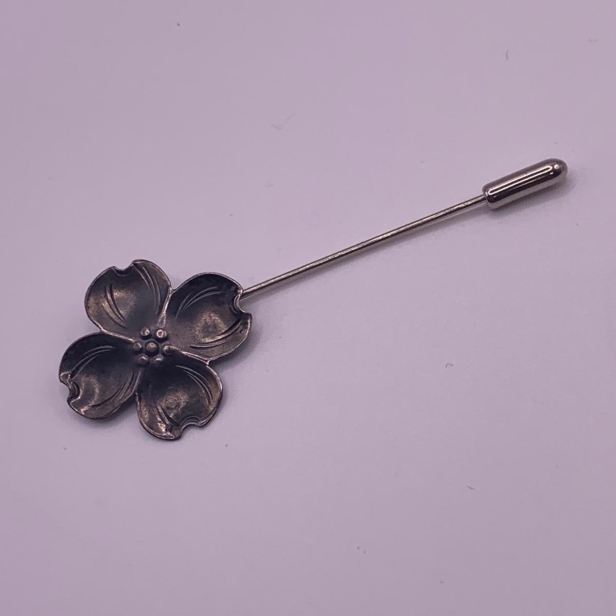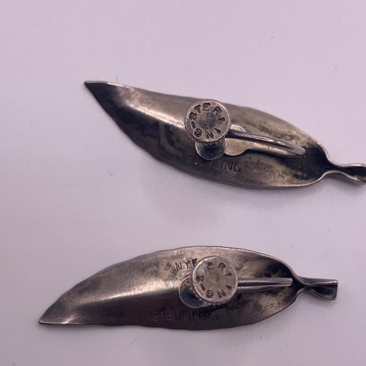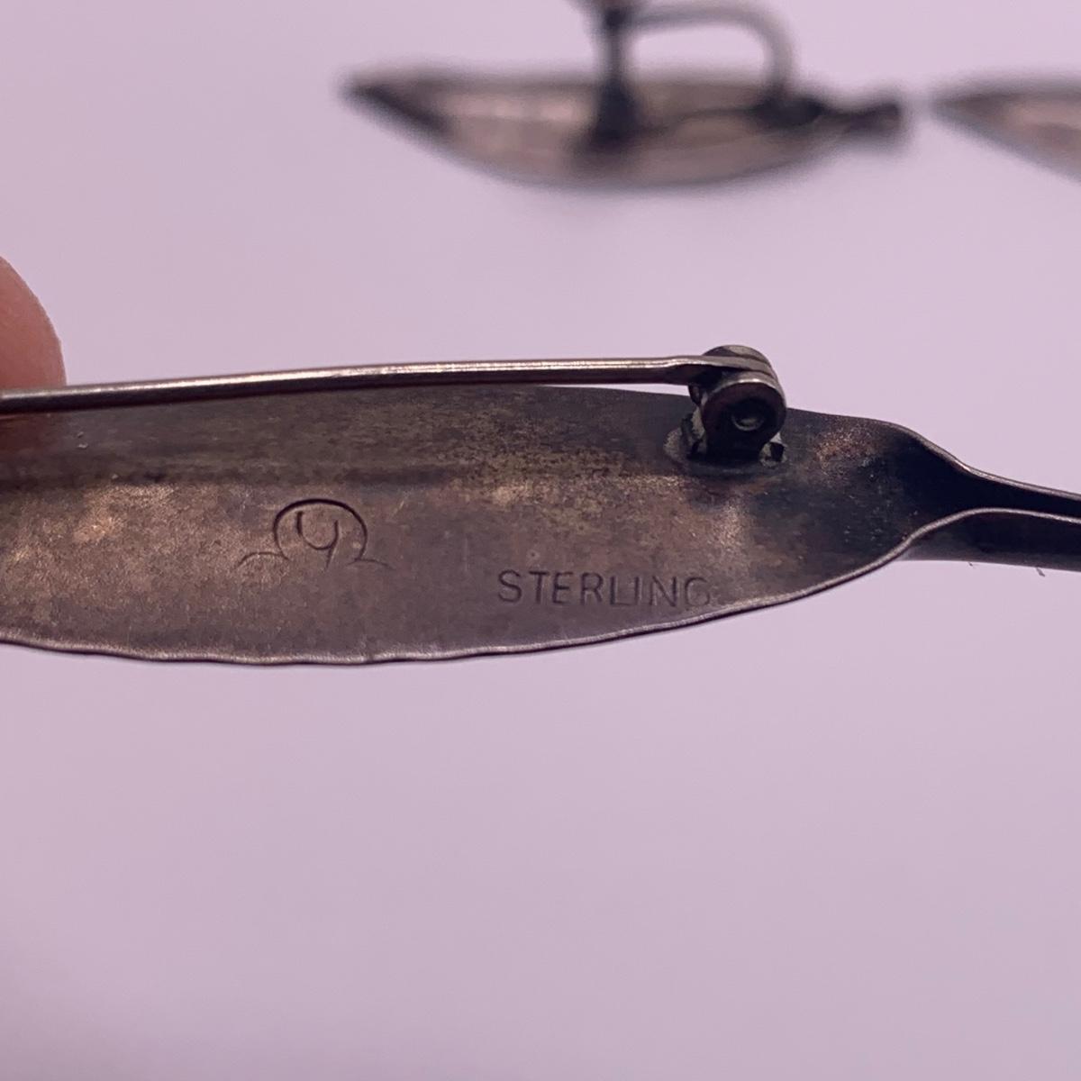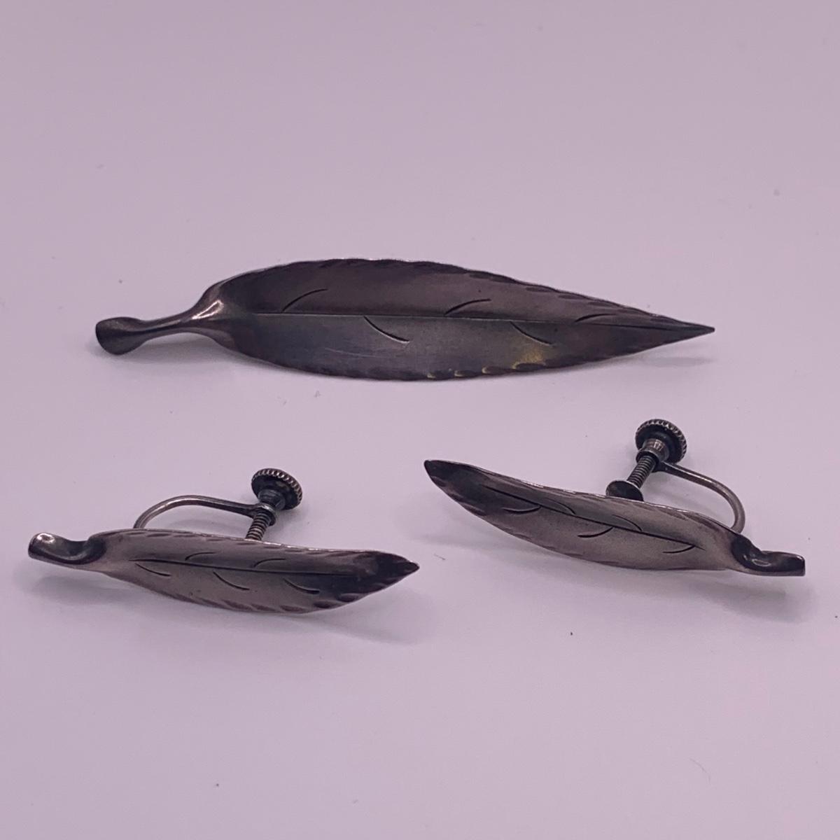 This Stuart Nye sterling silver jewelry collection includes two leaf sets, each with a pin and screw-on earrings, as well as one dogwood pin. For reference, the dogwood pin is 2.5” long.