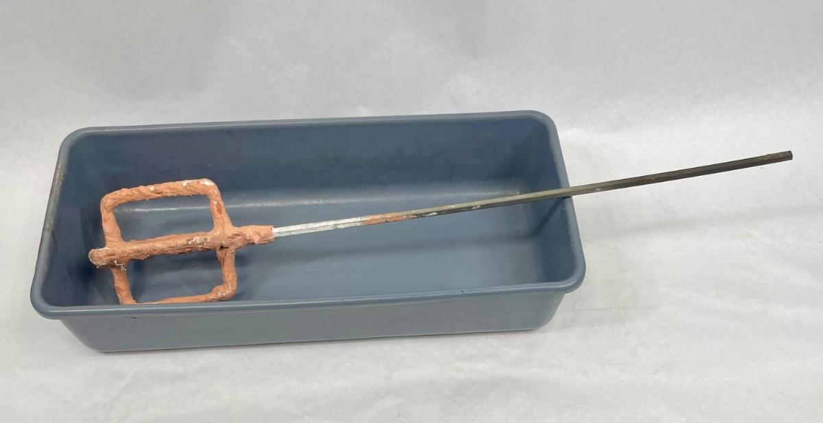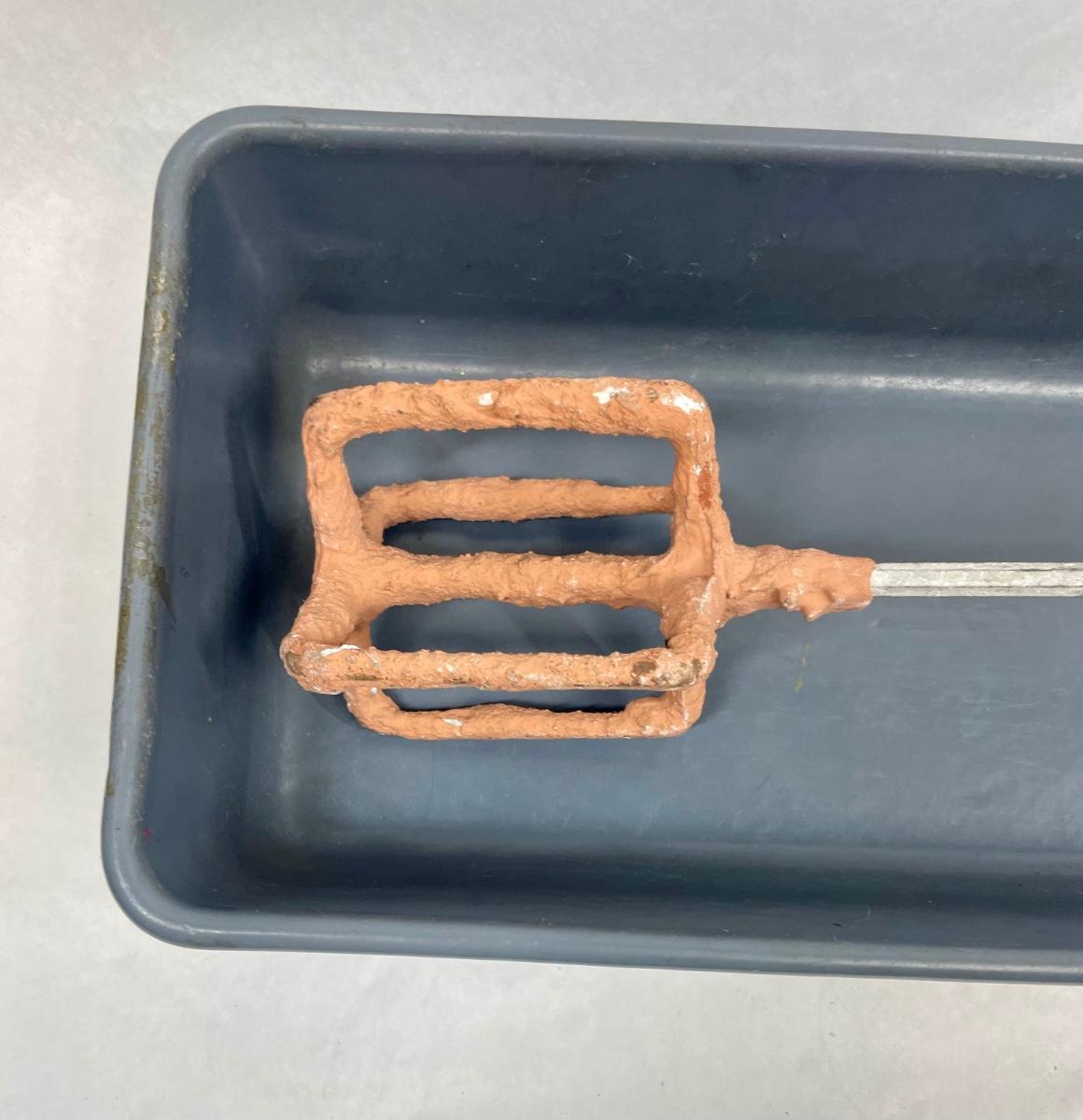 For mixing large batches and stucco in 5-gallon buckets. Includes plastic pan.
