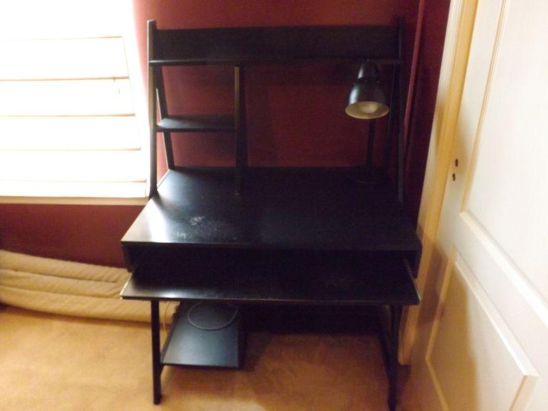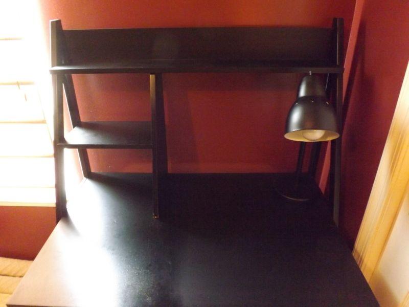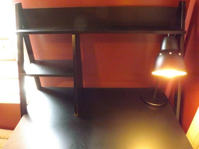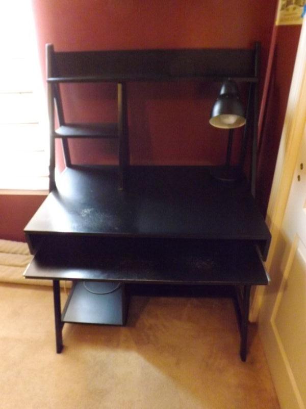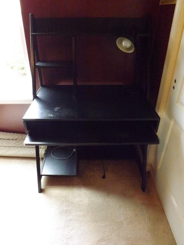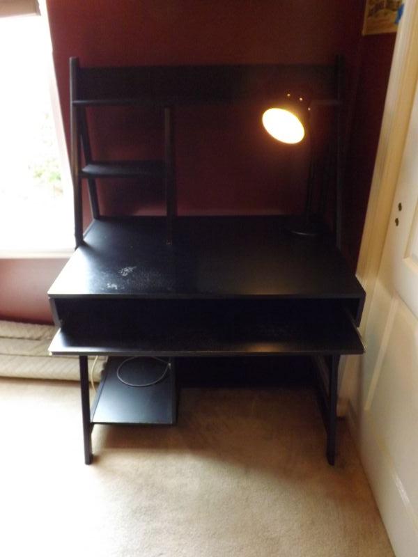 Black student desk with Lamp 24x52. **Please read Terms and Conditions before placing a bid. Pick up is Wednesday, September 25 from 4pm to 7pm and Saturday, September 28 from 9am to 1pm in Williamstown, NJ. All sales are final. All sales are as is, where is. Please review all photos. Any props included in photos are not included in listing. All measurements are approximate.