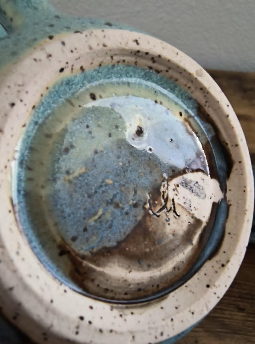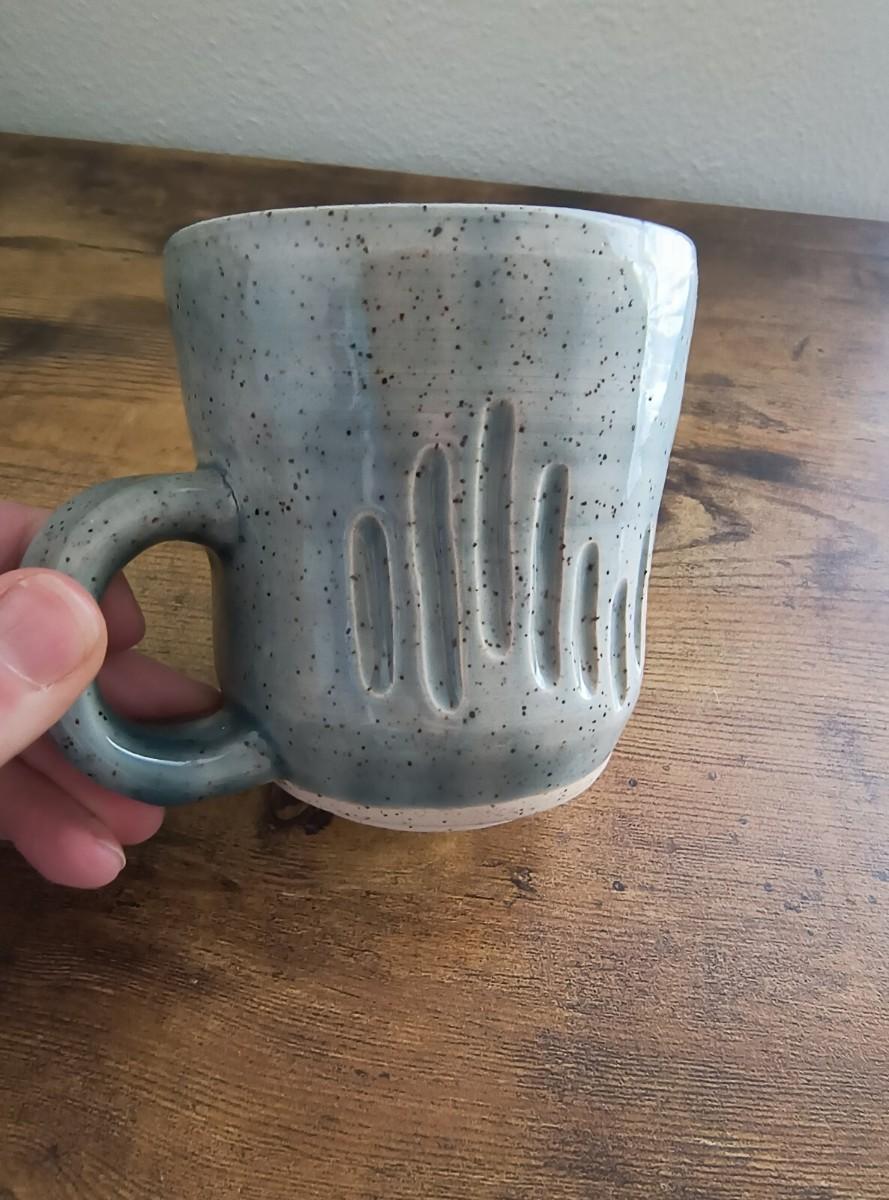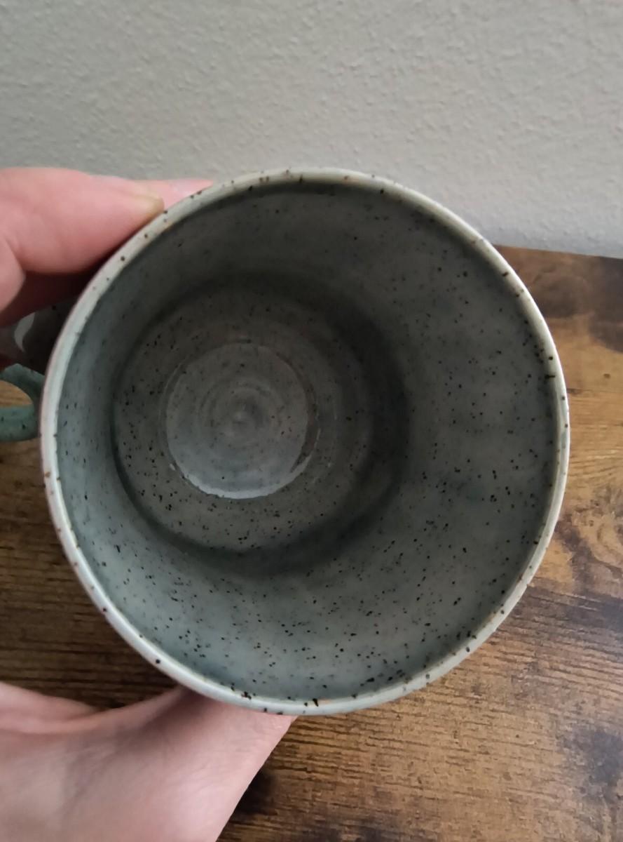 Mismatched Studio Art pottery coffee mug cup, ceramic, artist signed, total of 2