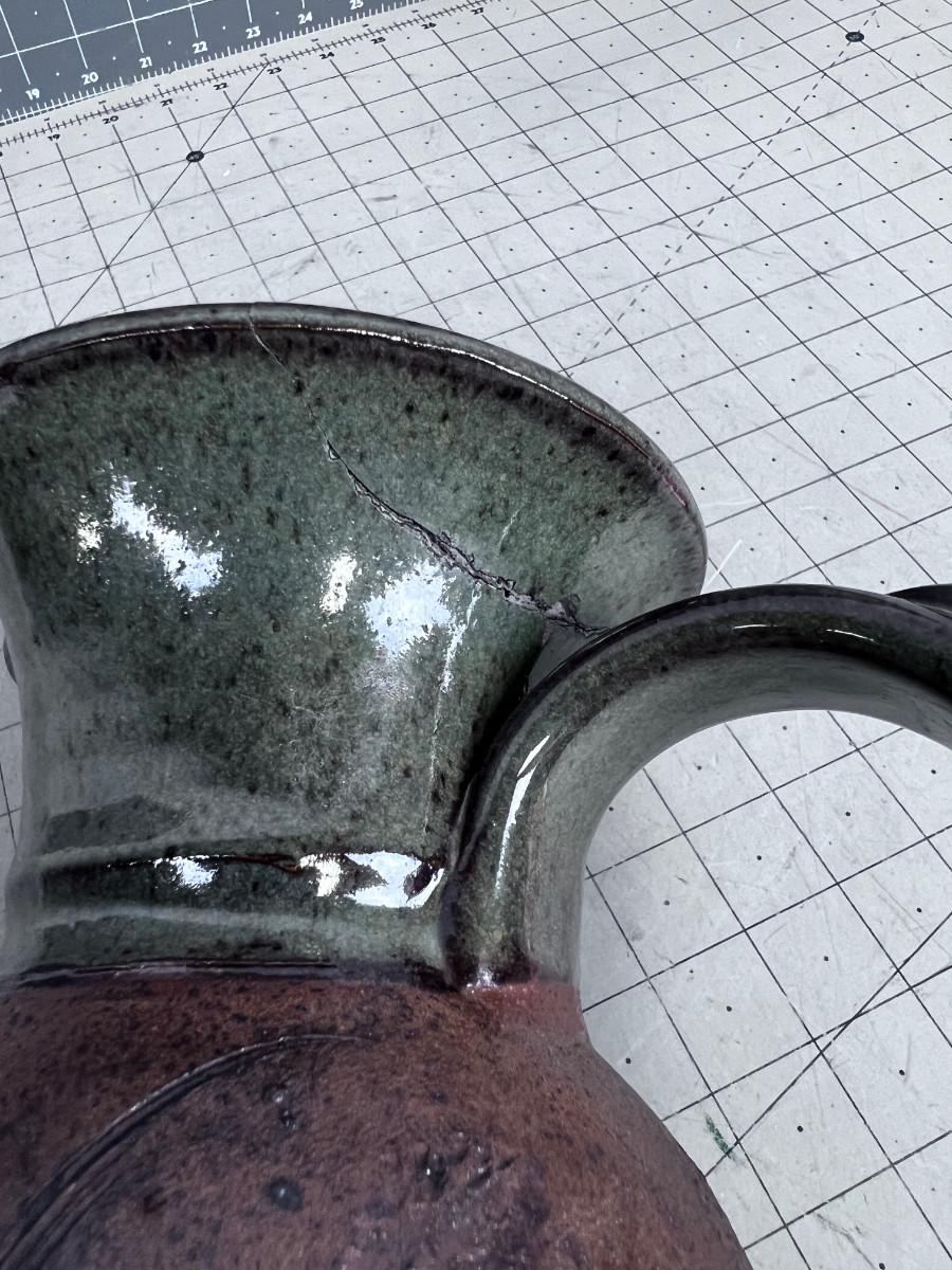 Has a repair, see photos. Still Good Looking for décor. 11" Tall