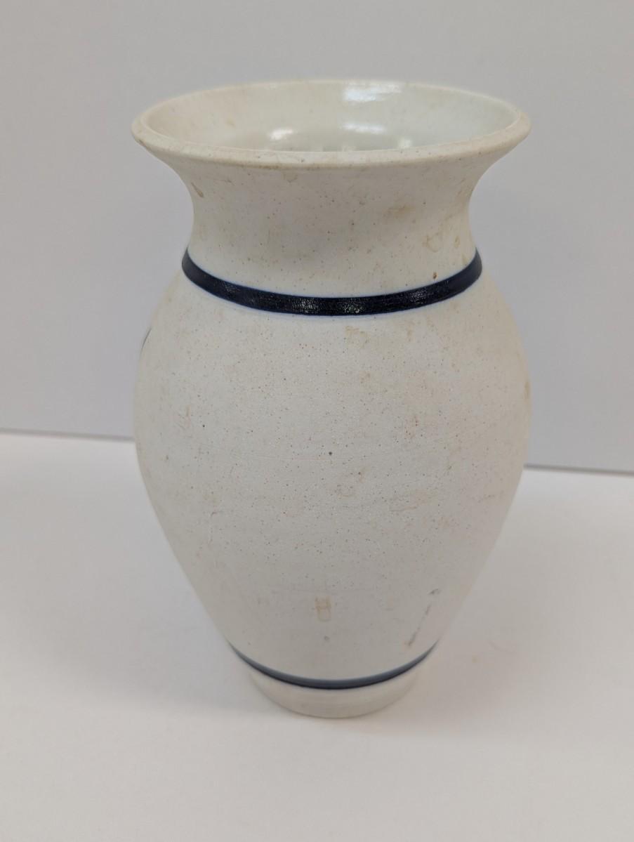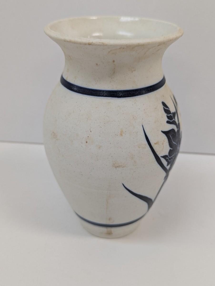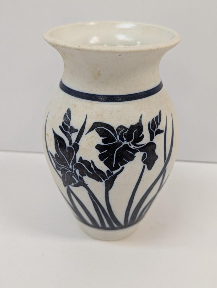 Studio Art Pottery Vase Hand Painted Floral Iris Signed