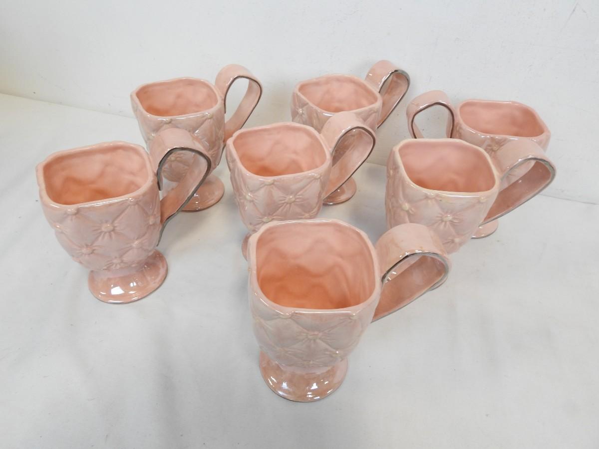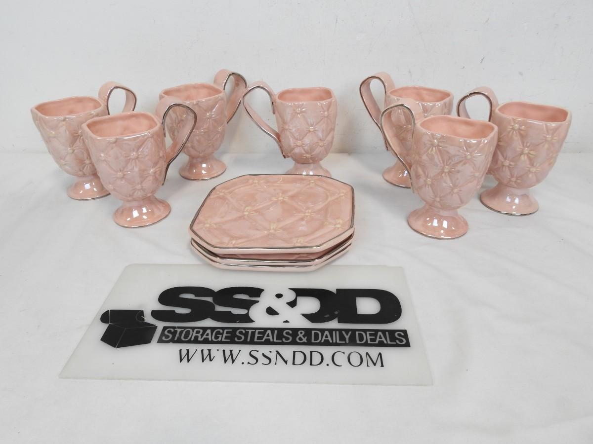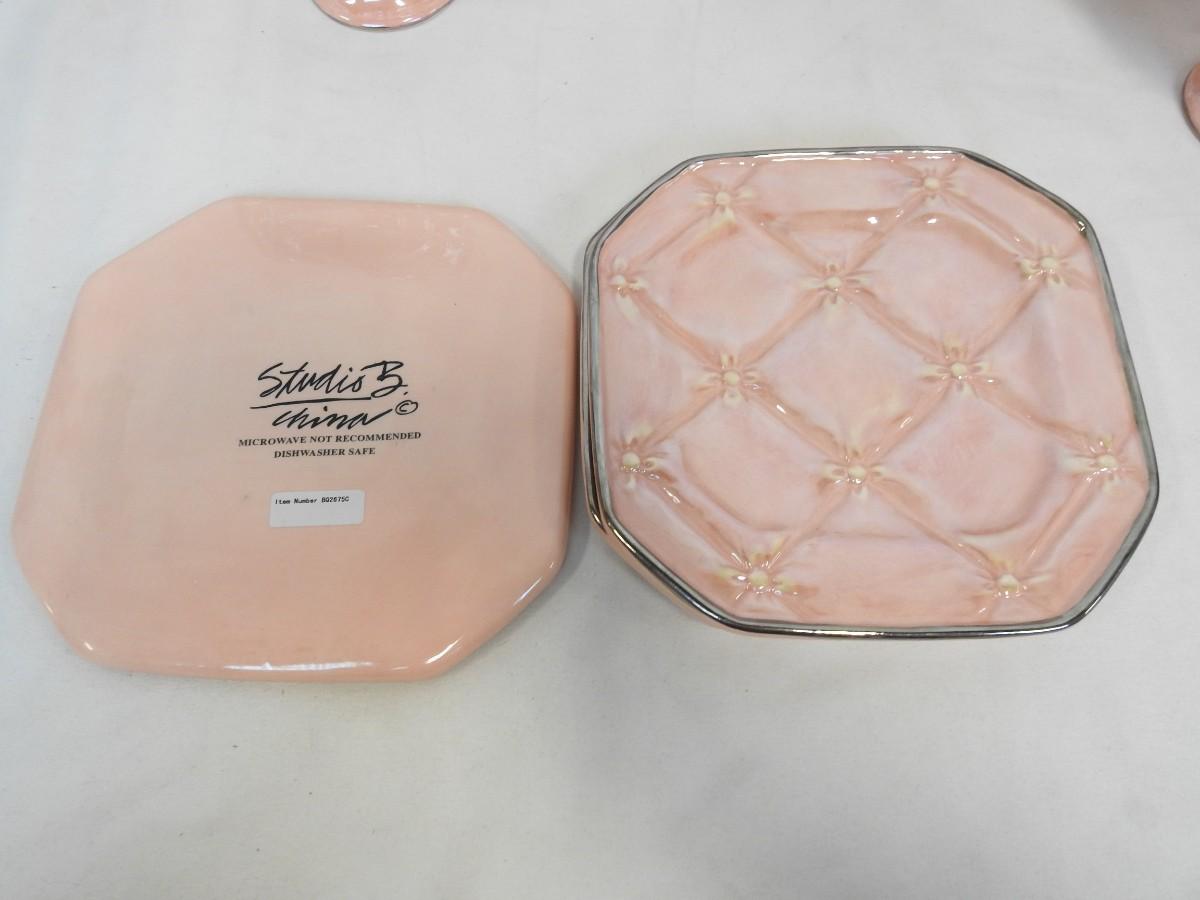 Studio B Quilted Pink China Set: 7 Mugs, 3 Plates, Used, Great Condition