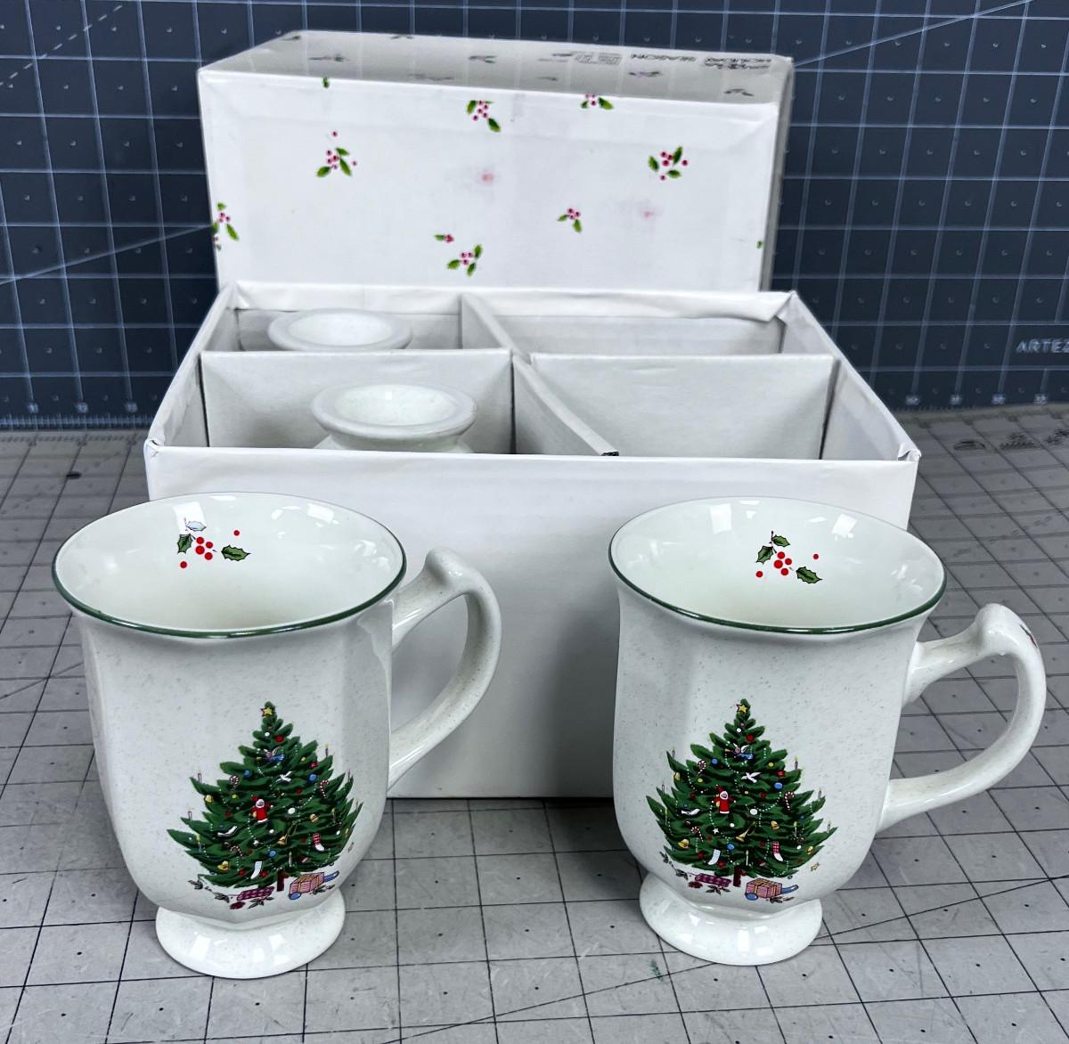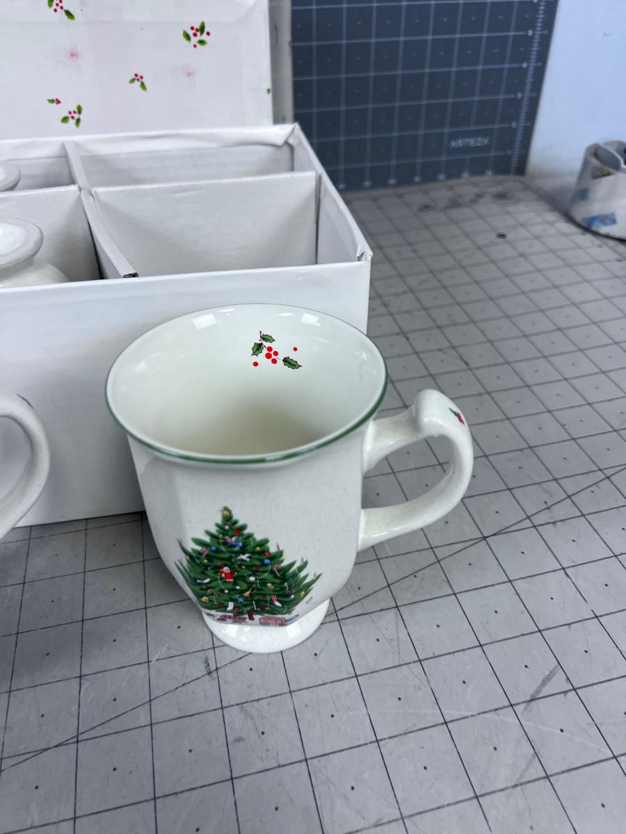 STUDIO NOVA 4 Brand New Irish Coffee Mugs with Christmas Tree Moffit