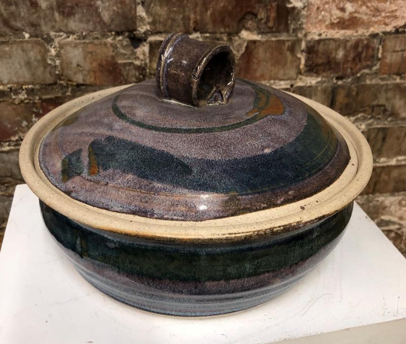 STUDIO POTTERY STONEWARE COVERED CASSEROLE signed