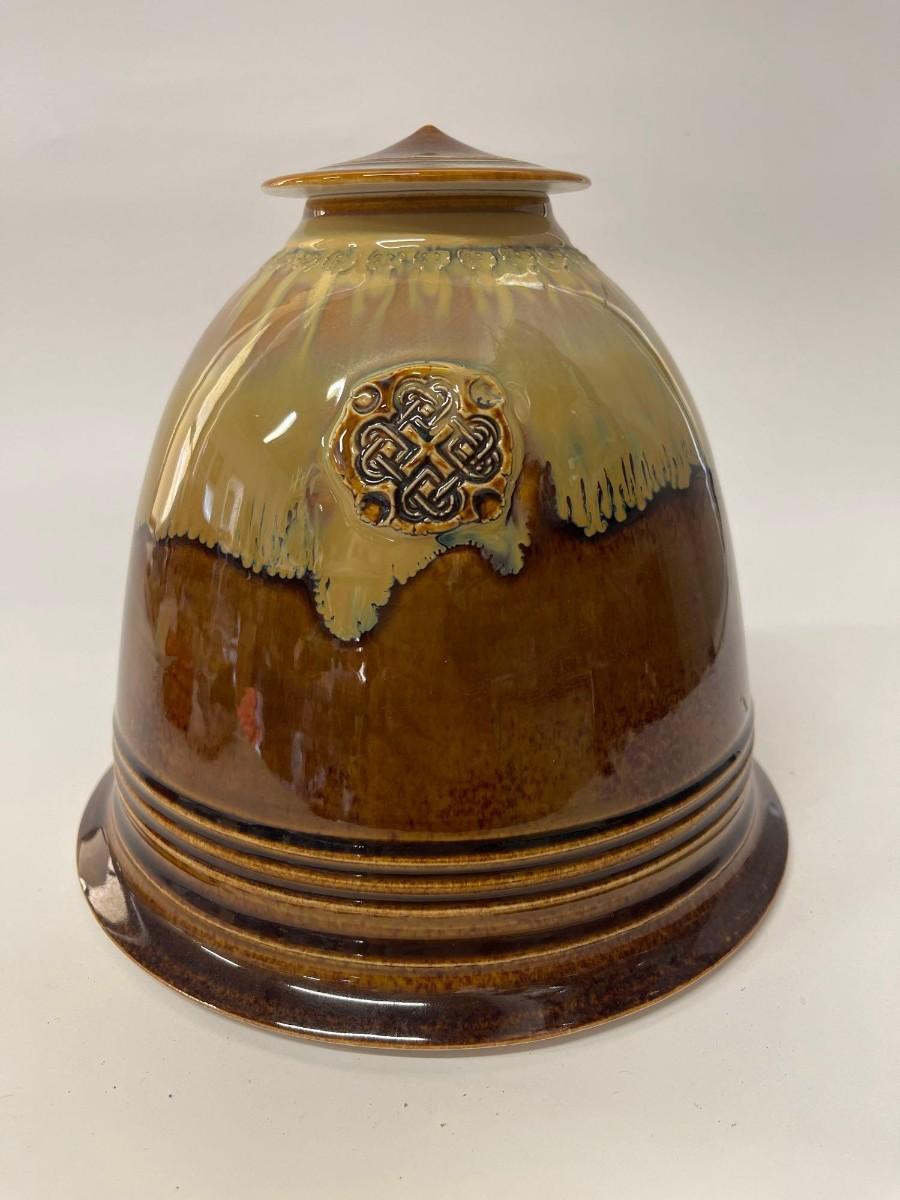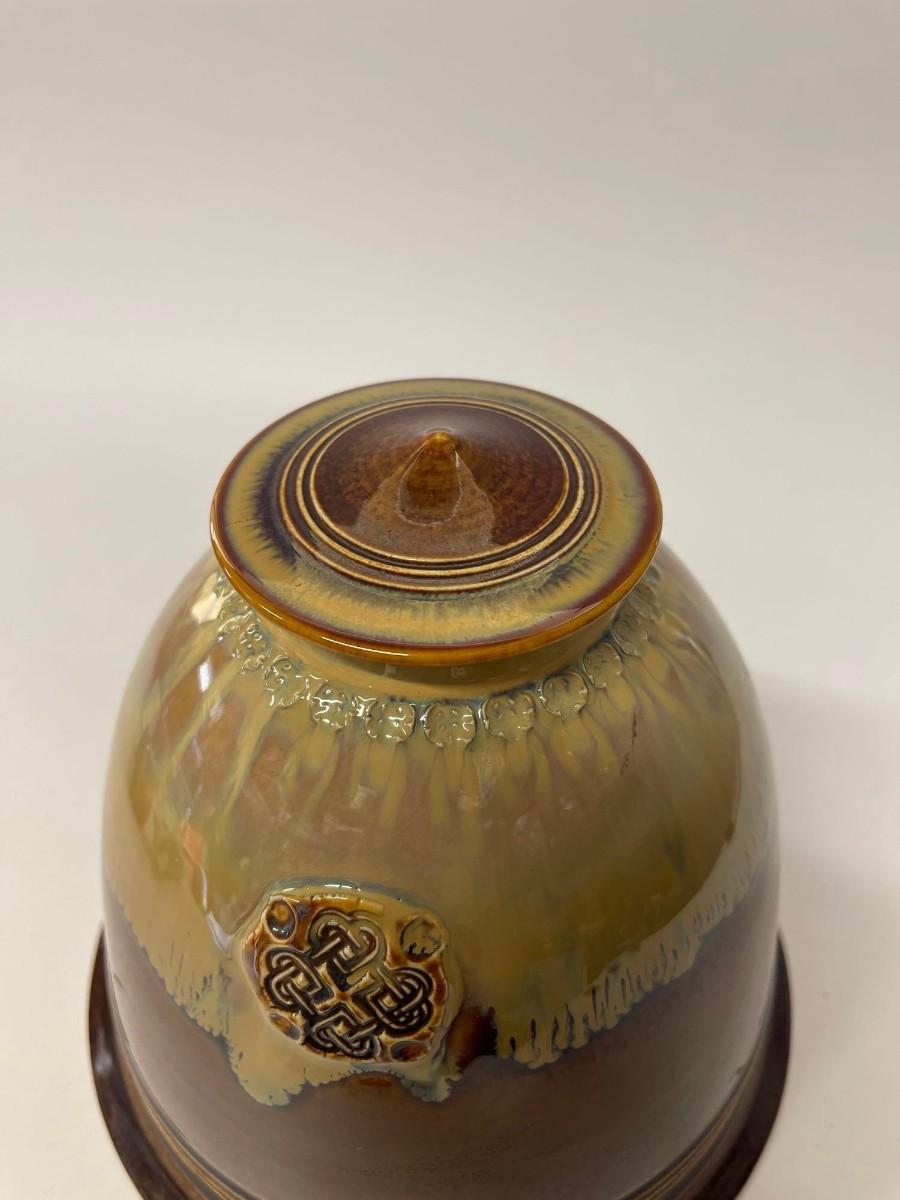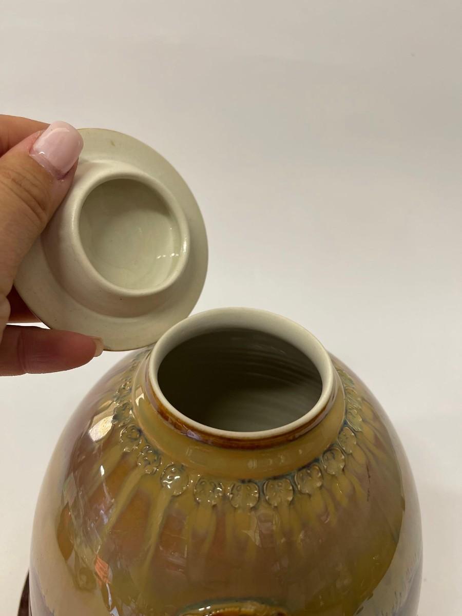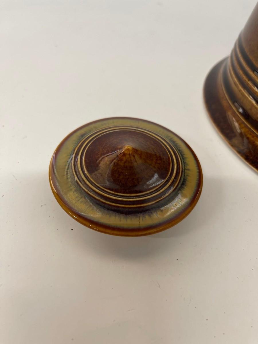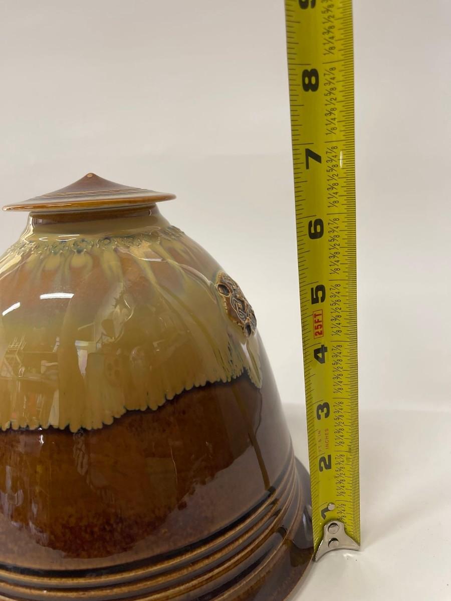 <p>Studio Signed Pottery Vessel with Lid, excellent condition. Singed on the bottom. </p>