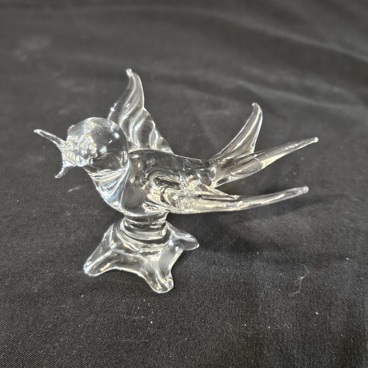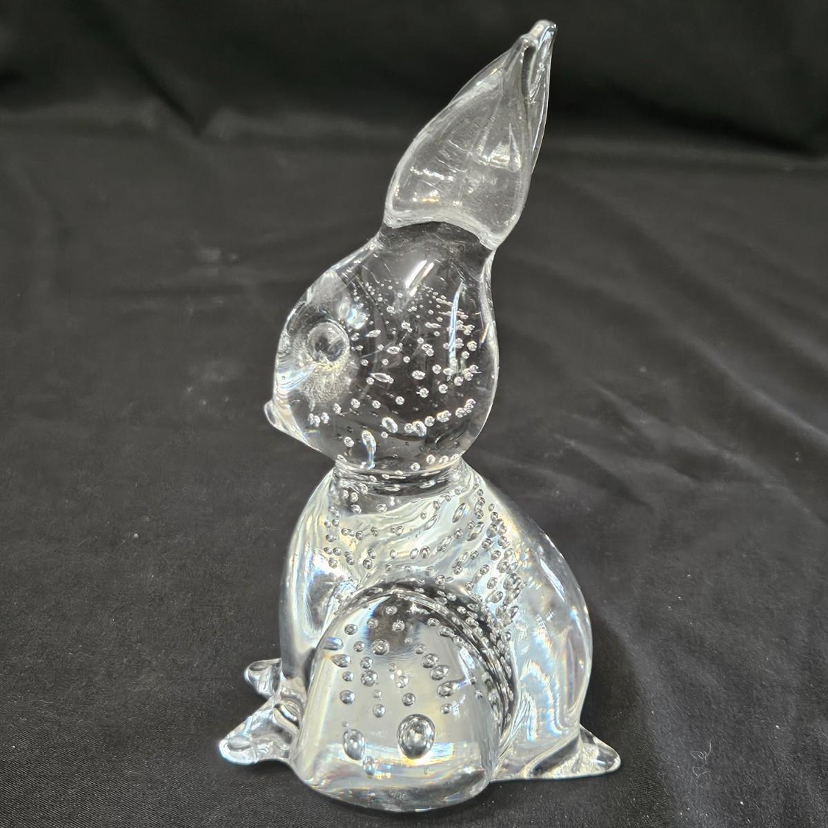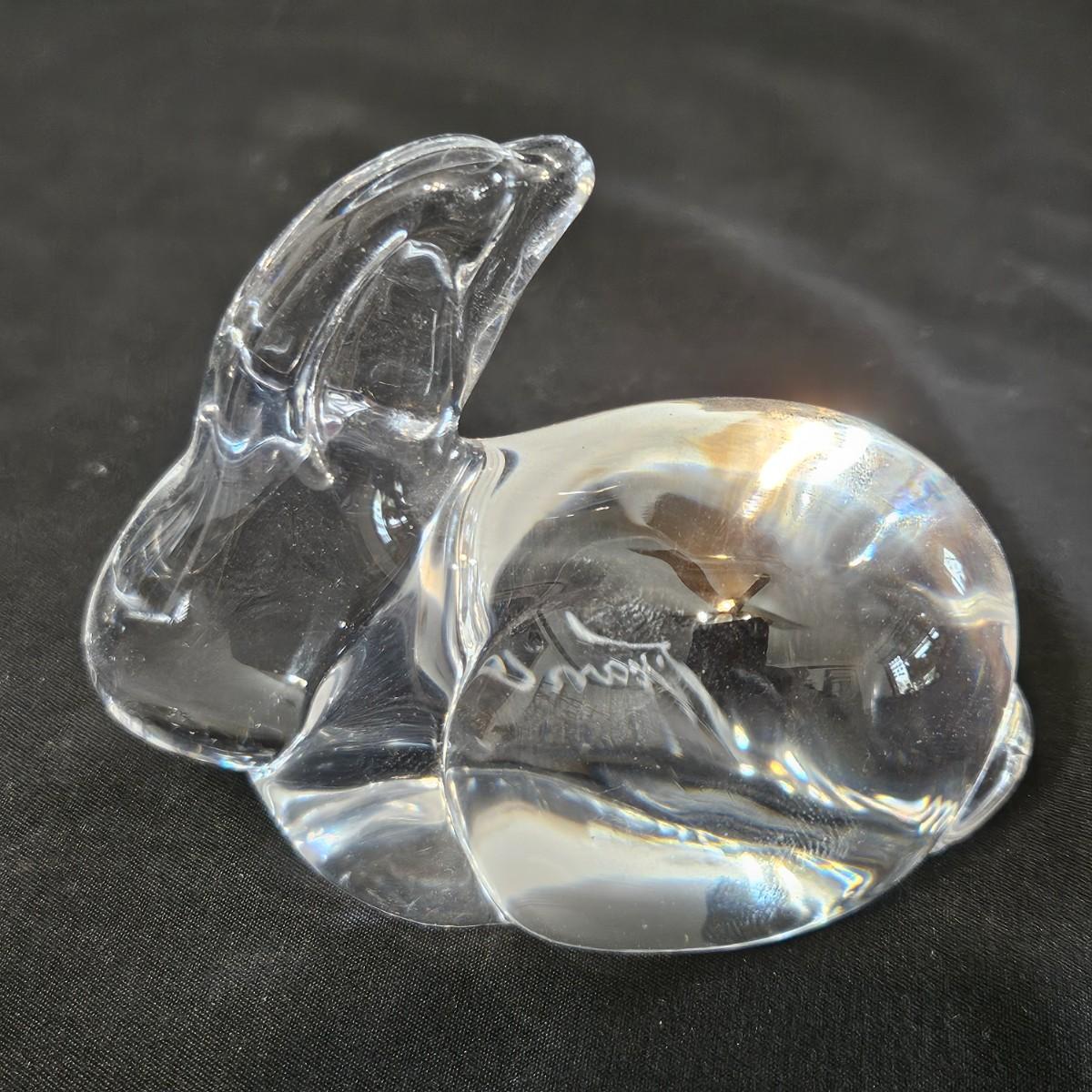 An assortment of glass and crystal critters that includes cats, bunnies and birds. The curled up cat has 'Steuben' etched in the back and upright cat has a Bohemia sticker. The rabbit measures approximately 3" x 3.5" x 6"H. Shipping available