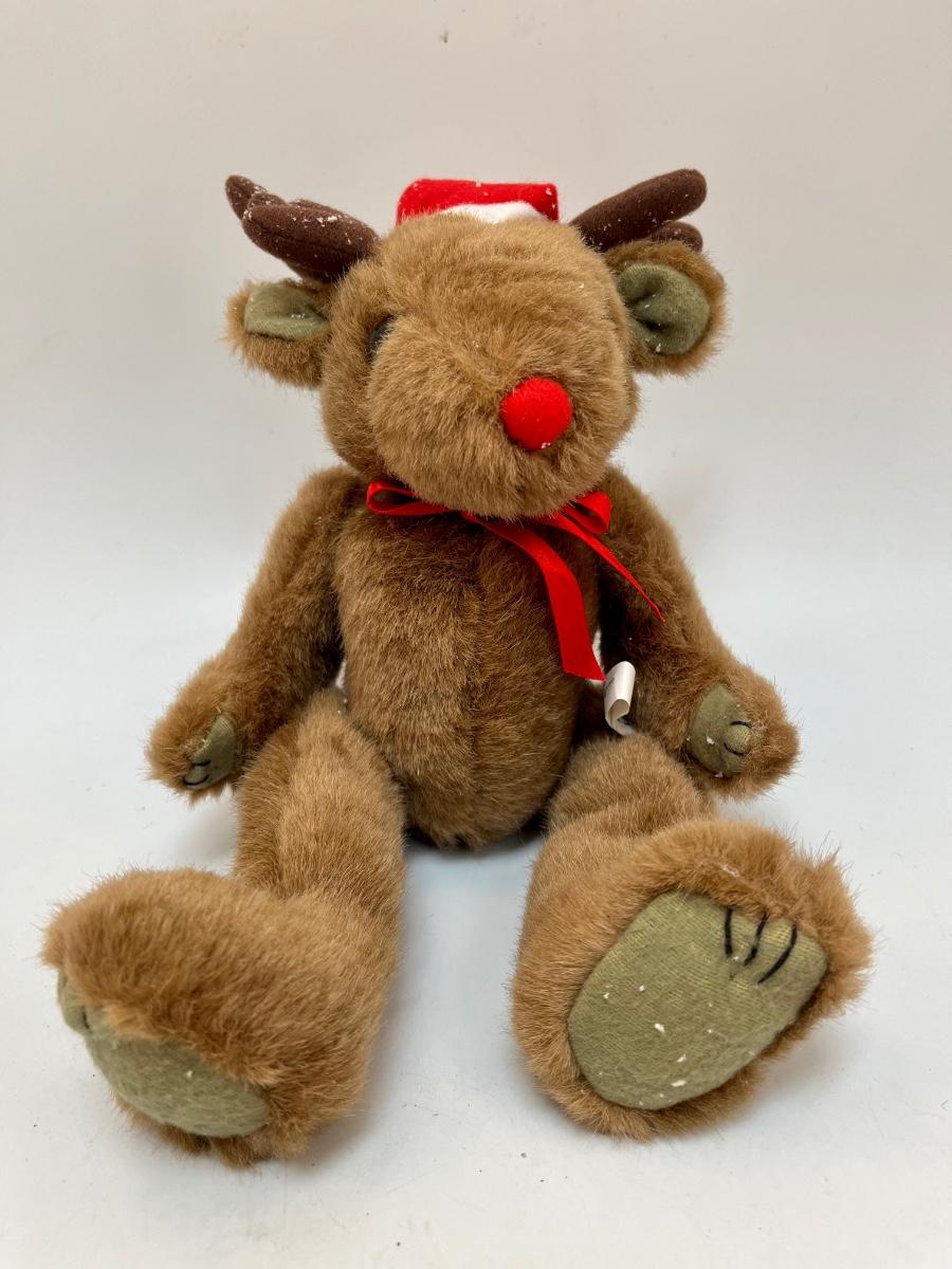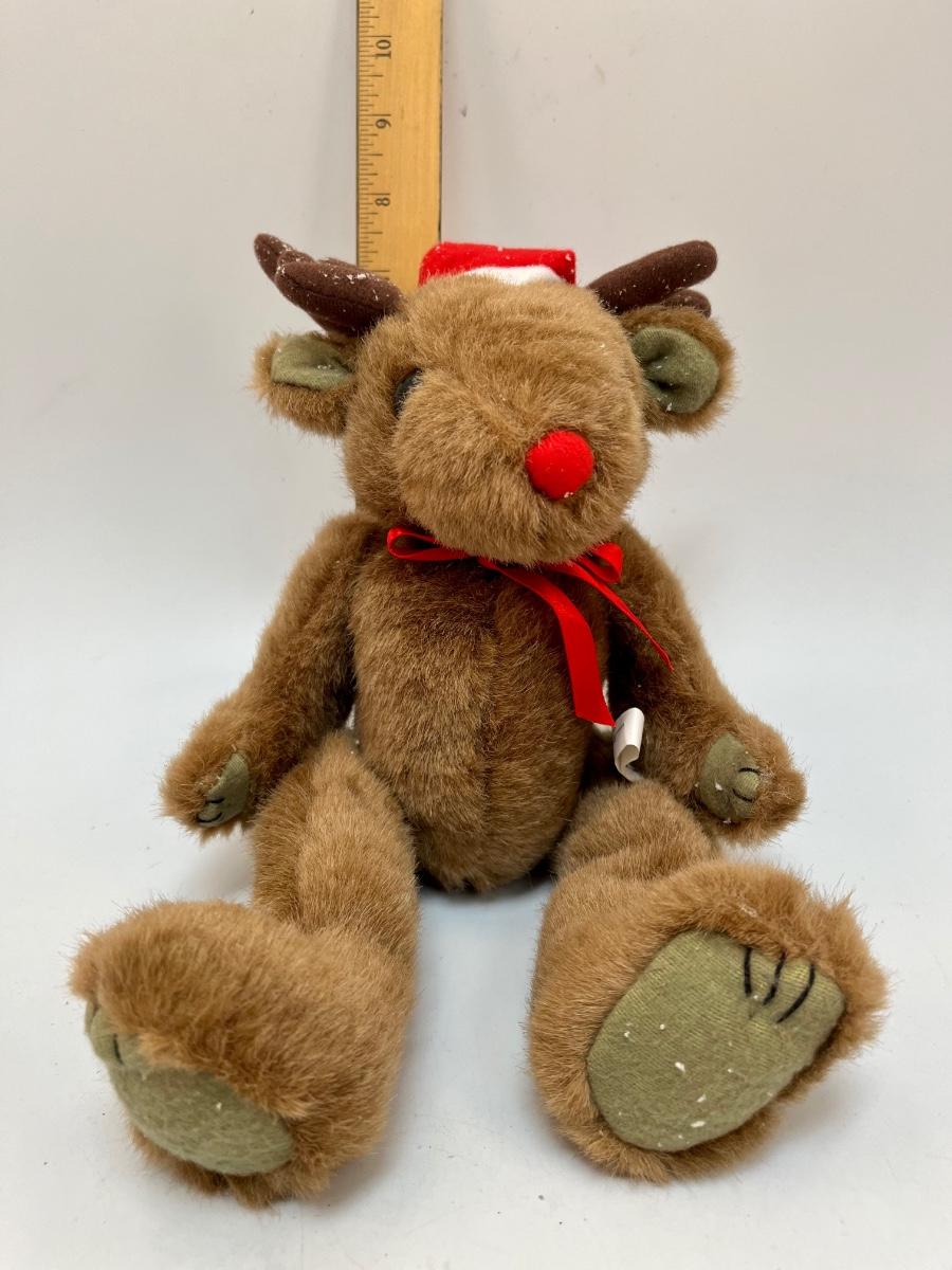 Stuffed Animal Plush Reindeer Santa Hat Christmas Decor