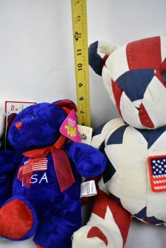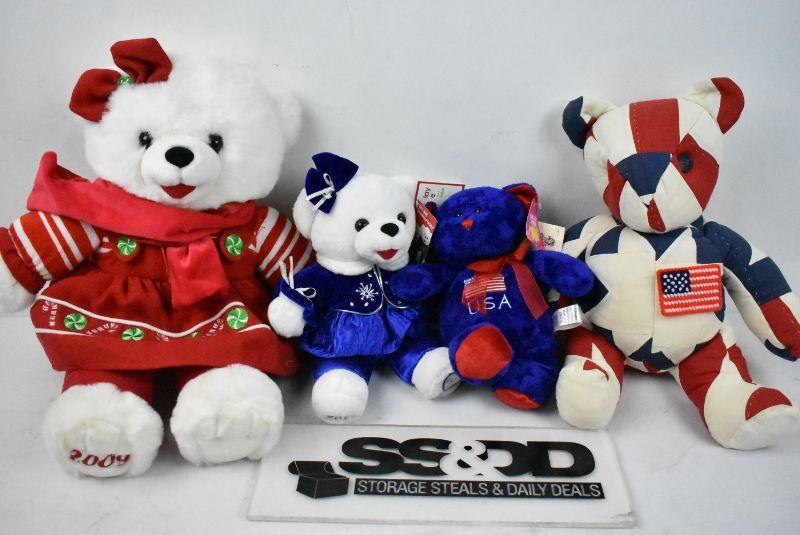 Stuffed Animal Teddy Bears (2) Christmas & (2) Patriotic
