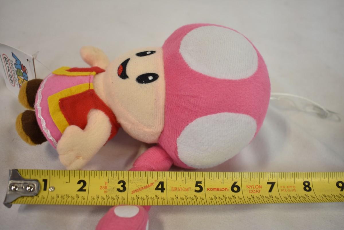 Stuffed Mario Pink Mushroom Toadette, NEW w/Tag & suction Cup For Hanging