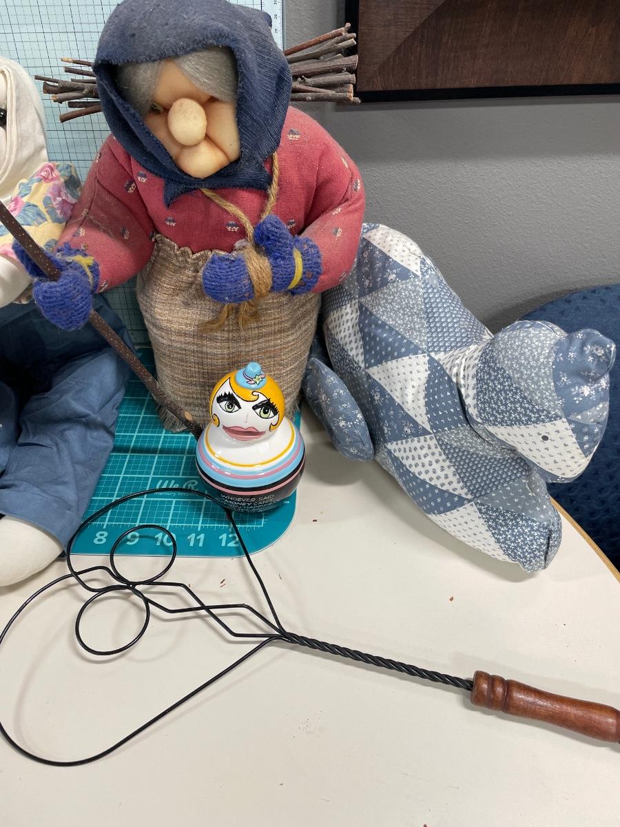 With coin bank and rug beater