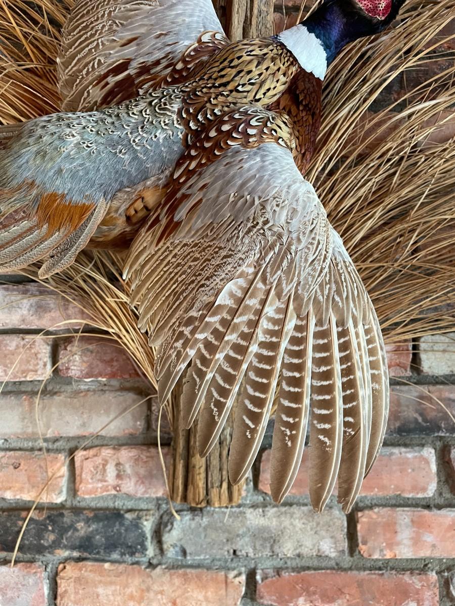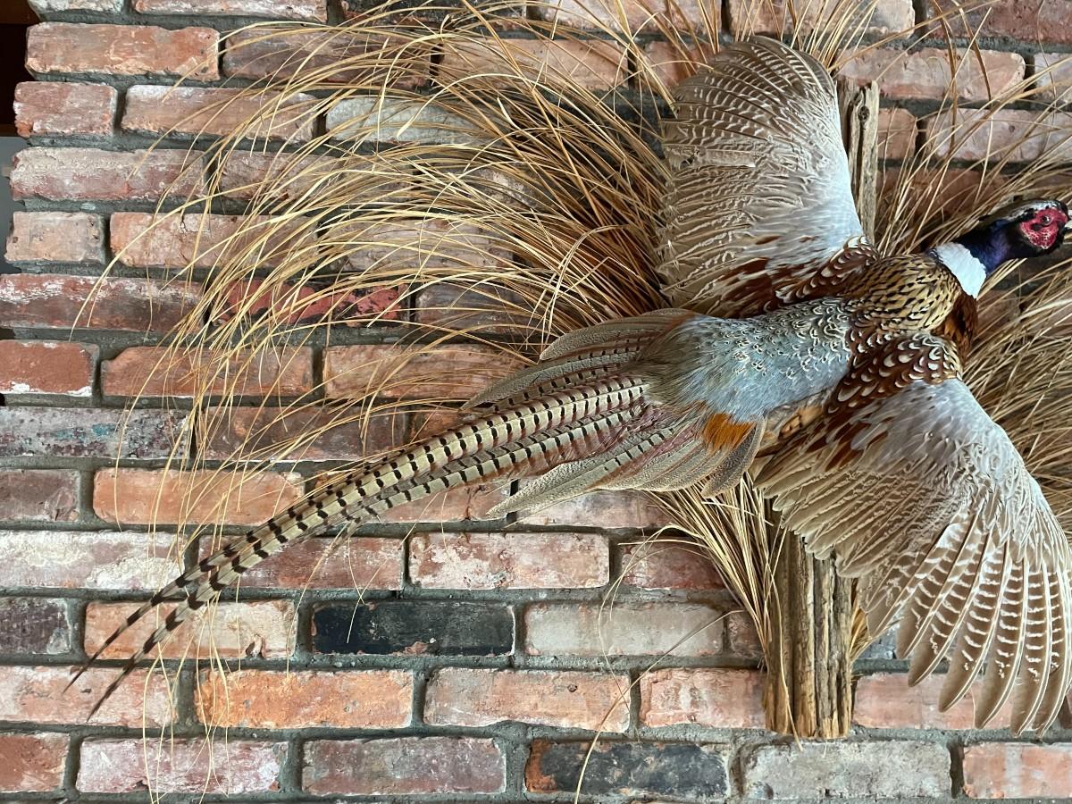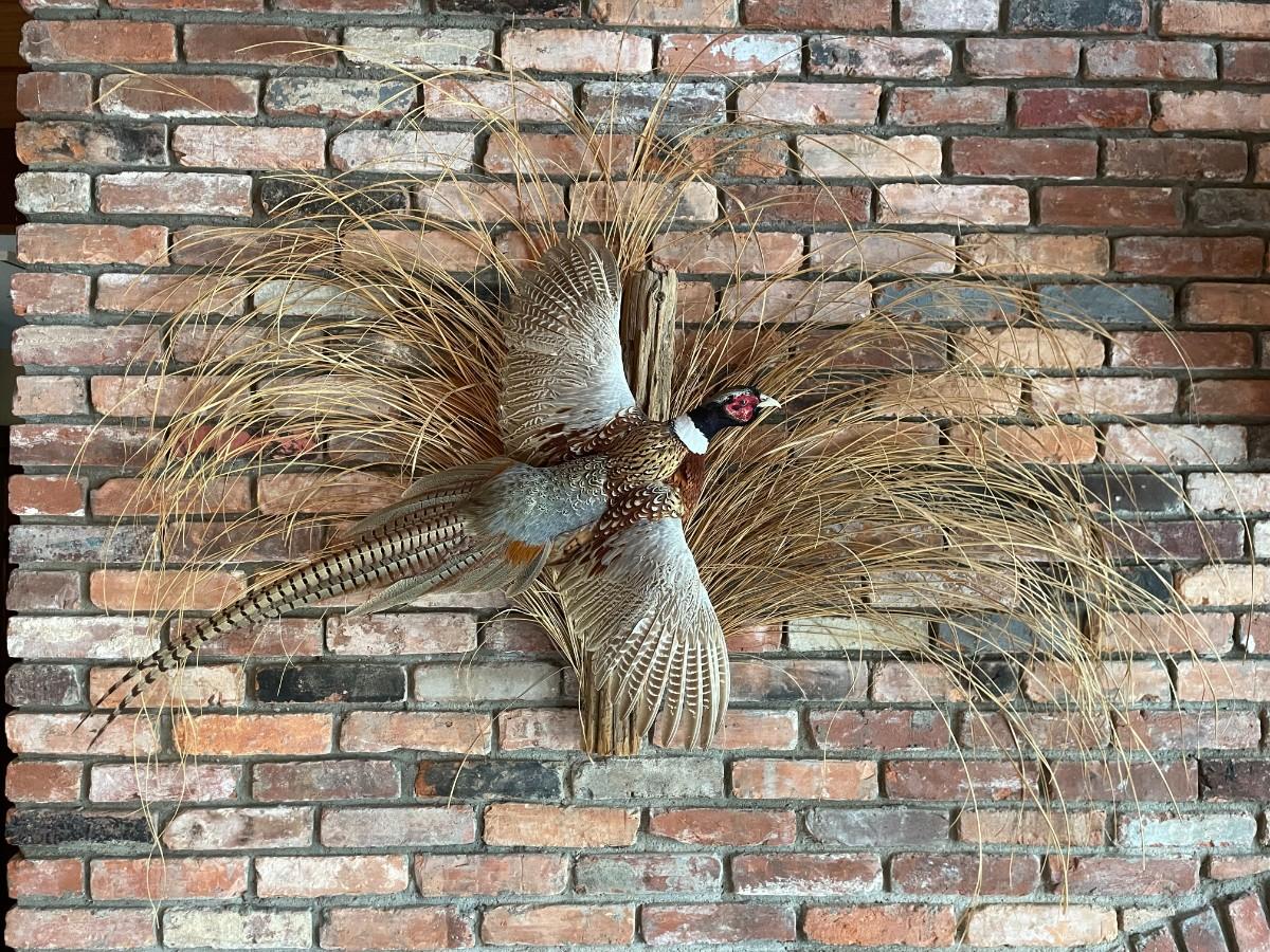 Beautiful and decorative stuffed Ring-necked Pheasant Bird: 34L x 27w.