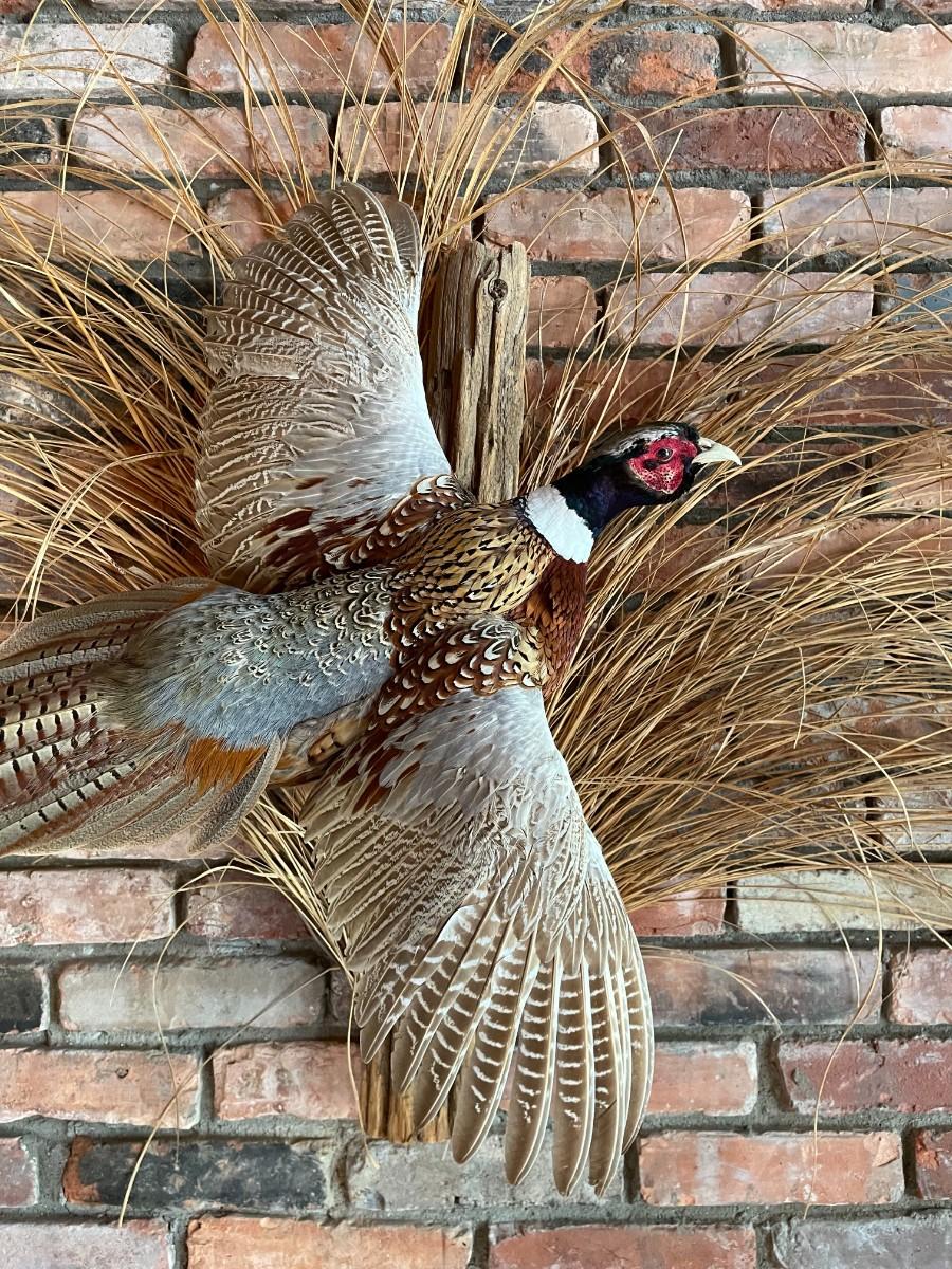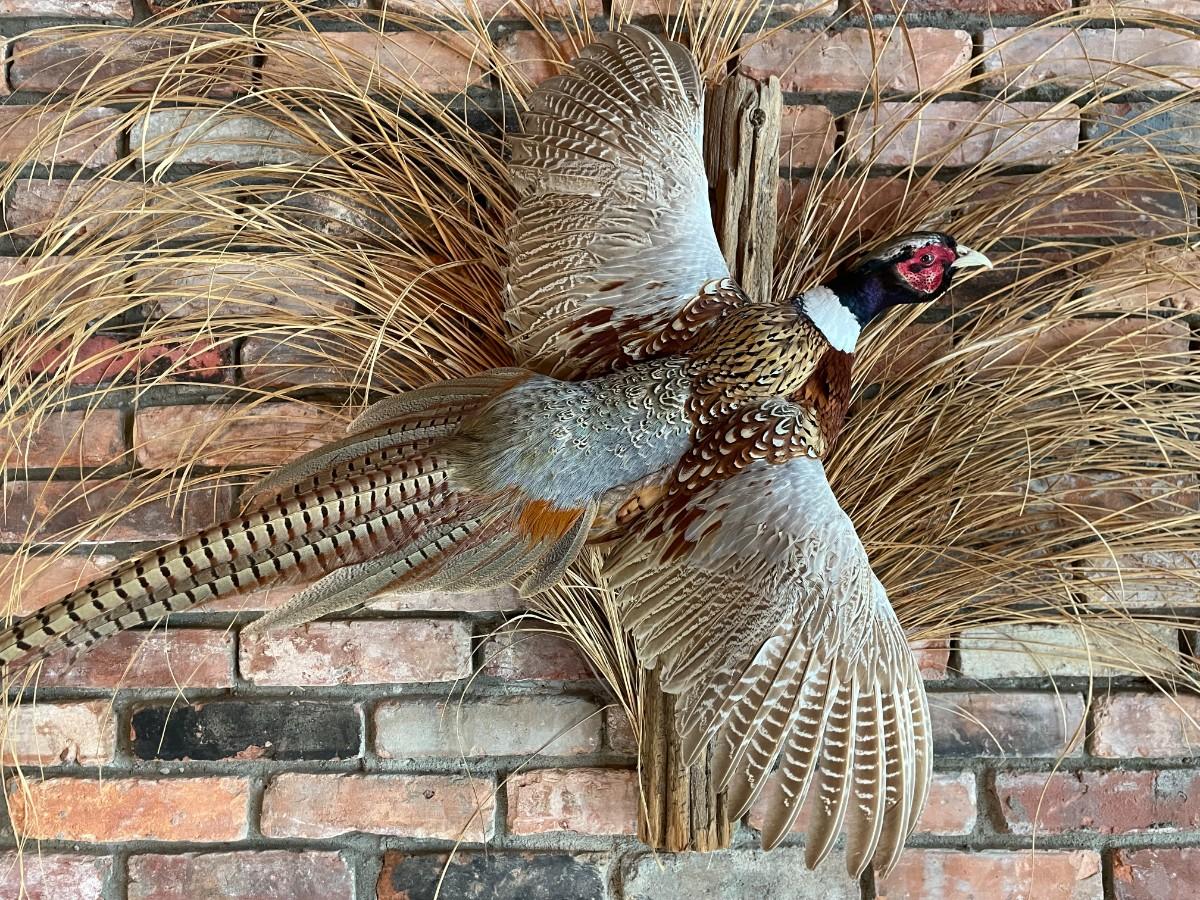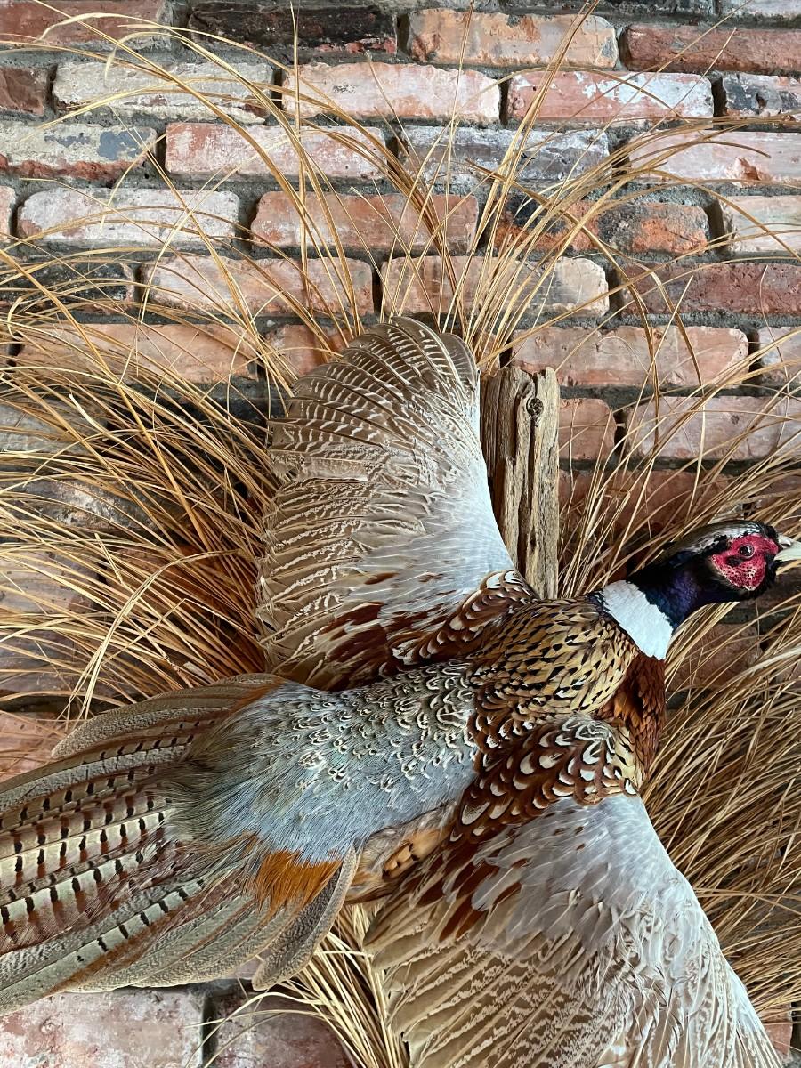 Beautiful and decorative stuffed Ring-necked Pheasant Bird: 34L x 27w.
