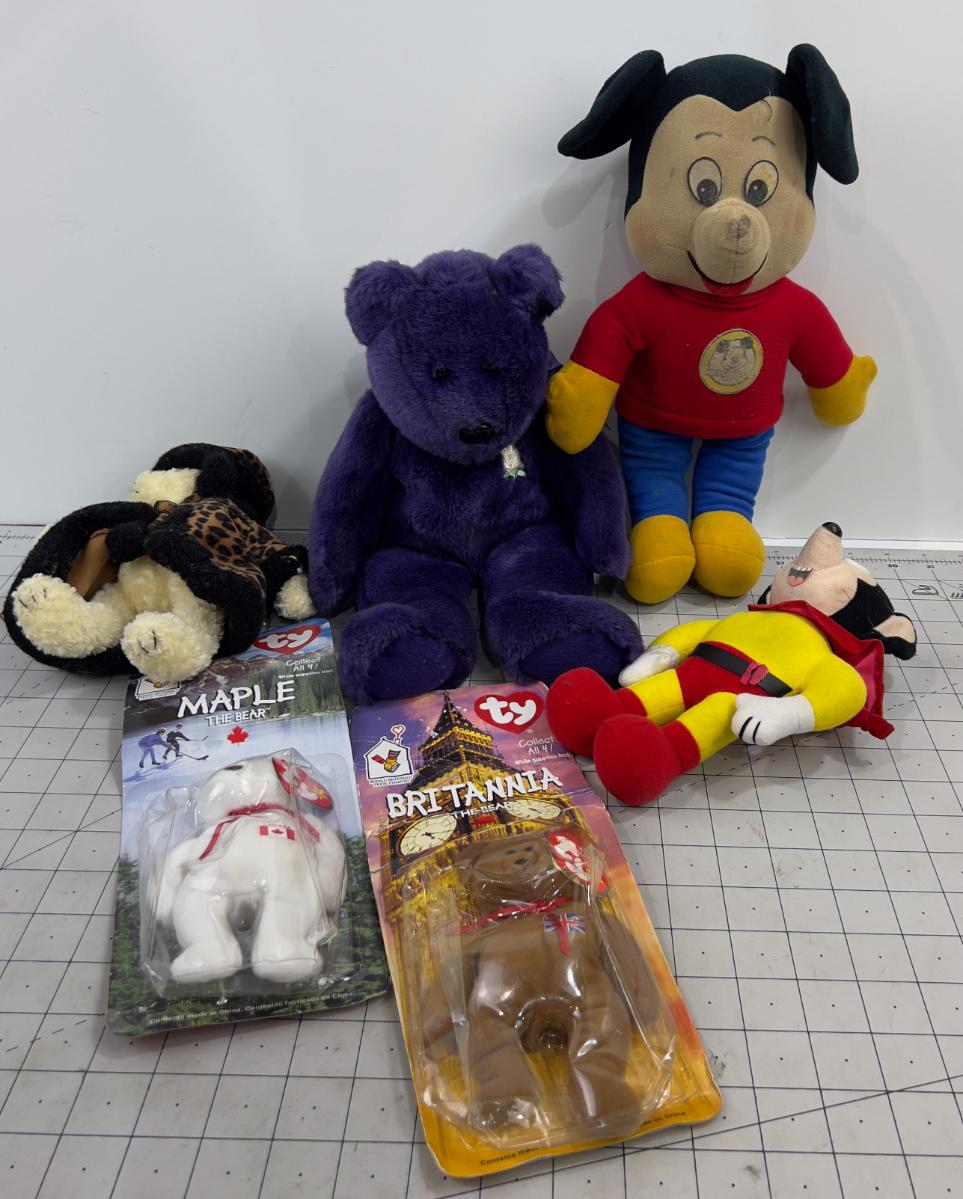 Stuffies: Mickey, Beanie Baby, Mighty Mouse