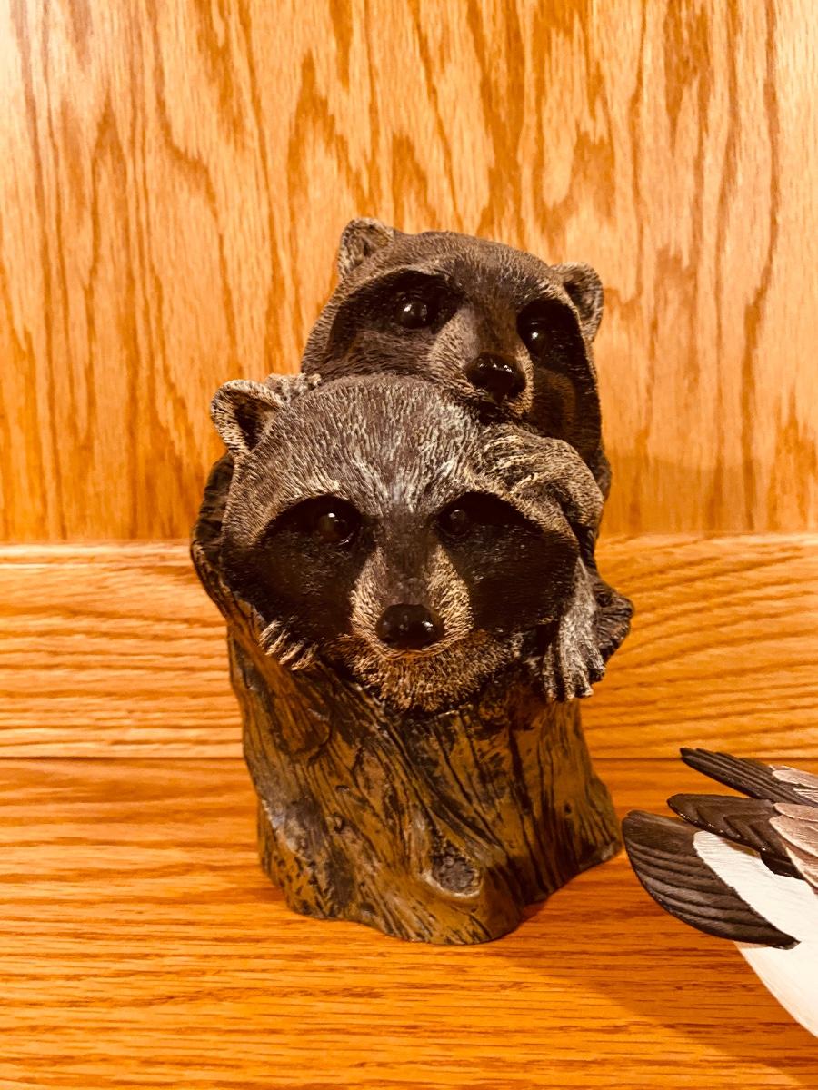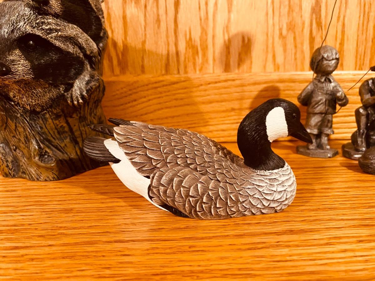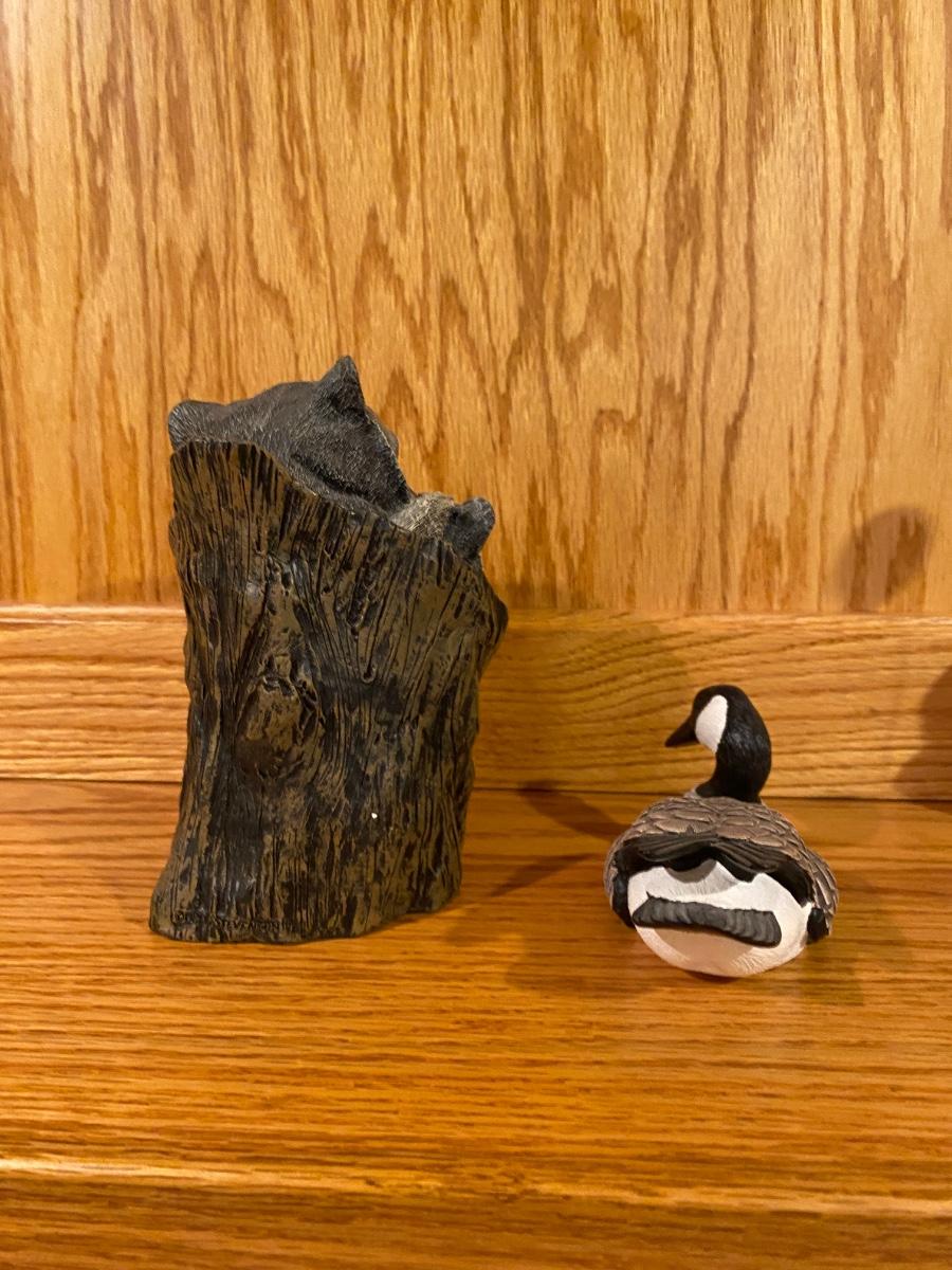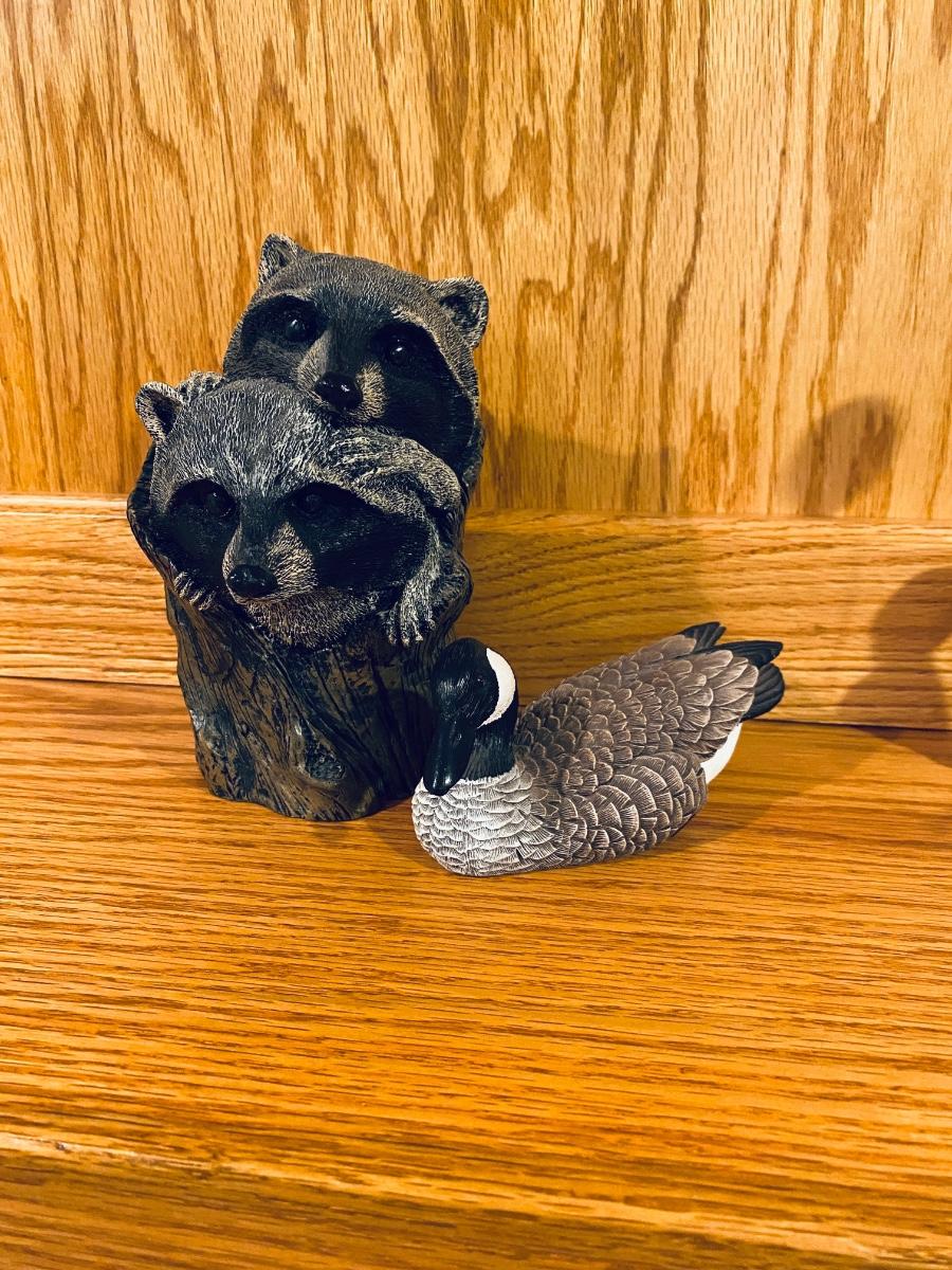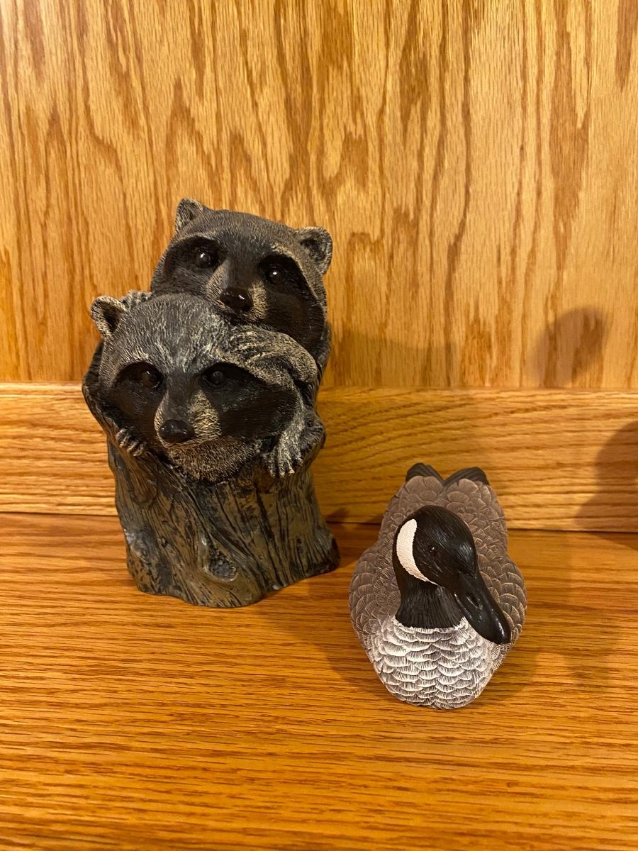 STUMP DWELLER RACCOONS BY GARY STEVENSON AND CANADIAN GOOSE BY HERITAGE DECOYS