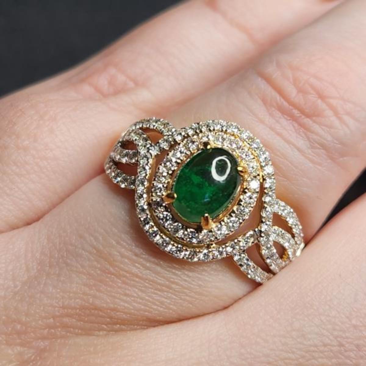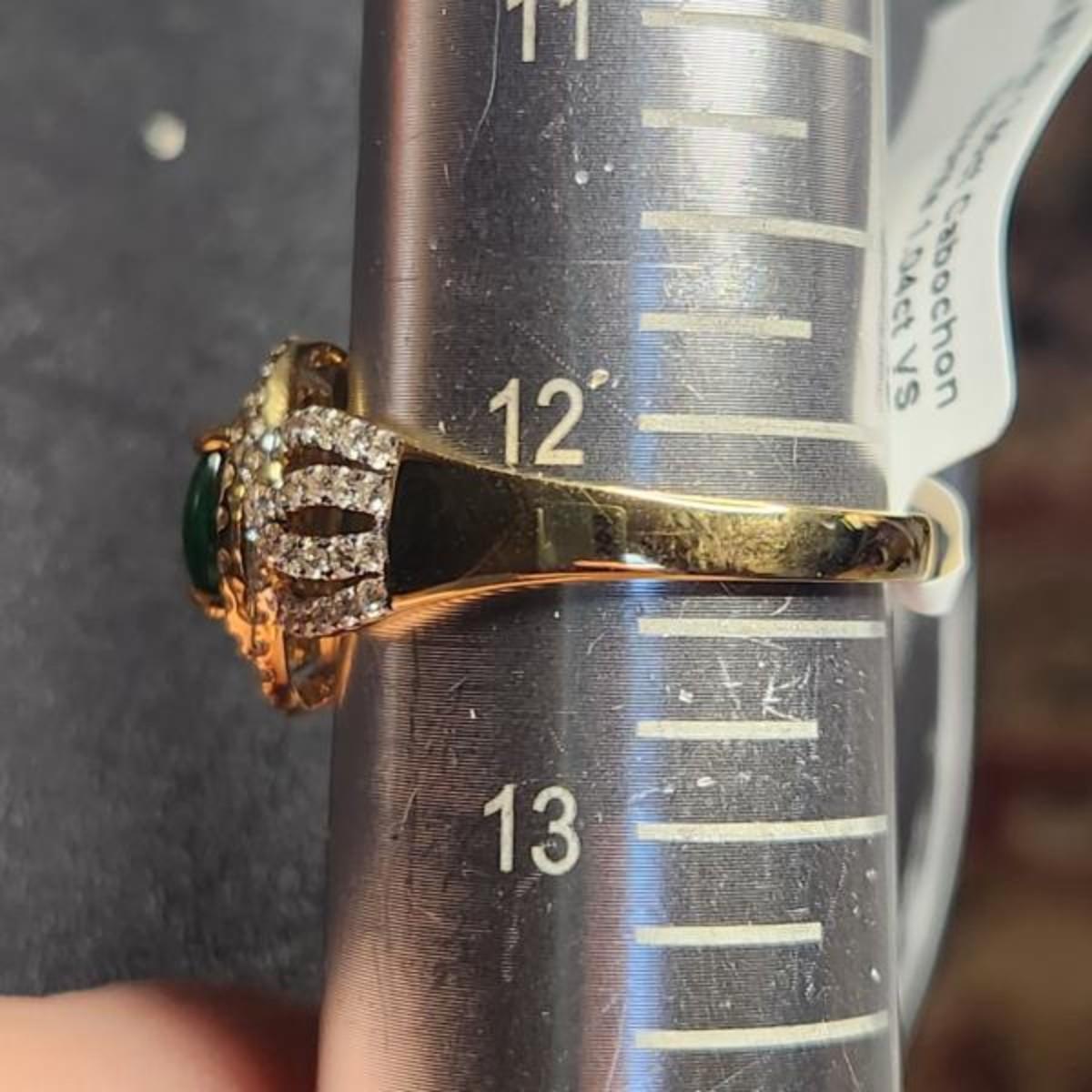 Stunning 14k White Gold 2.59cttw tsavorite vs diamond ring size 12.25 1.55 carat oval cabochon tsavorite ring with 1.04 VS diamonds