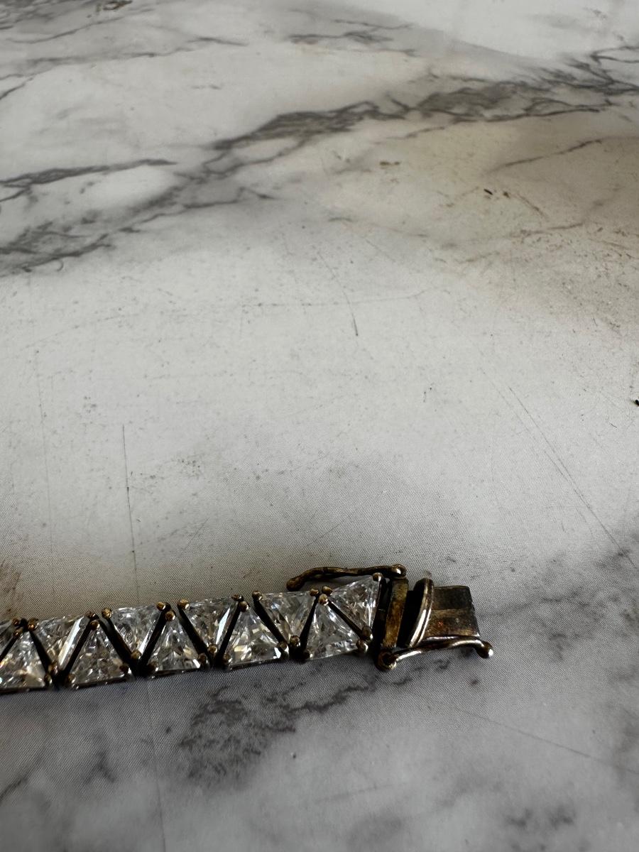 Stunning 21.62g 925 Silver Bracelet Trillion cut stones Estate Vintage Gem Stone