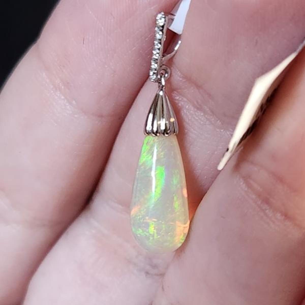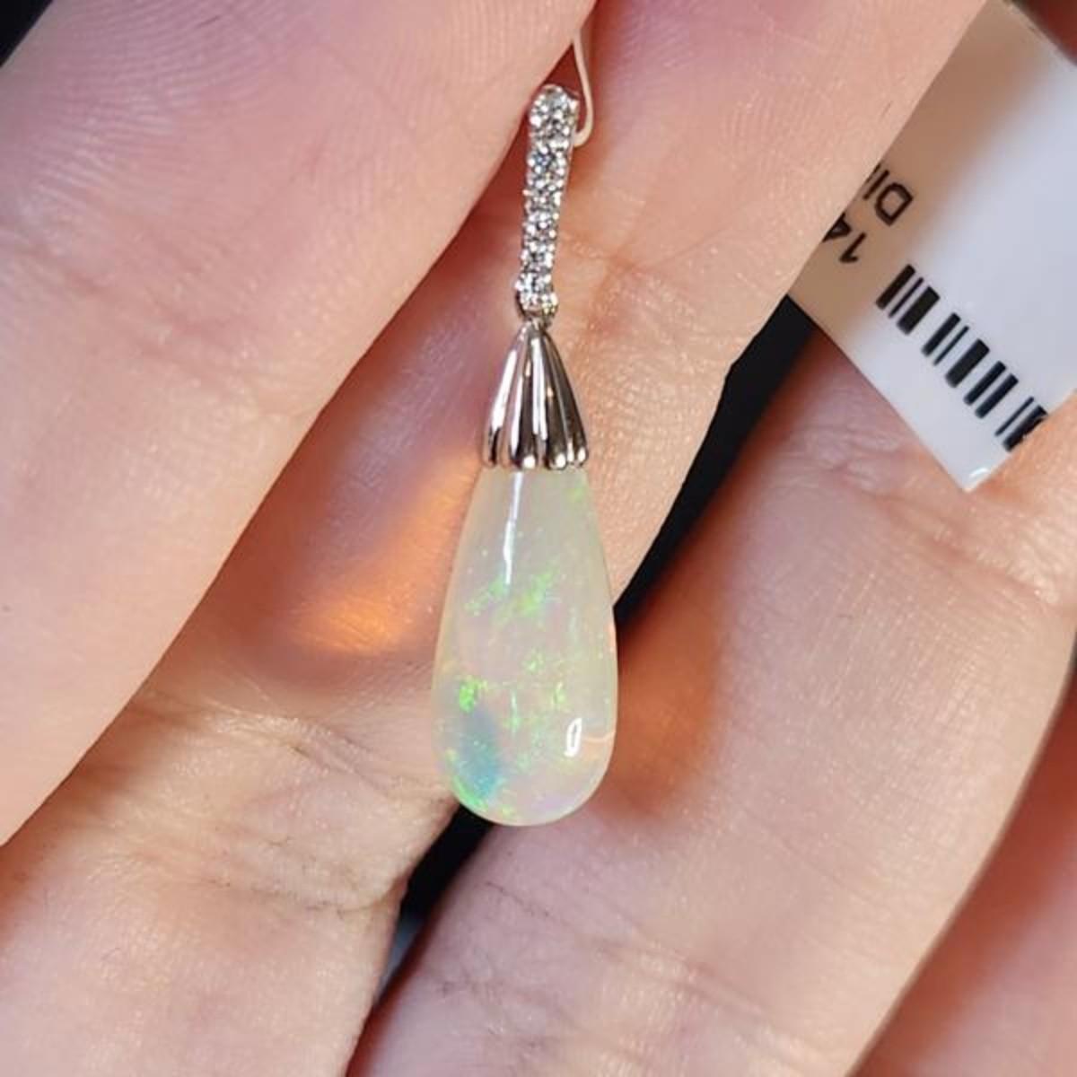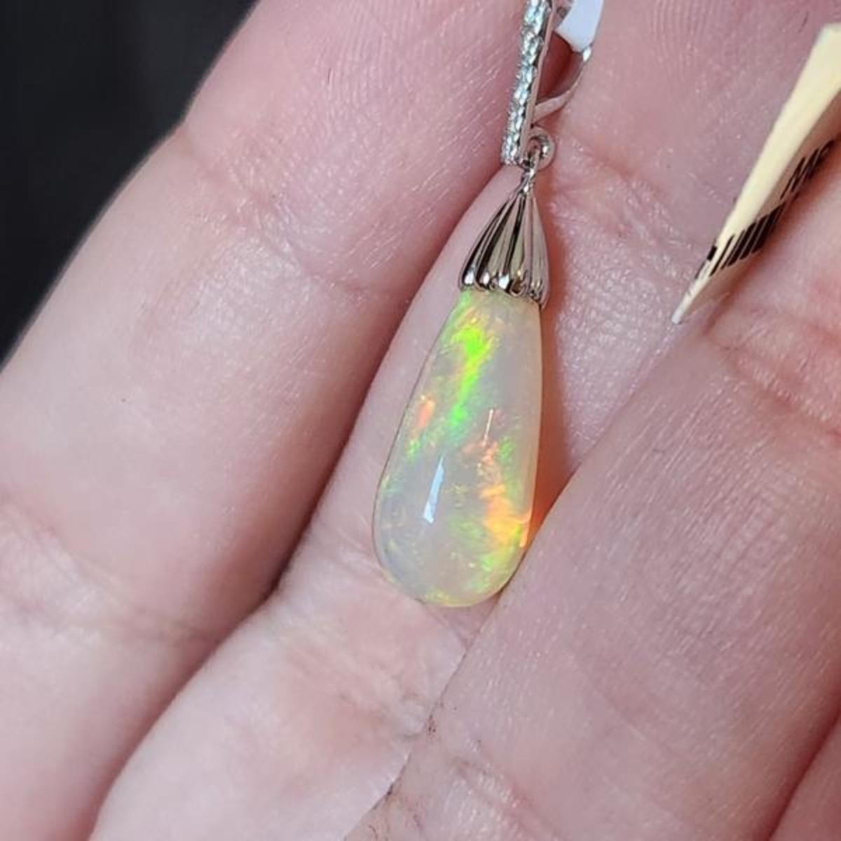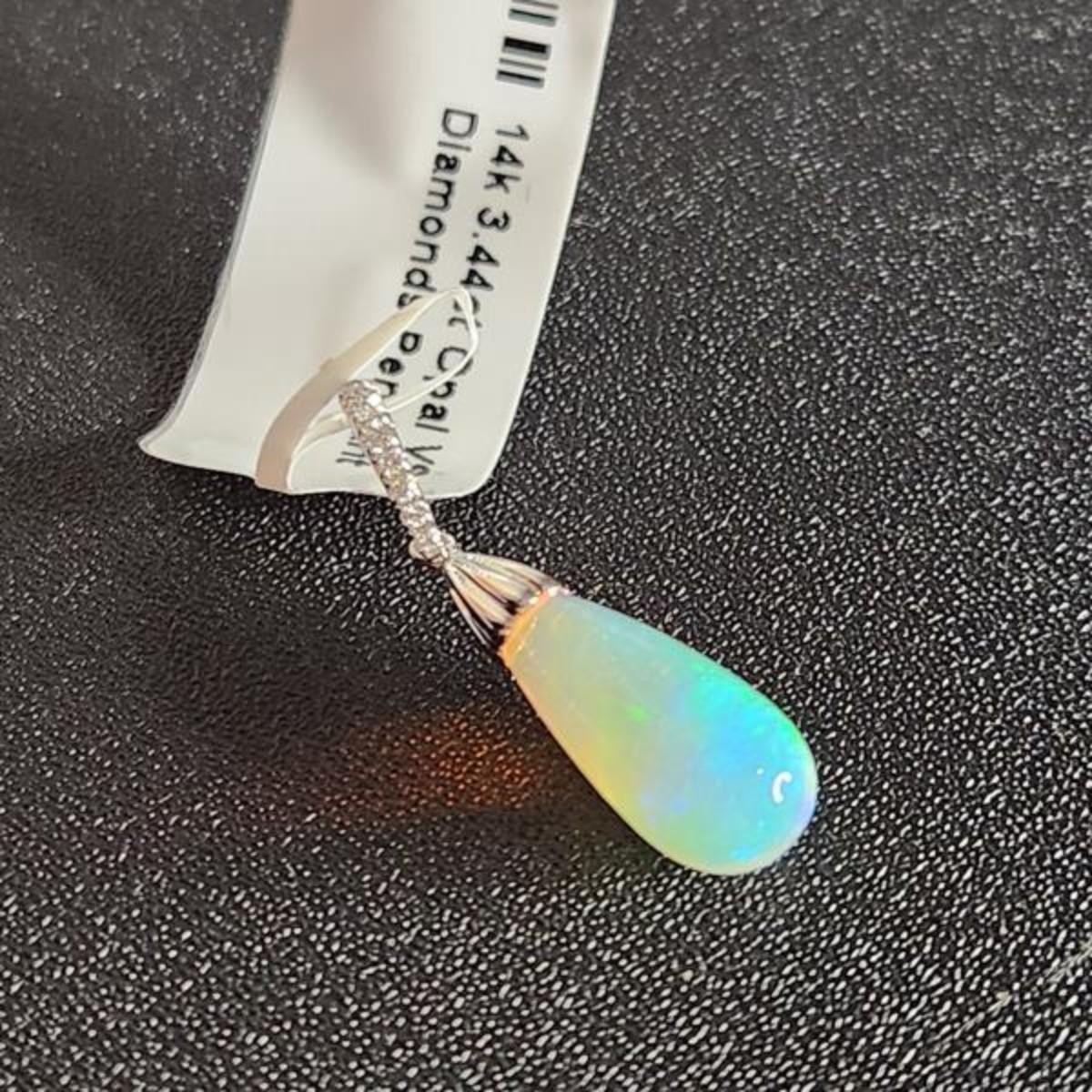 Stunning 3.44 Carat Teardrop 14k Opal Diamond Pendent