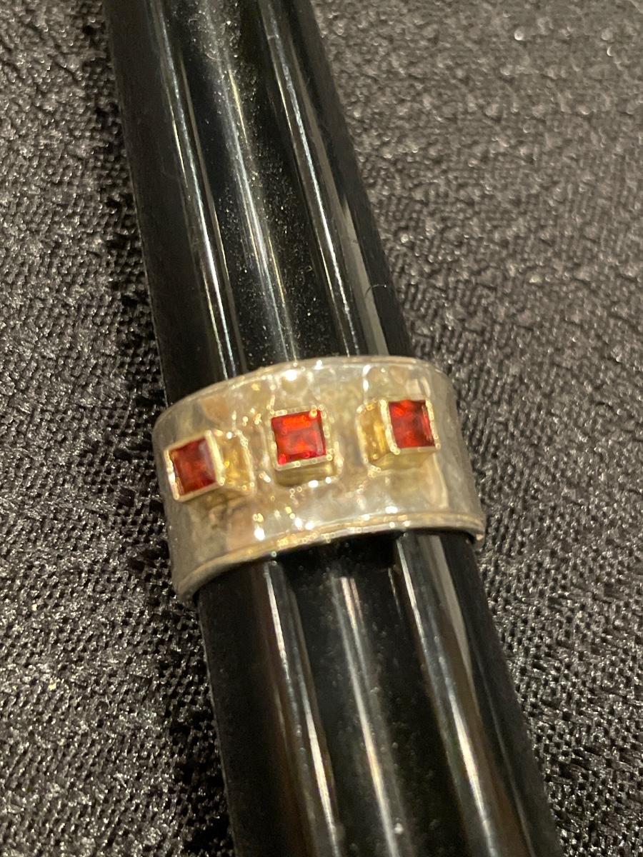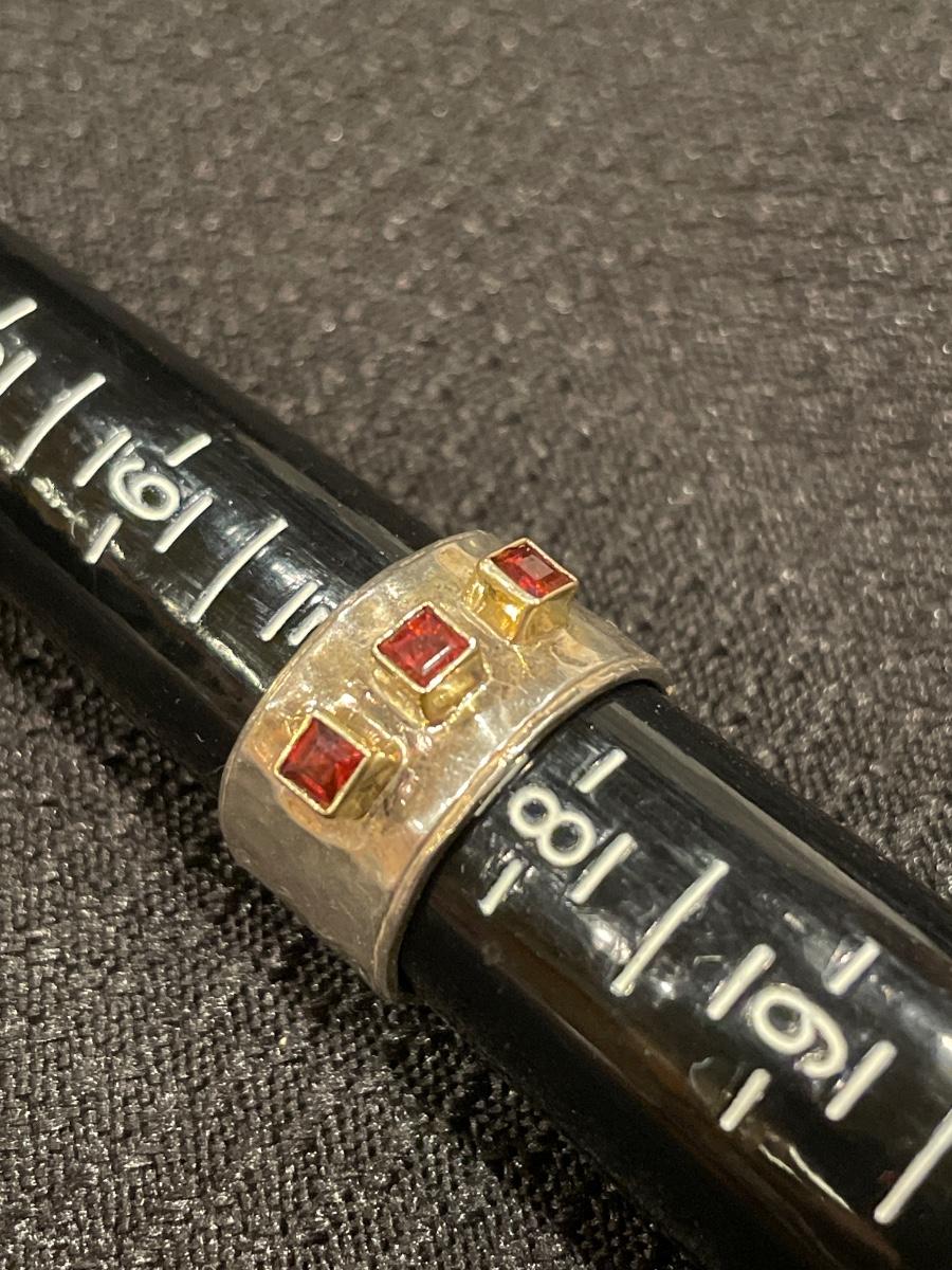 Stunning 925 ring with 14k accents with possible garnet square stones
