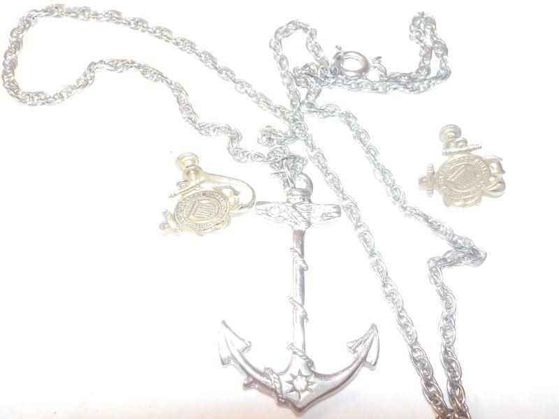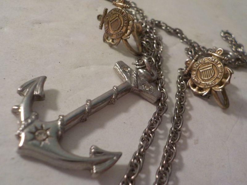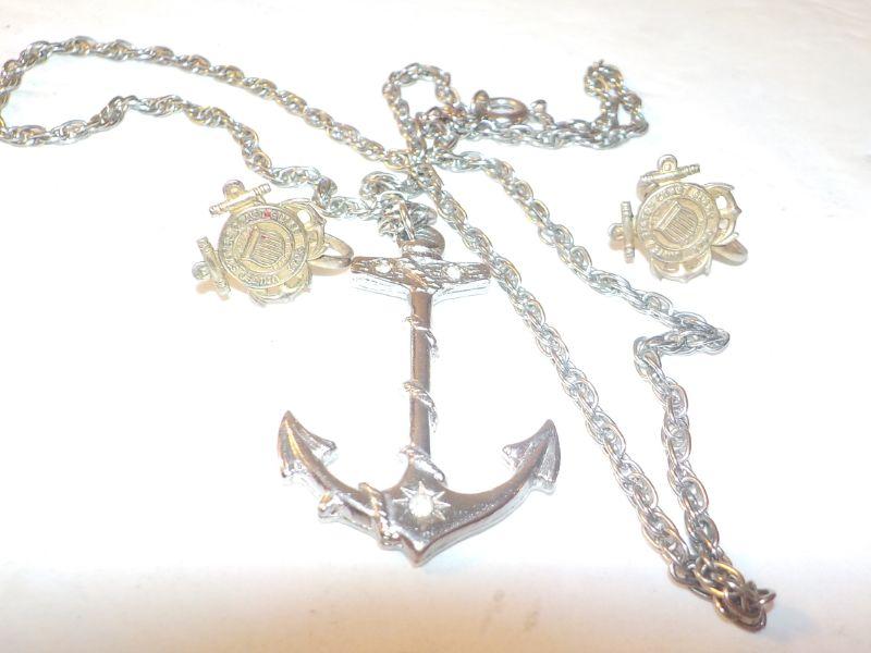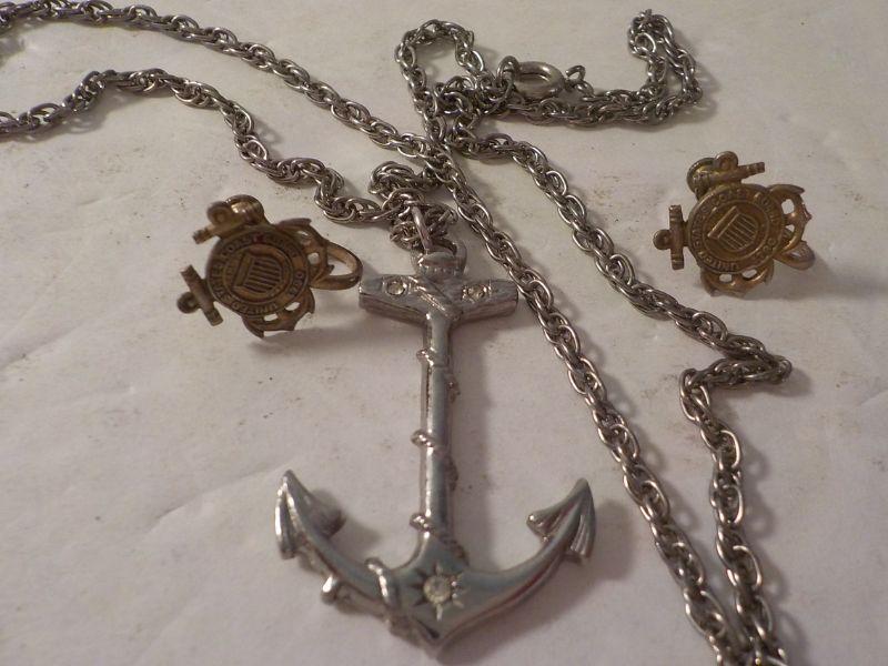 " Stunning Anchor Necklace and 2 vintage womens US. Coast Guard ear Rings"
