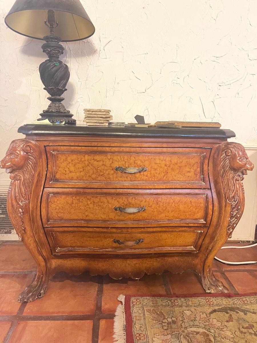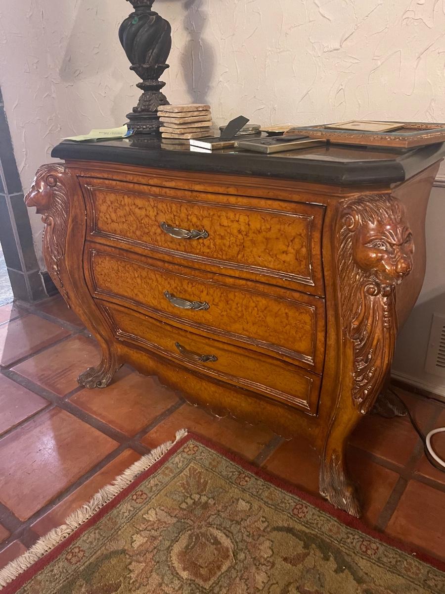 This piece is incredible as a side or end table. Is in excellent condition and beautiful in any room of the house. Matches the dining room table in this estate sale.