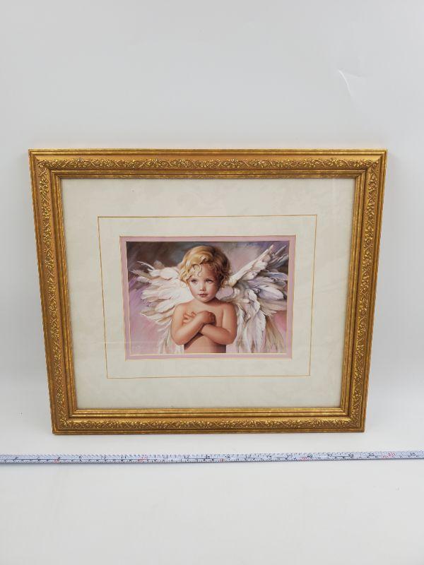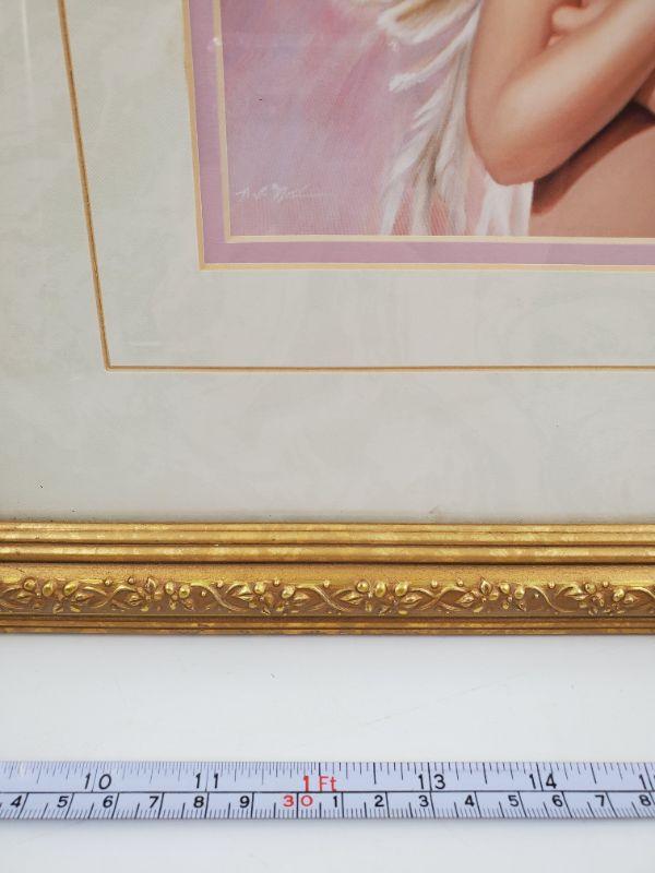 This angel print is stunning and wrapped in a gold toned frame....good condition and even more amazing in person!