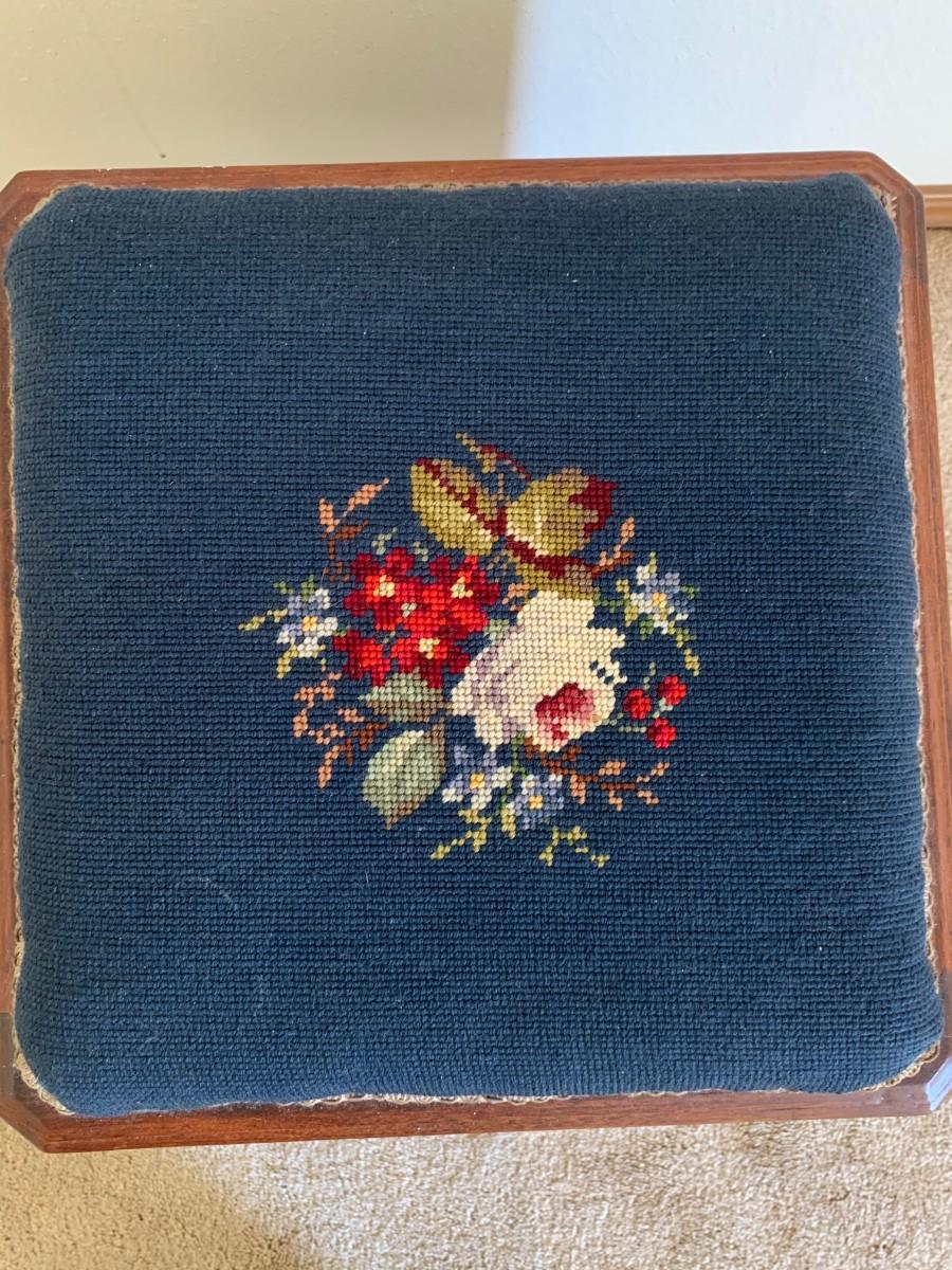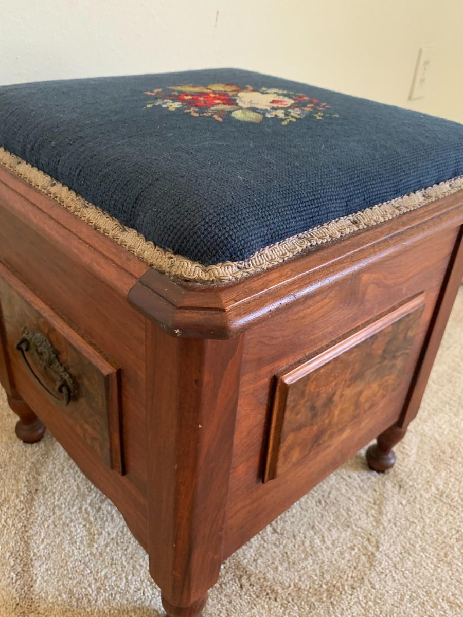 Stunning Antique Needle Point Solid Wood Stool w/ storage