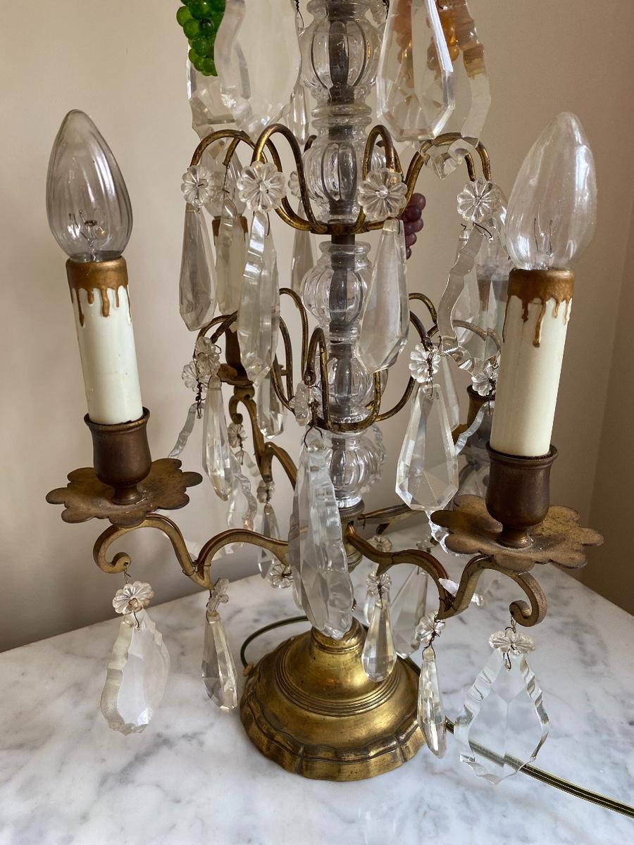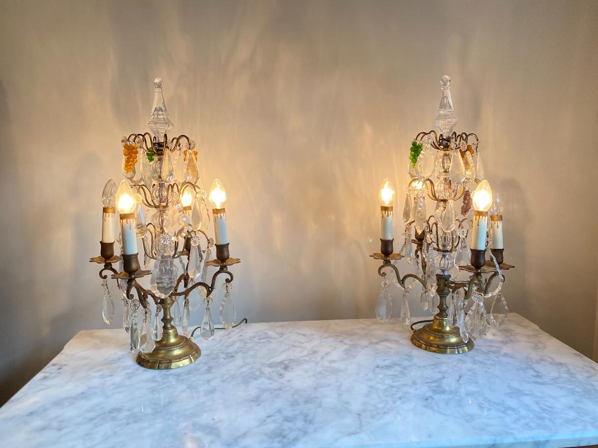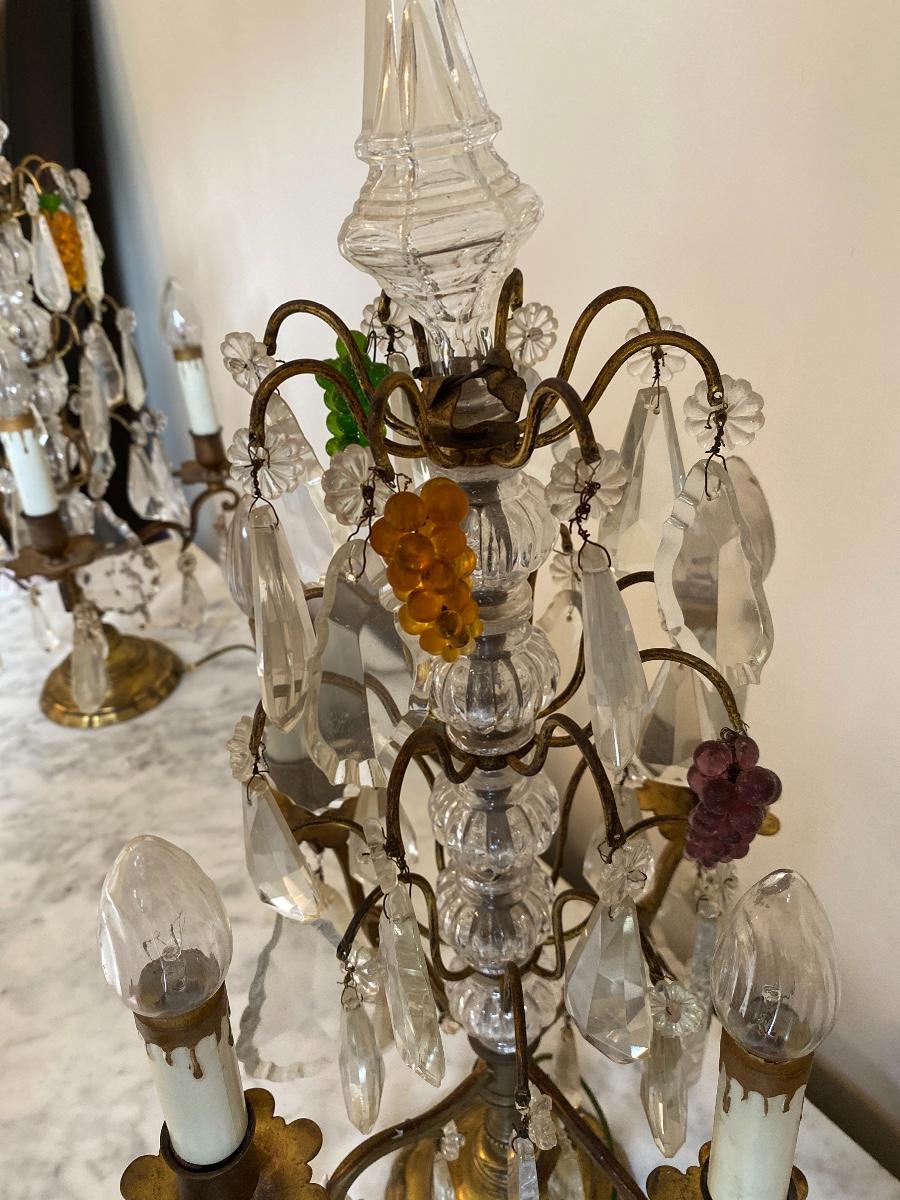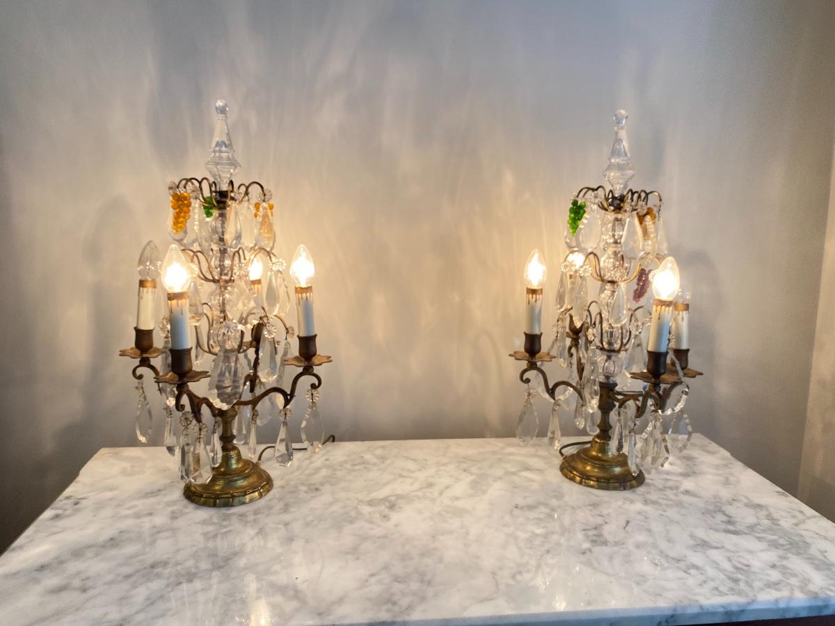 Stunning Antique PAIR LAMPS Girandoles CRYSTAL FRUIT Clusters PRISM French Baccarat Style