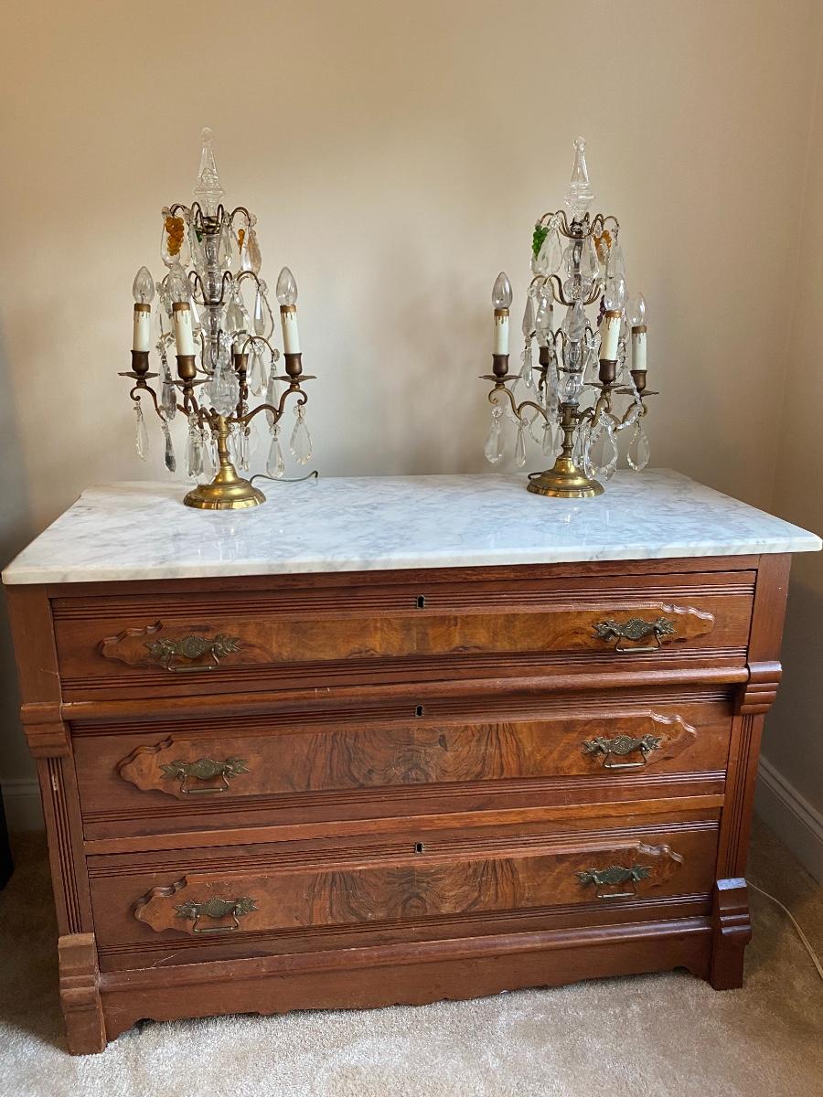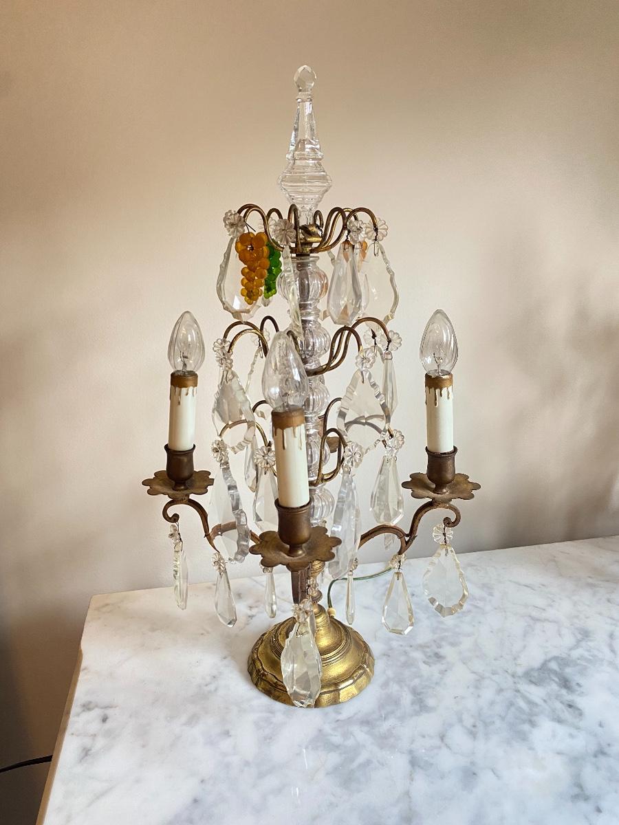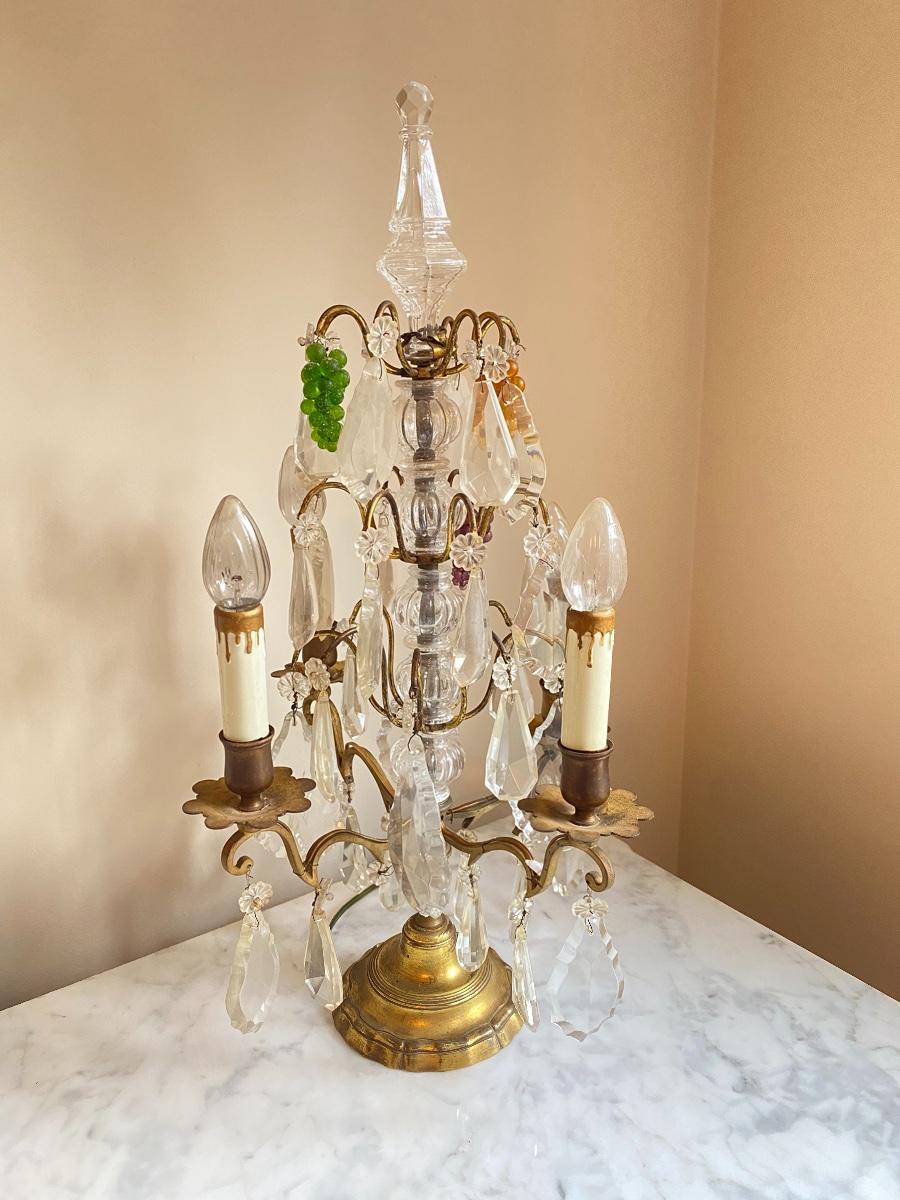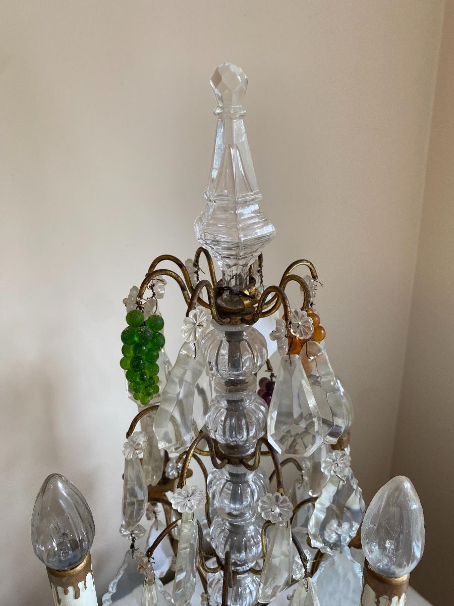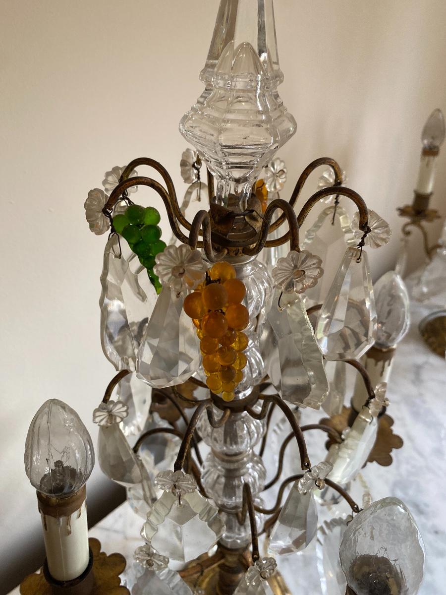 Stunning Antique PAIR LAMPS Girandoles CRYSTAL FRUIT Clusters PRISM French Baccarat Style