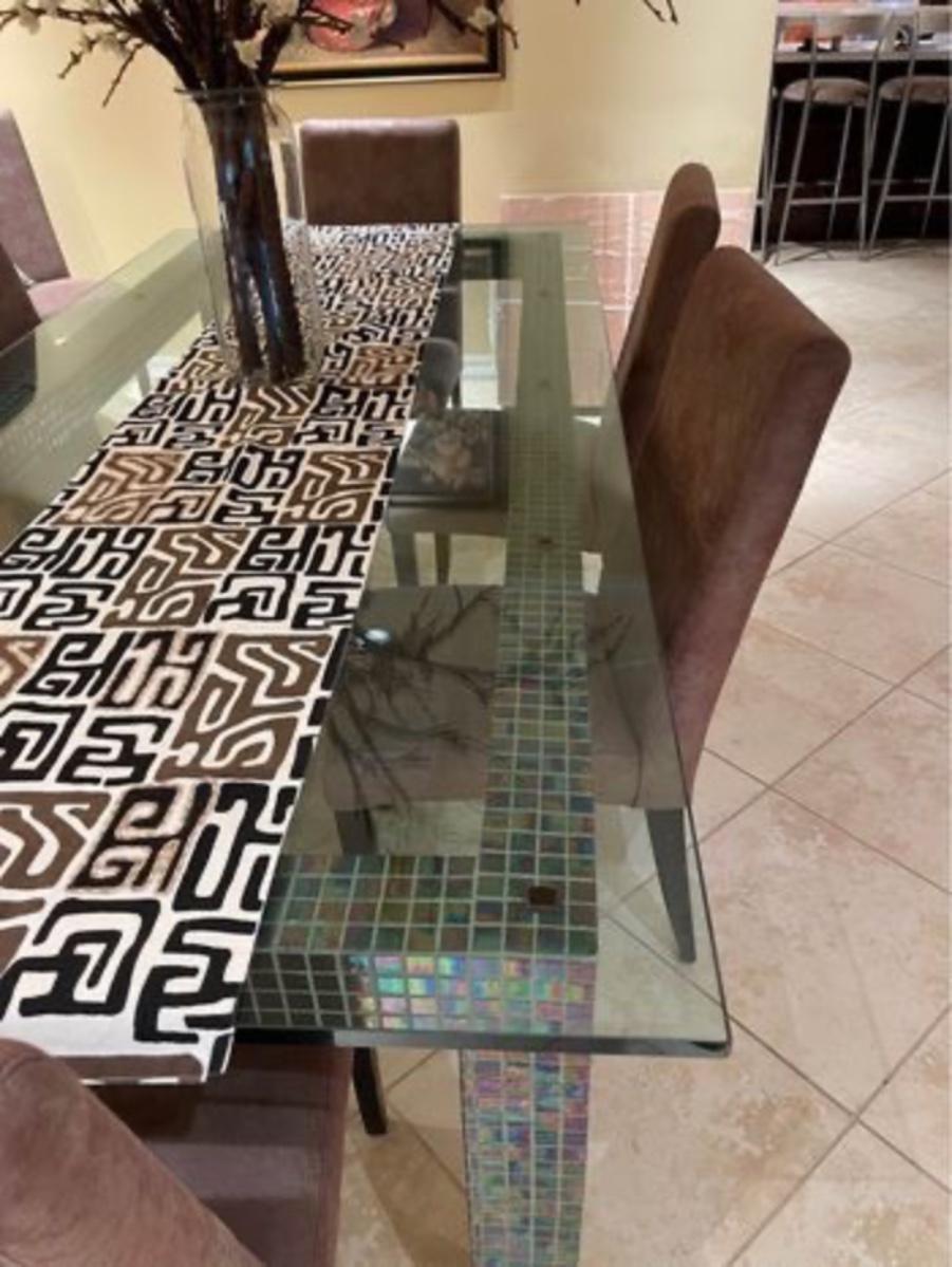 Stunning Art Glass Dining table-kaleidoscope colors-very heavy-no chairs-89.5 x 41.5x30